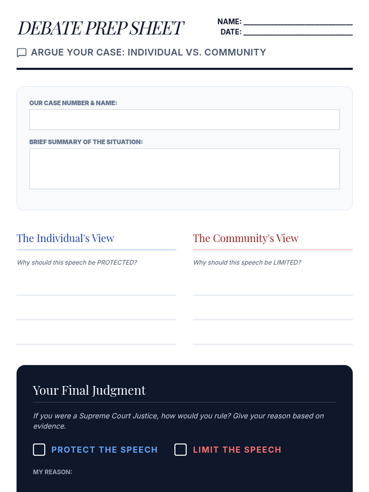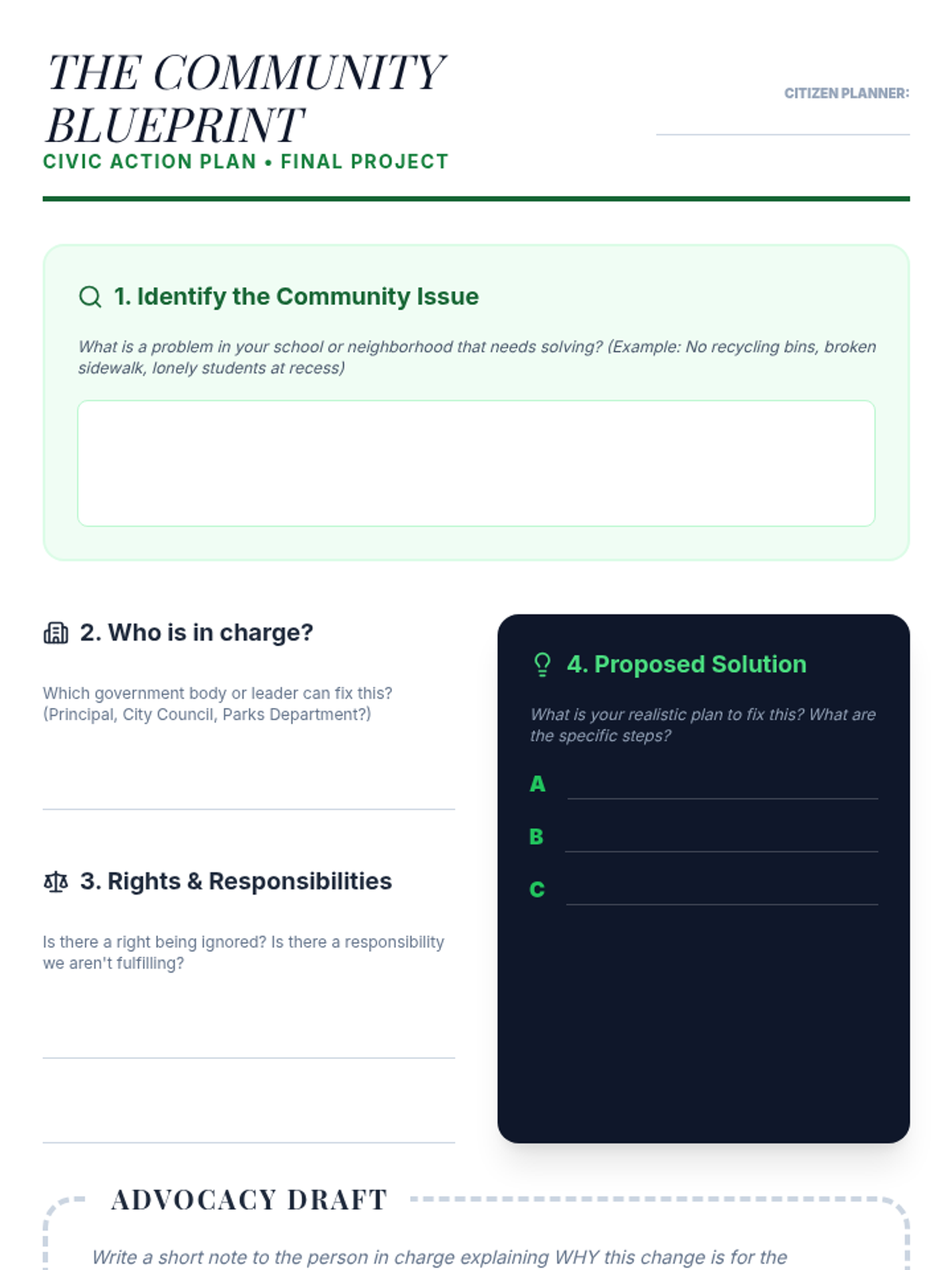 A 5-lesson sequence for 5th graders exploring the balance between individual liberties and community obligations. Students analyze the Bill of Rights, explore the limits of free speech, simulate voting and jury duty, and develop a community action plan.