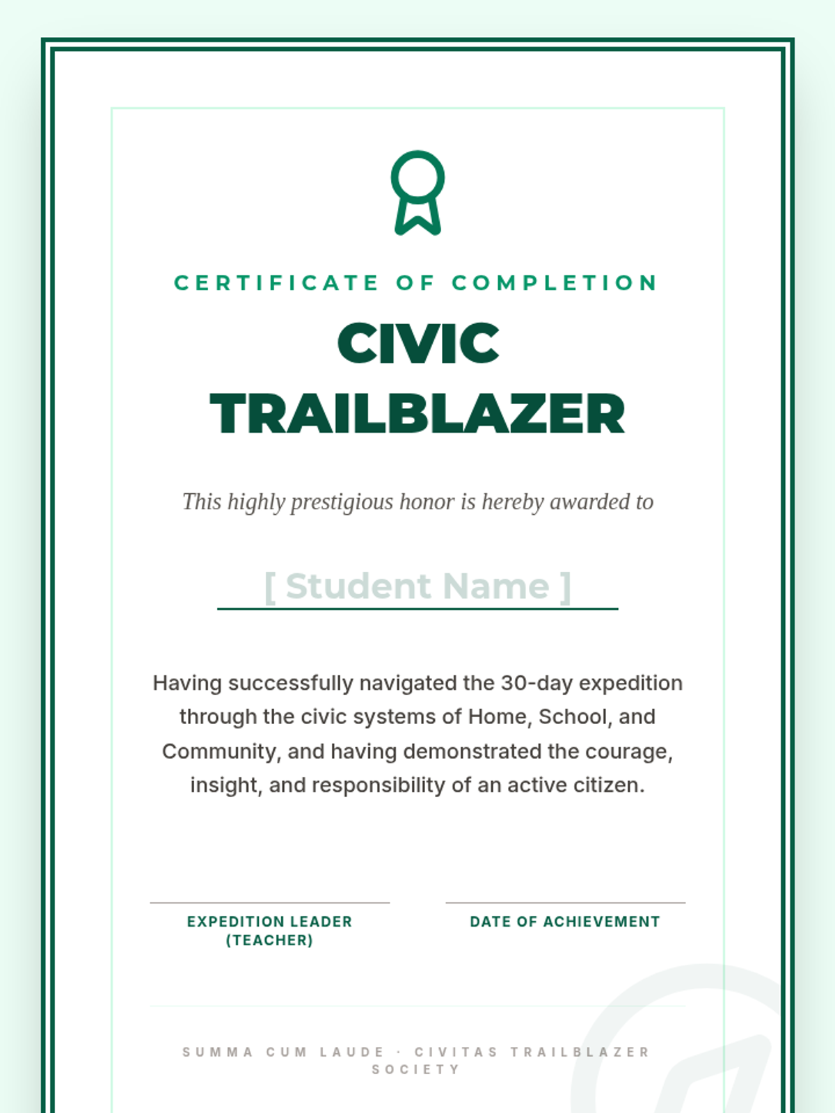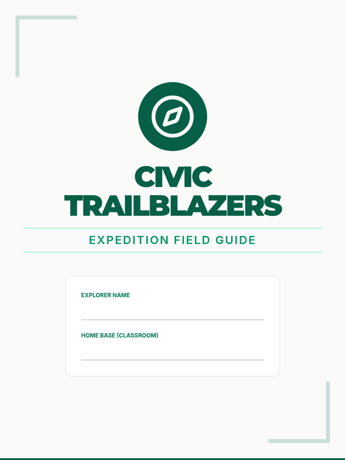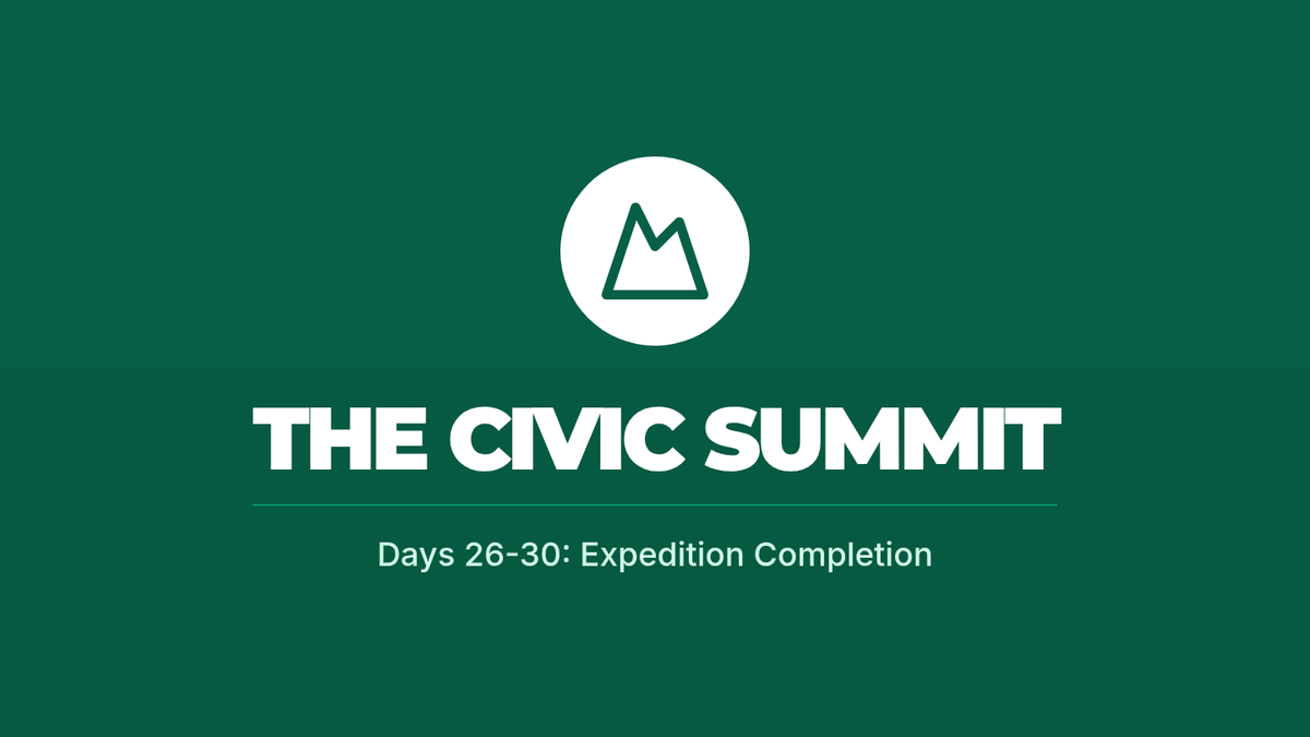 A 30-day 5th-grade course exploring civic roles across family, school, and local communities. Students develop a 'Civic Portfolio' while learning about governance, responsibility, and community action through an expedition-themed curriculum.