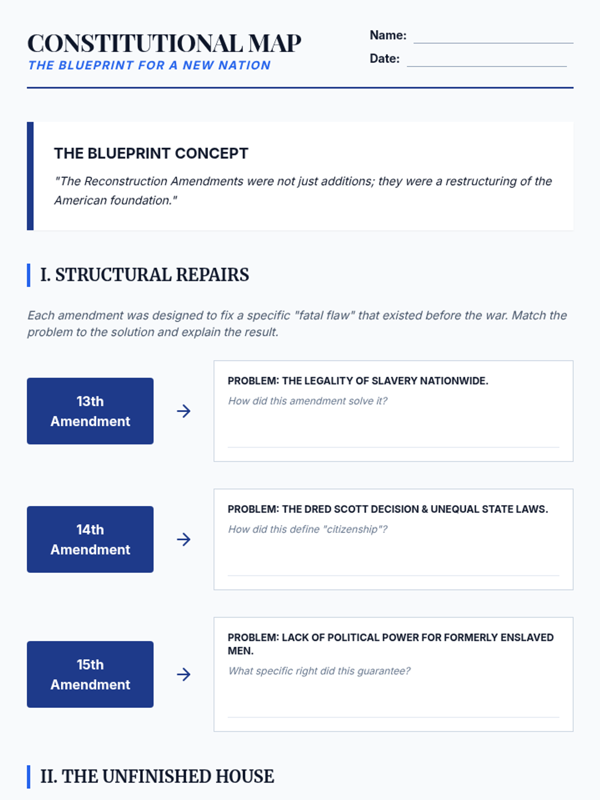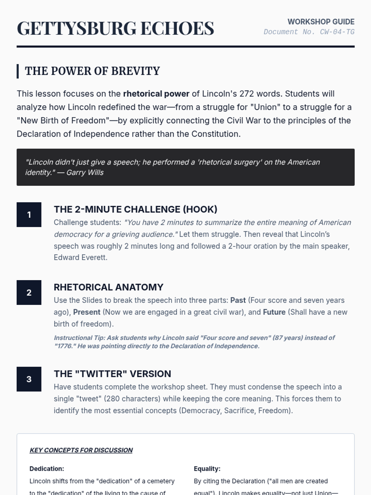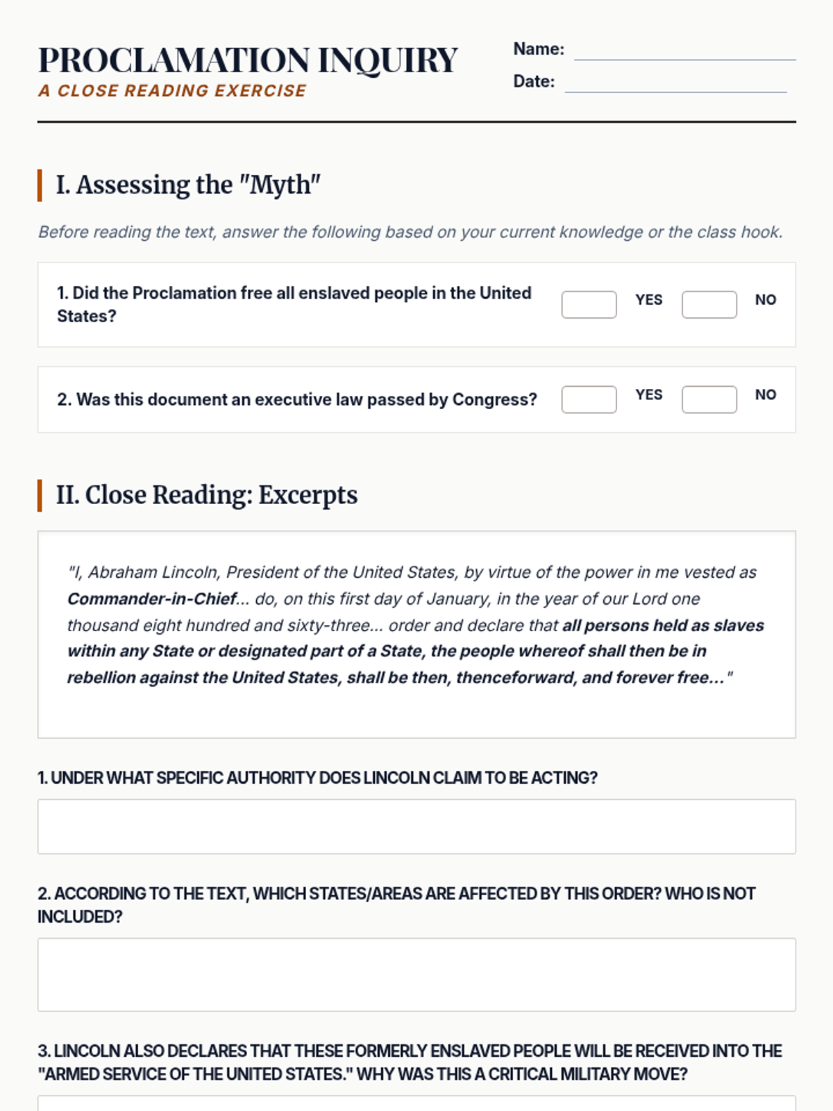 This 8th-grade history sequence explores the political leadership and social transformations of the U.S. Civil War. Students evaluate the leadership of Lincoln and Davis, analyze the shift from preserving the Union to abolishing slavery, and examine the contributions of African American soldiers and the impact of the Reconstruction Amendments.