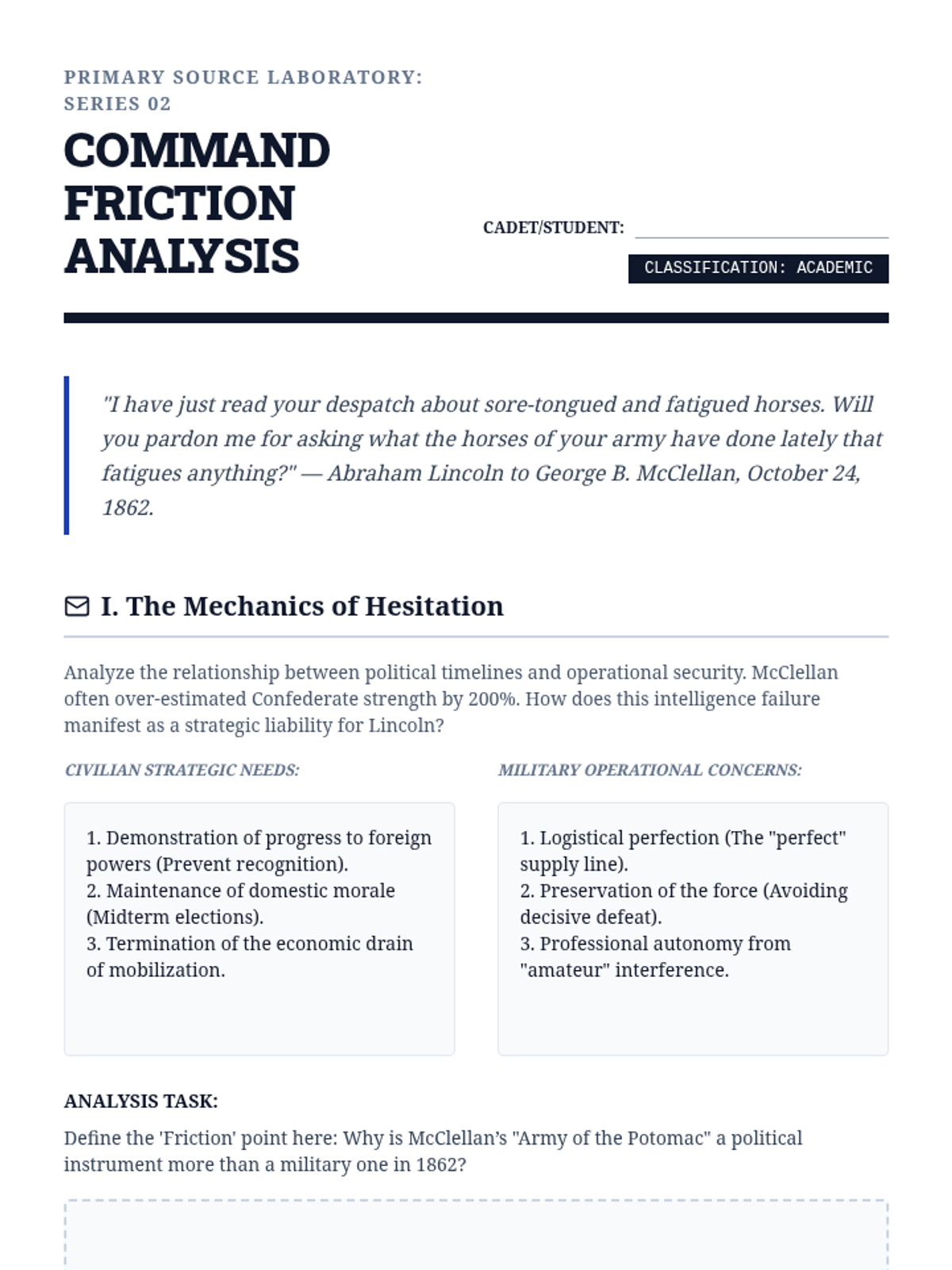 A graduate-level investigation into the American Civil War through the lens of military science, operational art, and strategic leadership, focusing on the transition from Napoleonic tactics to industrial total war.