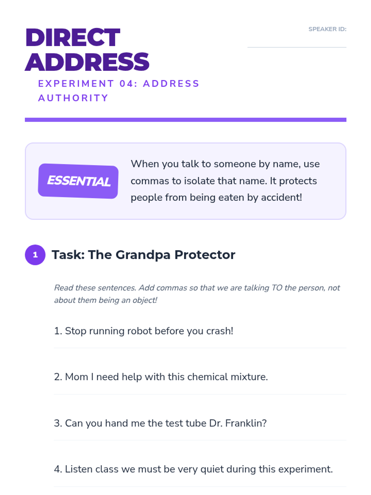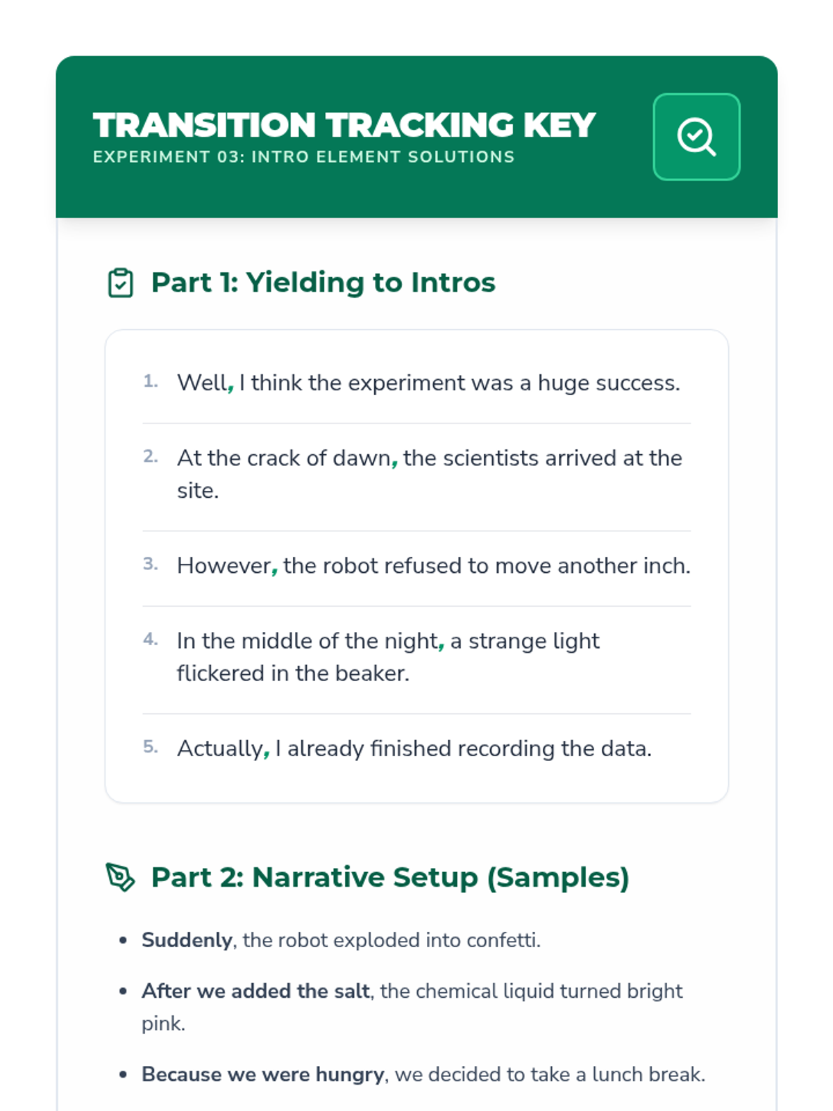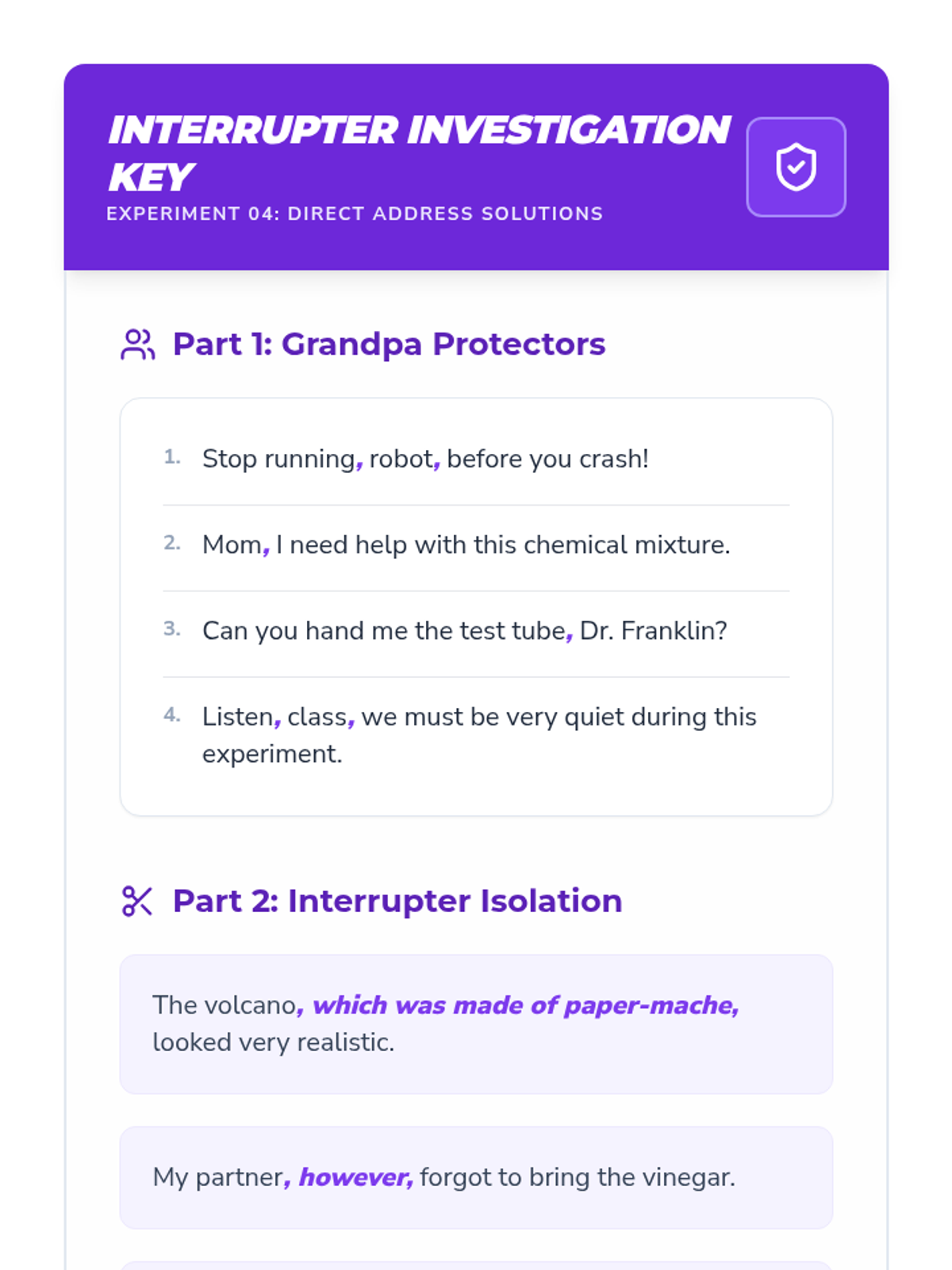 A comprehensive 4th-grade grammar sequence focusing on the strategic use of commas to clarify meaning, join clauses, and set off introductory or parenthetical elements through a 'Comma Lab' investigative theme.