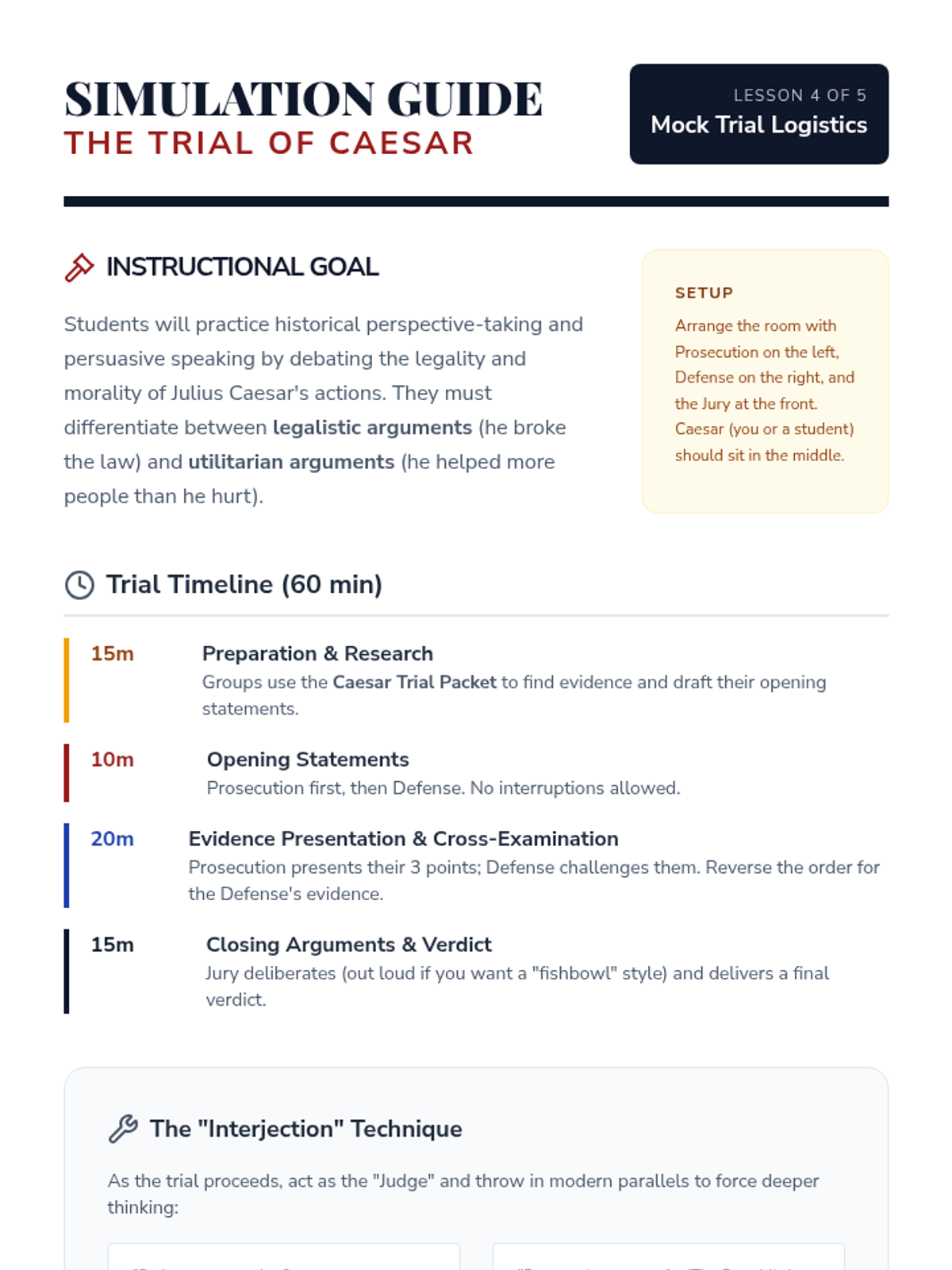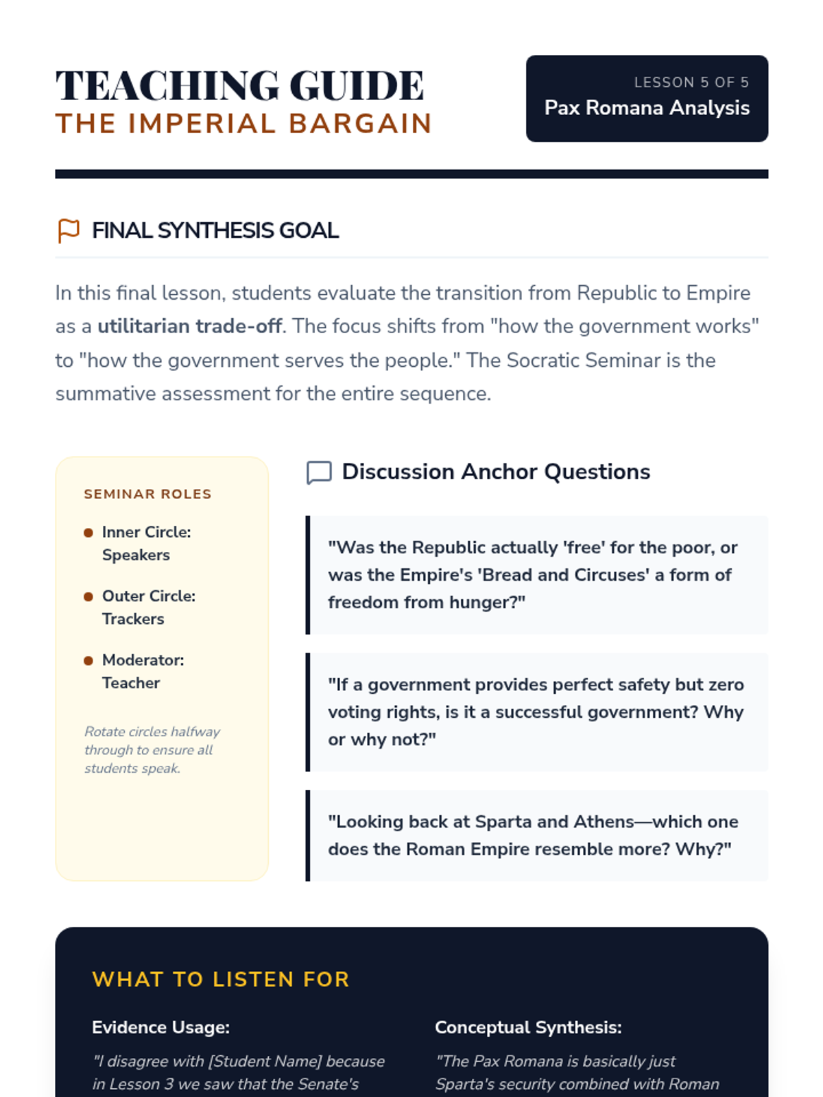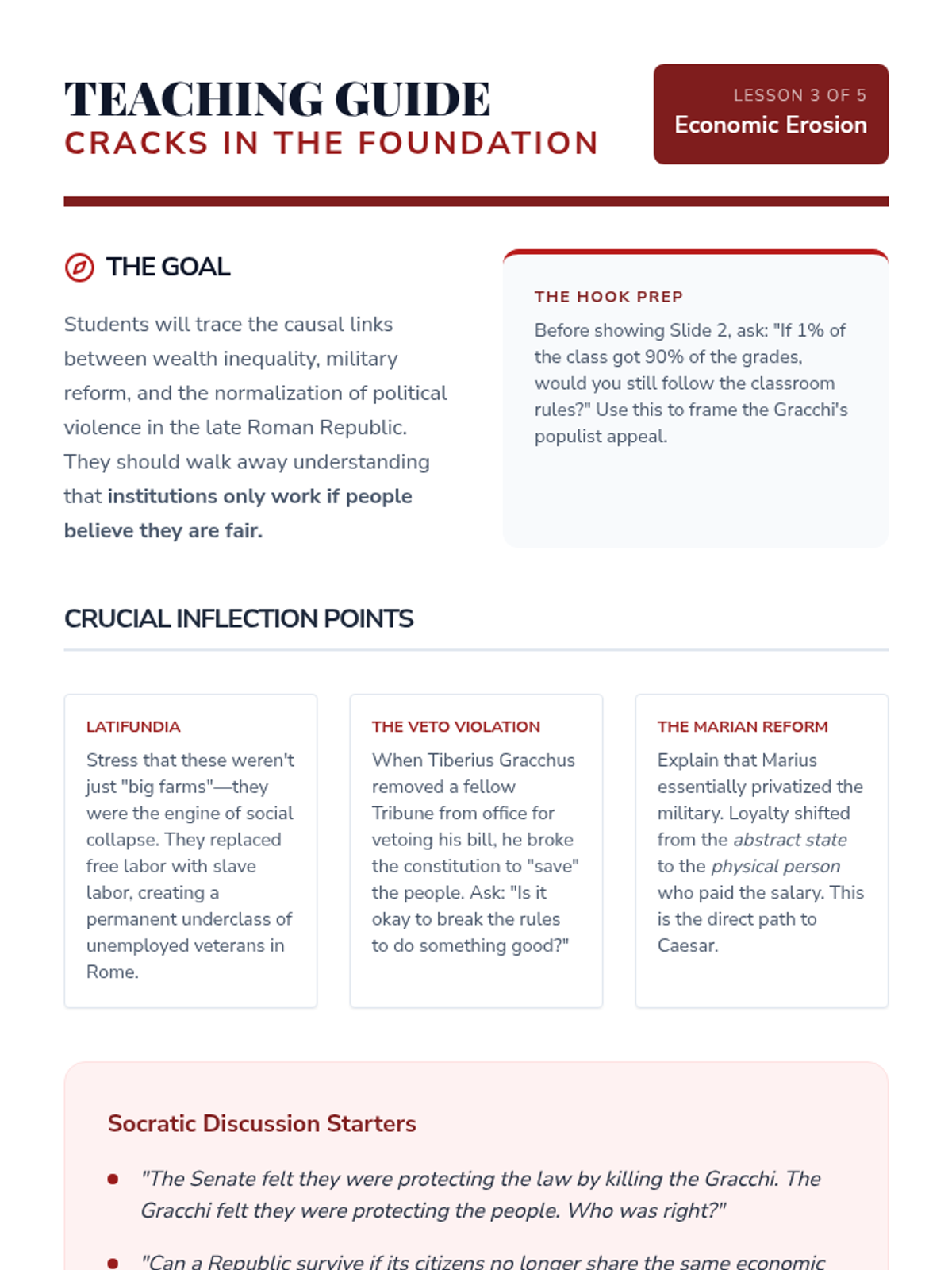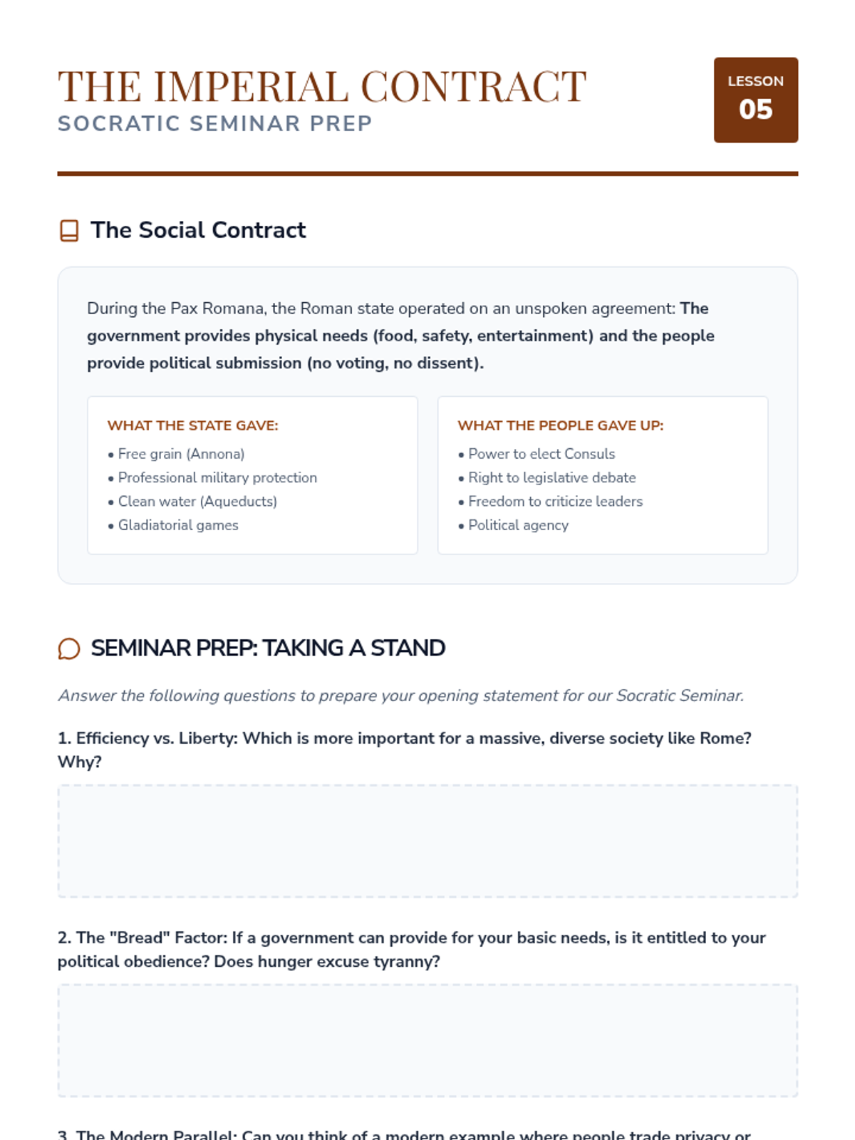 This sequence explores the evolution of political systems in the classical Mediterranean, comparing the direct democracy of Athens, the militaristic oligarchy of Sparta, and the sophisticated checks and balances of the Roman Republic. Students analyze the factors that lead to the collapse of republics and the rise of autocracy, evaluating the trade-offs between liberty and order.
