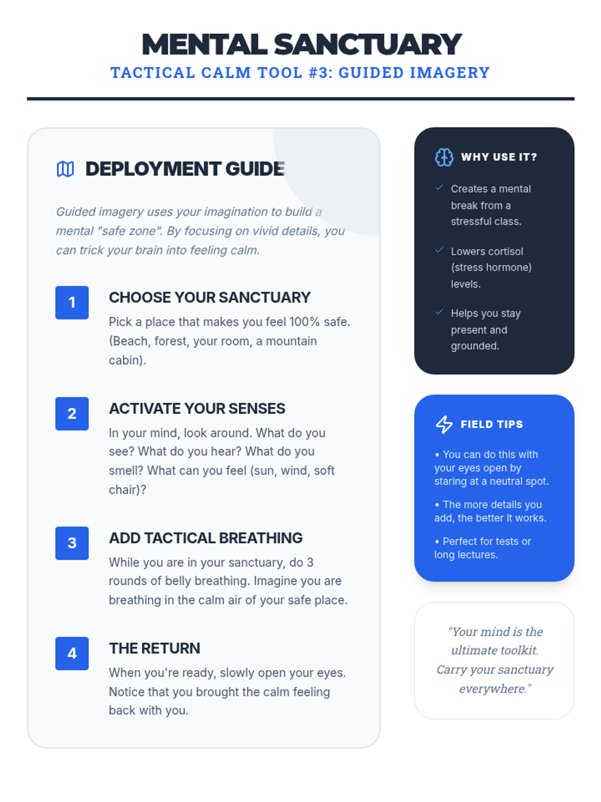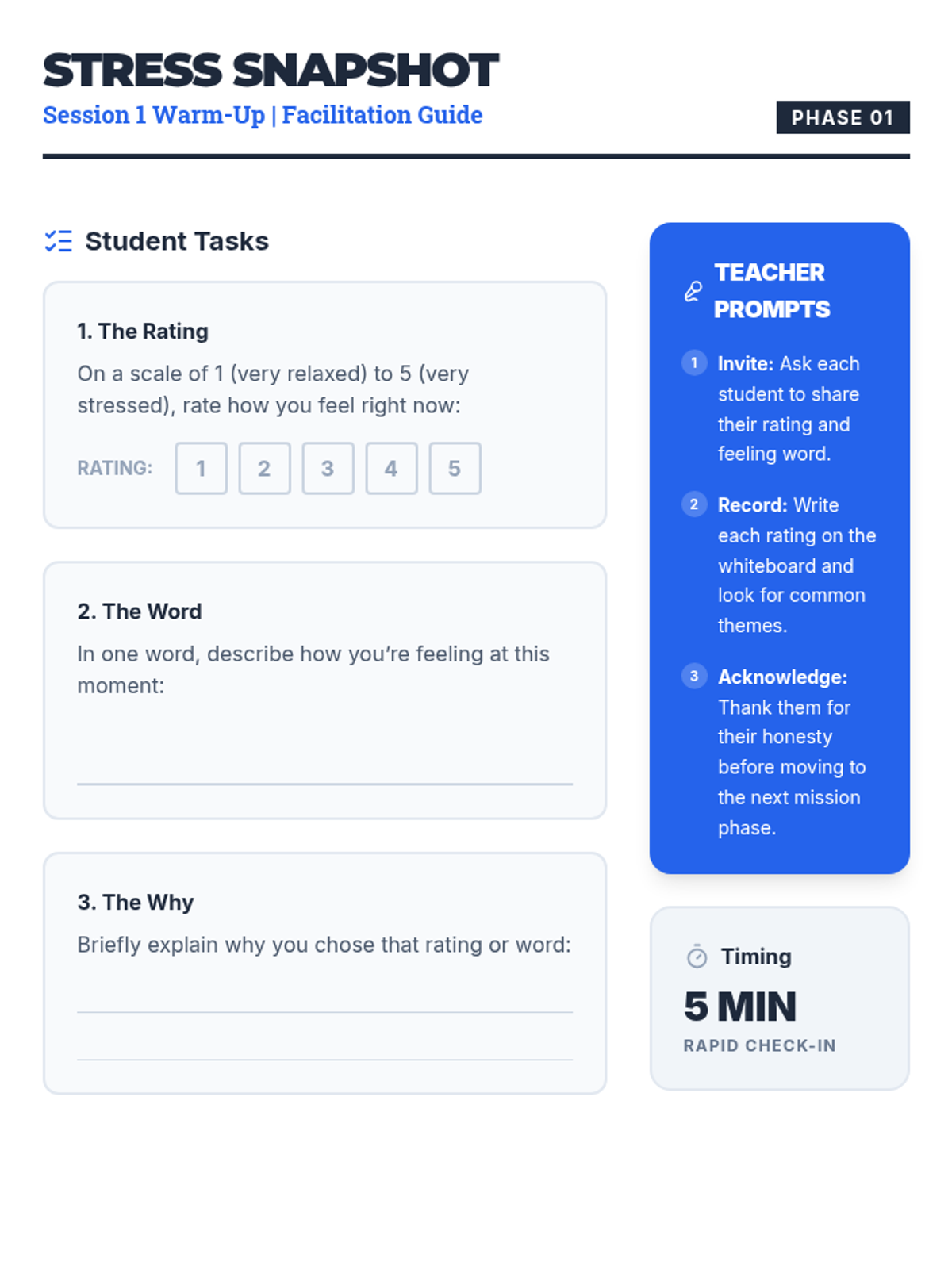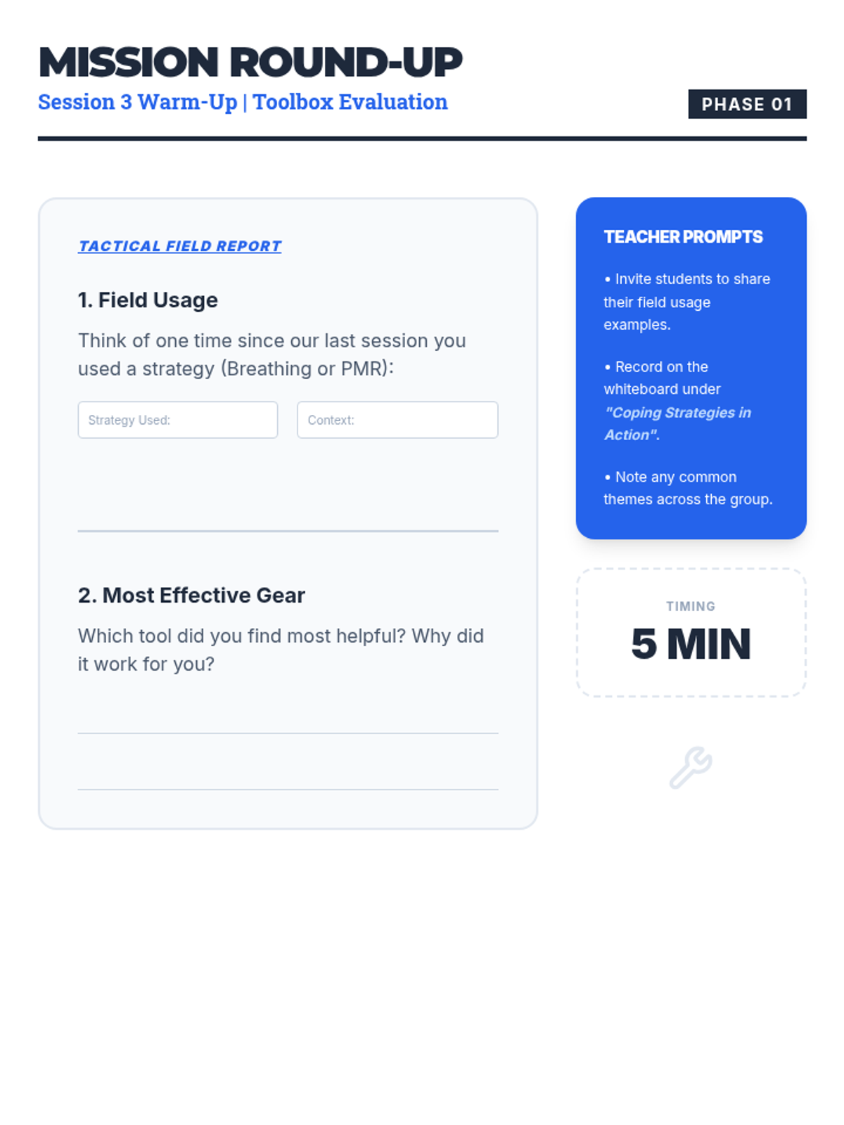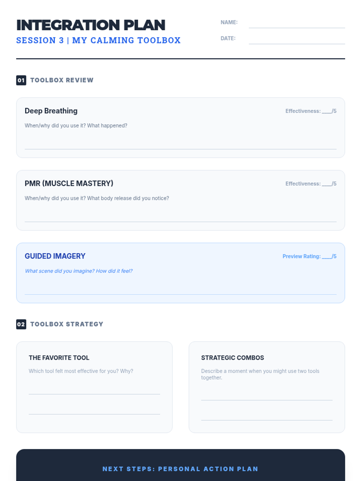 A three-session series for eighth-grade boys to master coping strategies like deep breathing, PMR, and guided imagery to manage classroom stress.