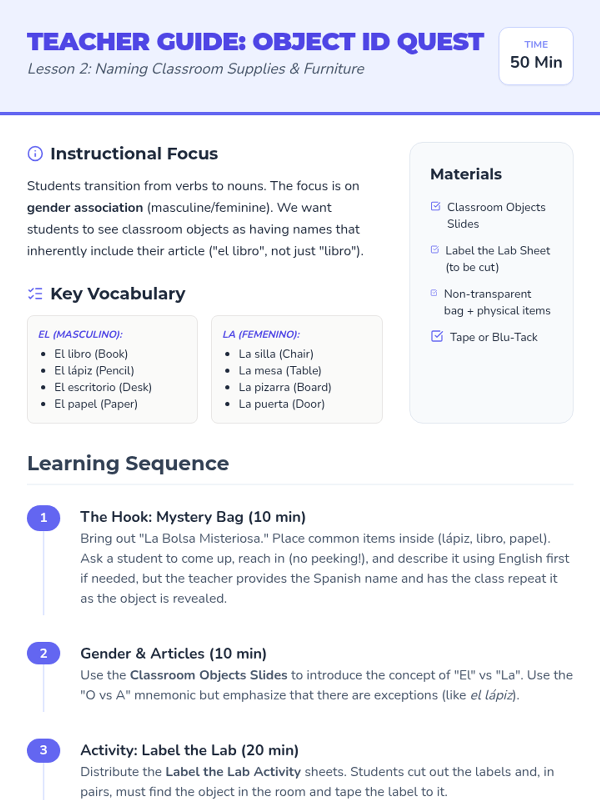 A lively exploration of Spanish numbers 0-31, focusing on expressing age and birthdays. Students move from rote memorization to real-world data collection and peer interviews to build a class birthday calendar.
