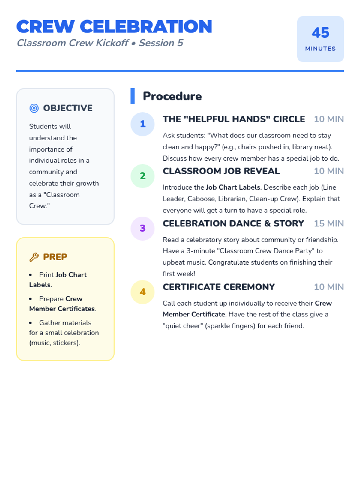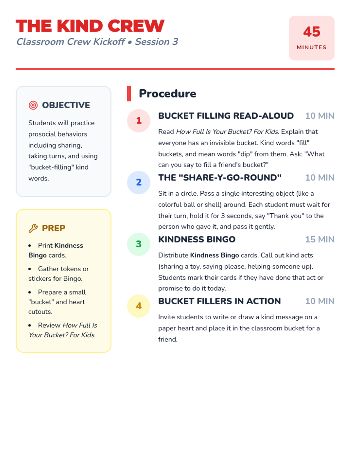 A comprehensive 5-session unit designed for kindergarteners to master school routines, build social-emotional skills, and foster a caring classroom community through play, stories, and collaborative activities.