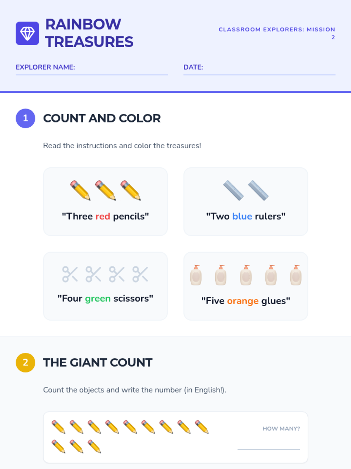 A 5-lesson sequence for 3rd-grade ESL beginners focusing on classroom vocabulary, numbers, colors, commands, and prepositions through an explorer-themed adventure.