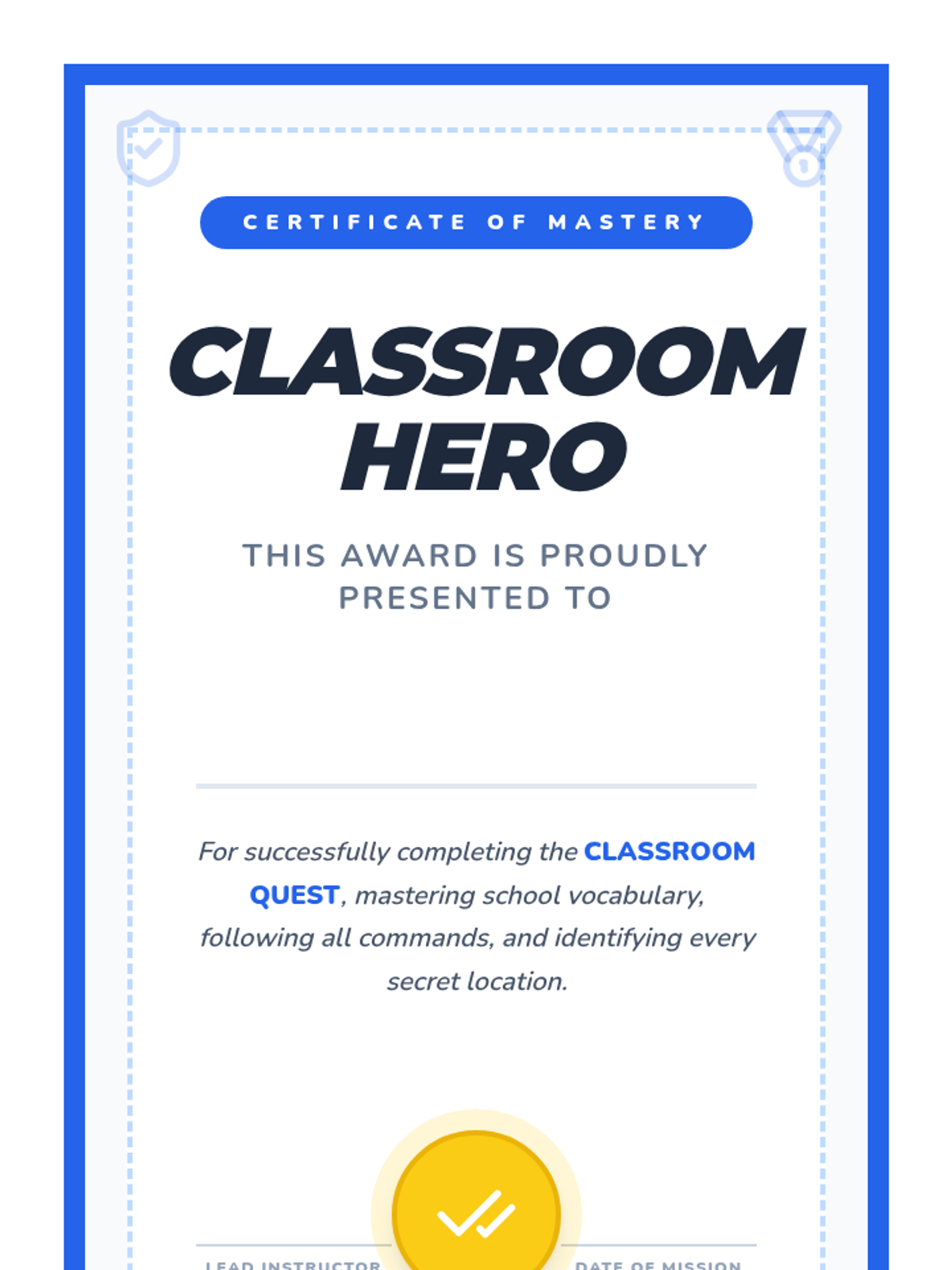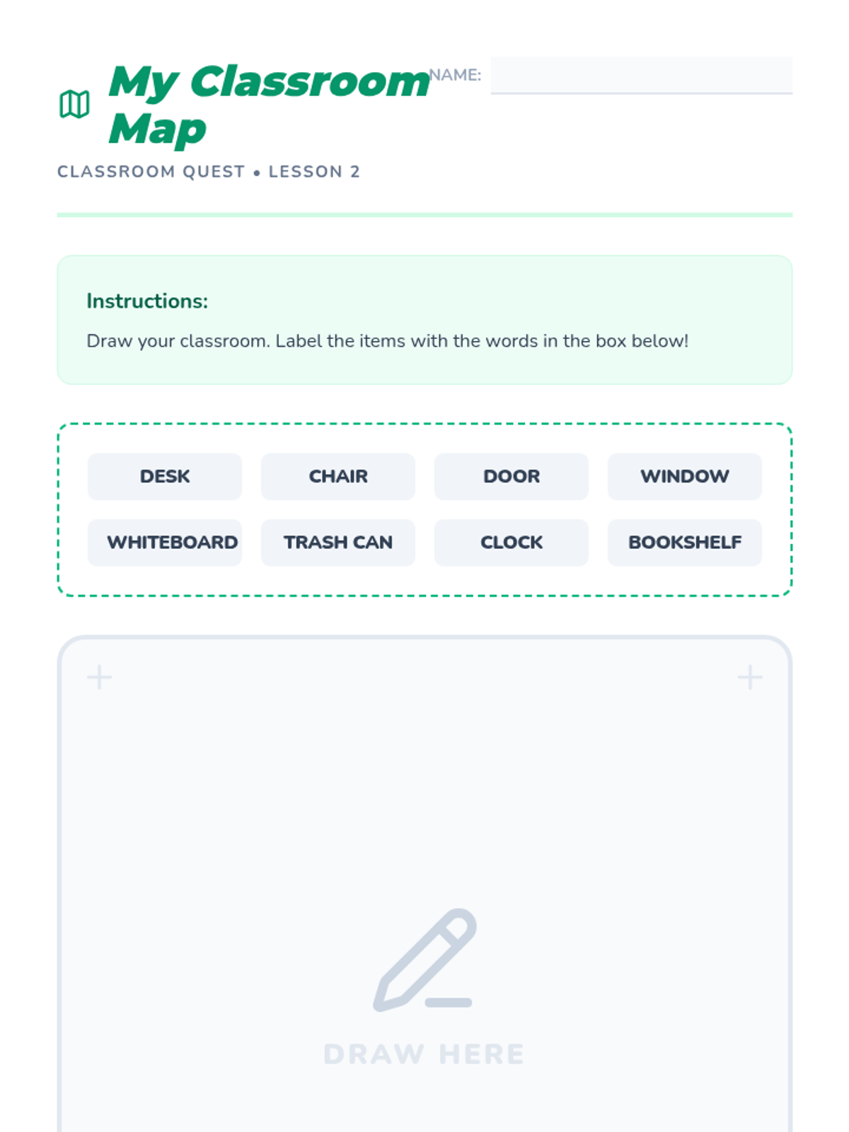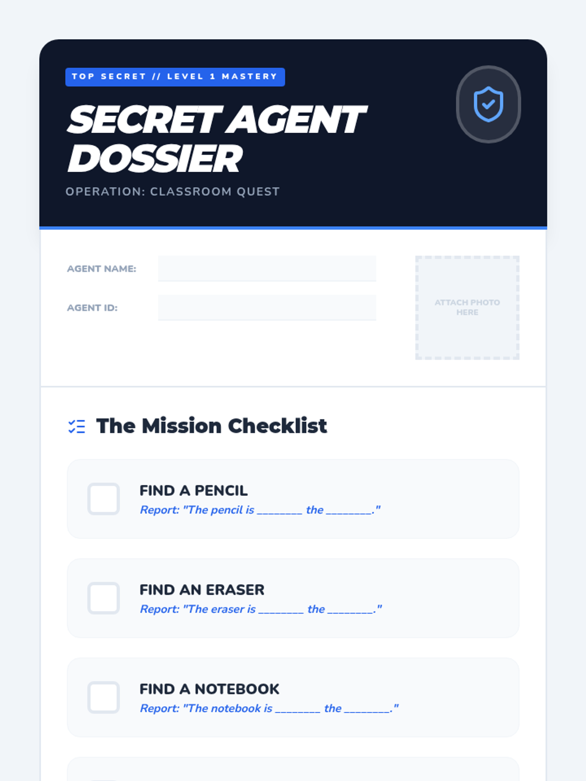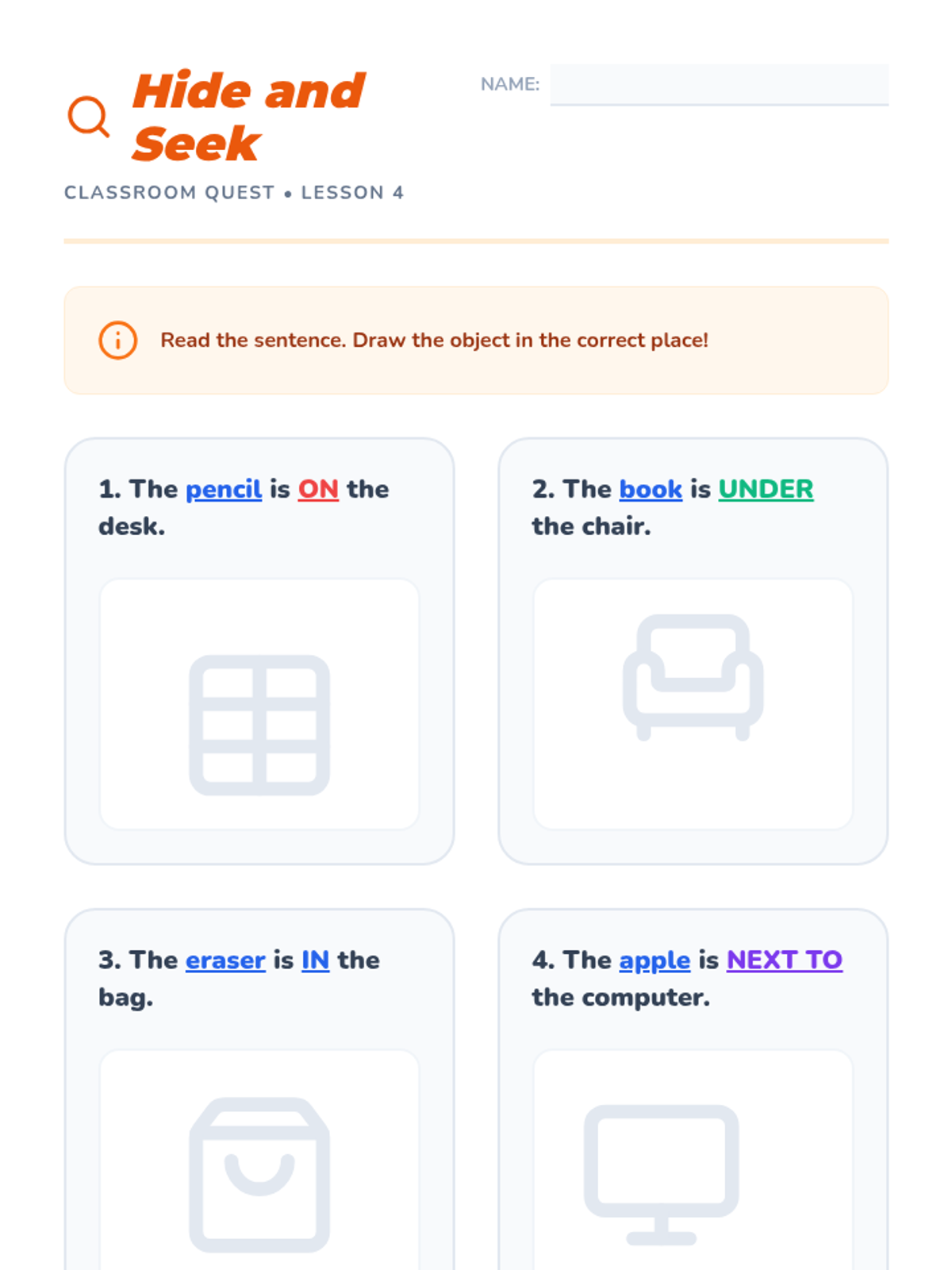 A comprehensive unit for beginner English Language Learners to master basic classroom vocabulary, common furniture, imperative commands, and prepositions of place through hands-on, gamified activities.