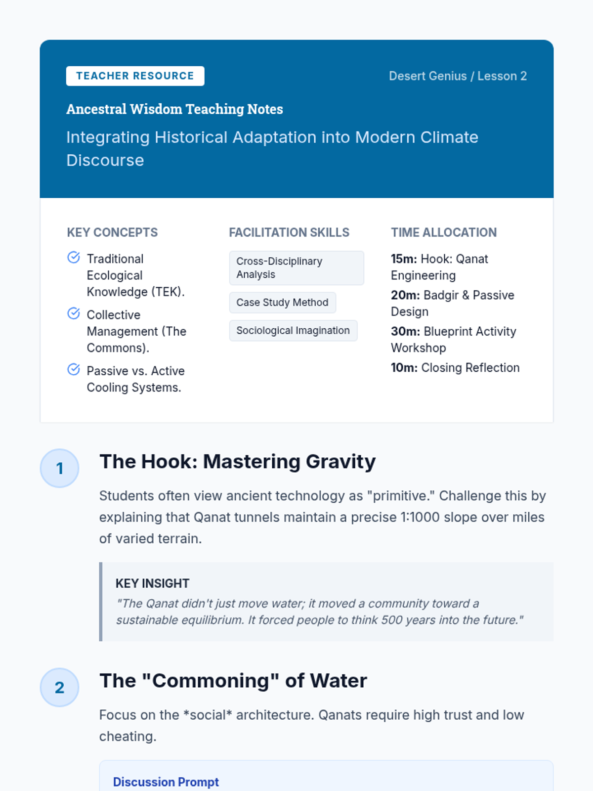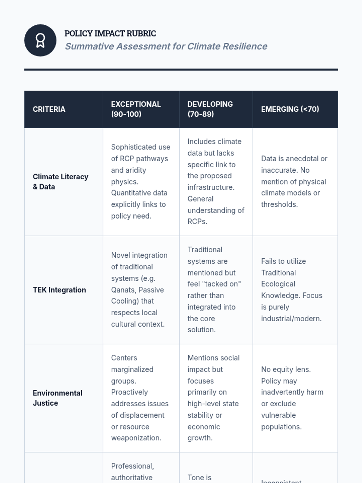 This sequence explores the intersection of climate change, traditional ecological knowledge, and modern environmental policy in the Middle East, culminating in a climate resilience policy white paper.