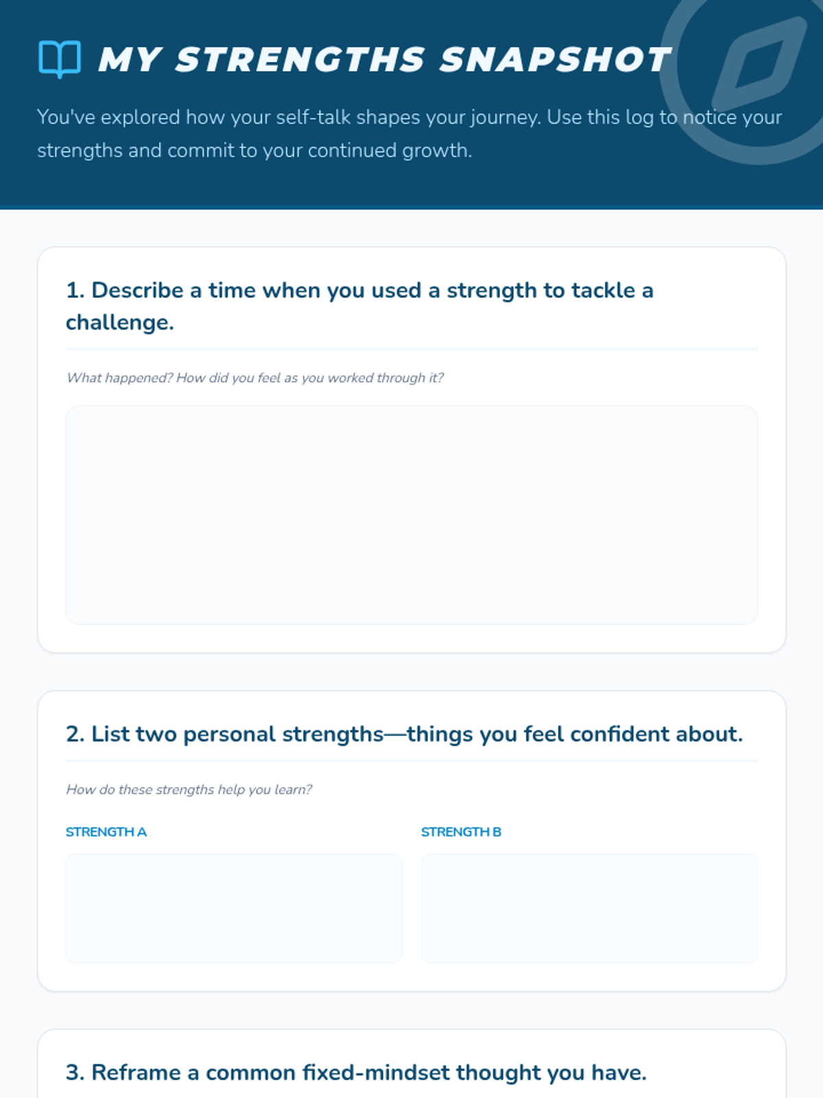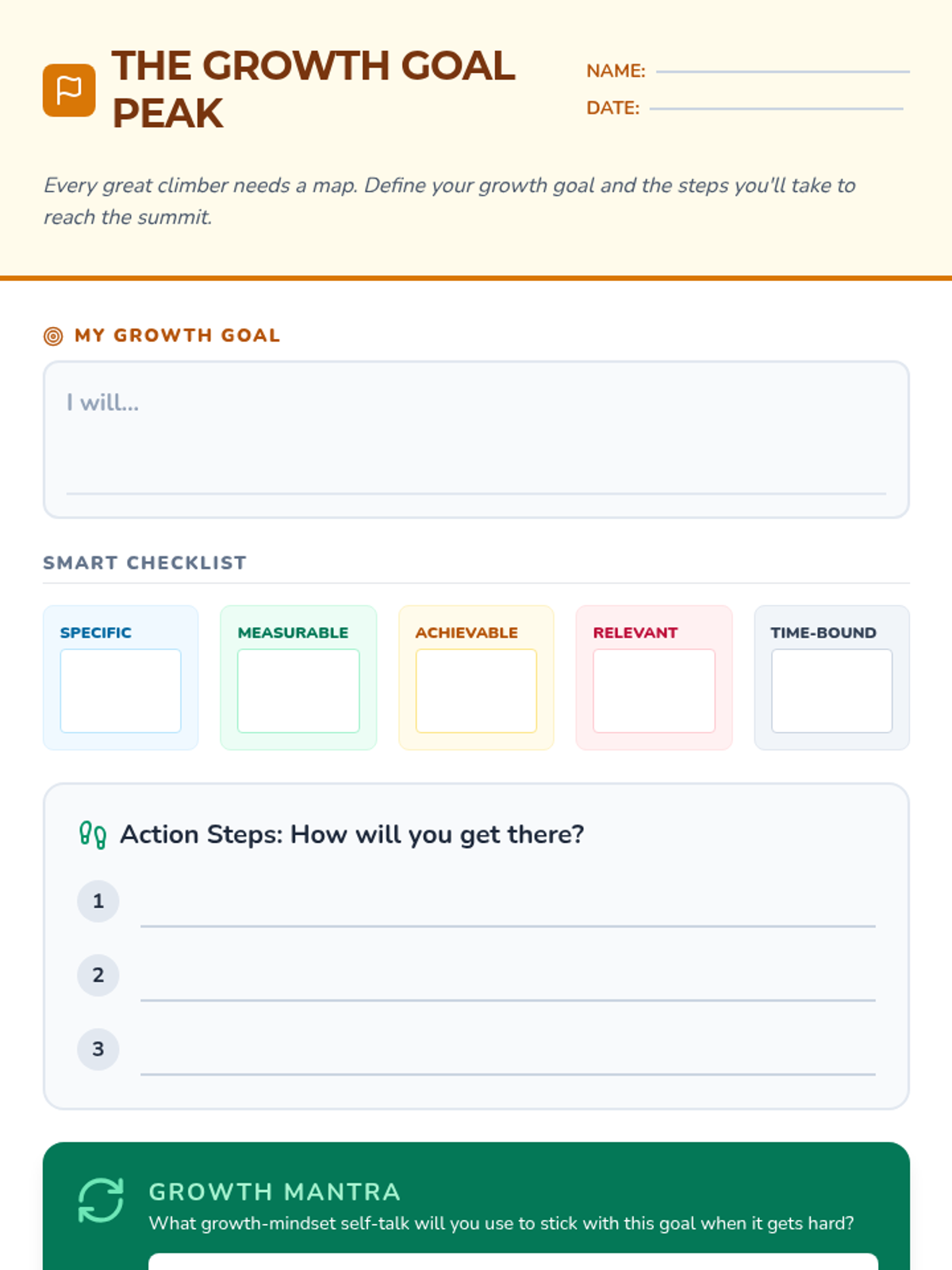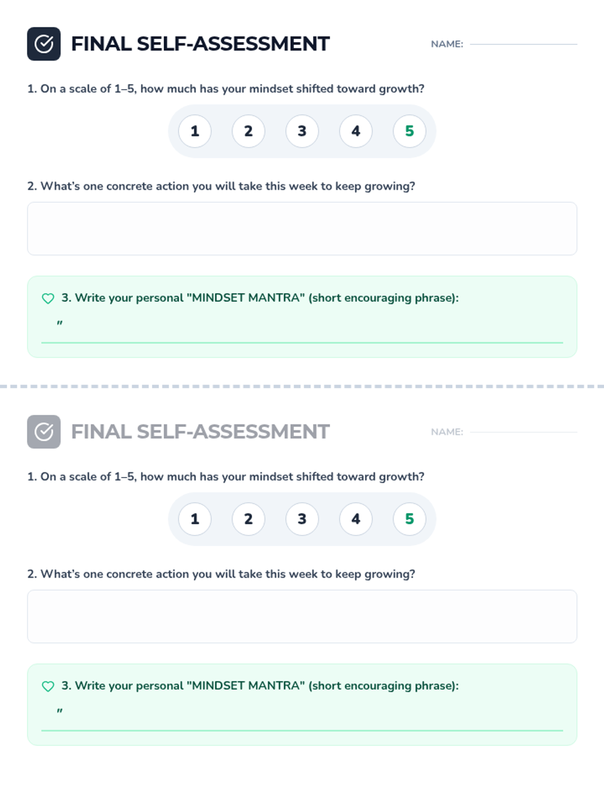 A 5-day middle school unit where students explore neuroplasticity, self-talk, and resilience to build a growth mindset through interactive challenges and goal-setting.