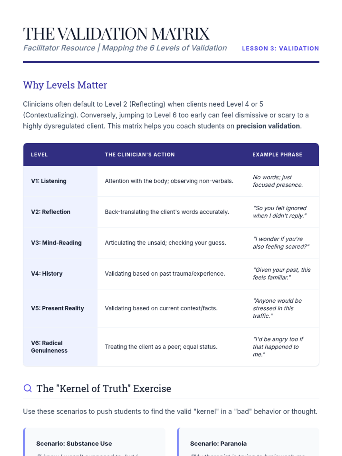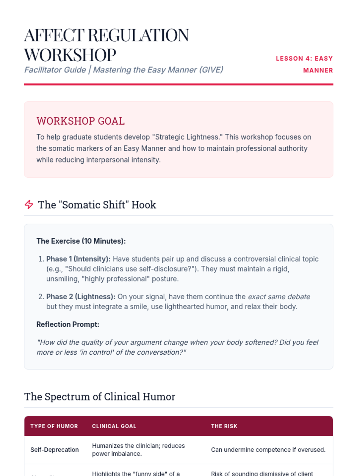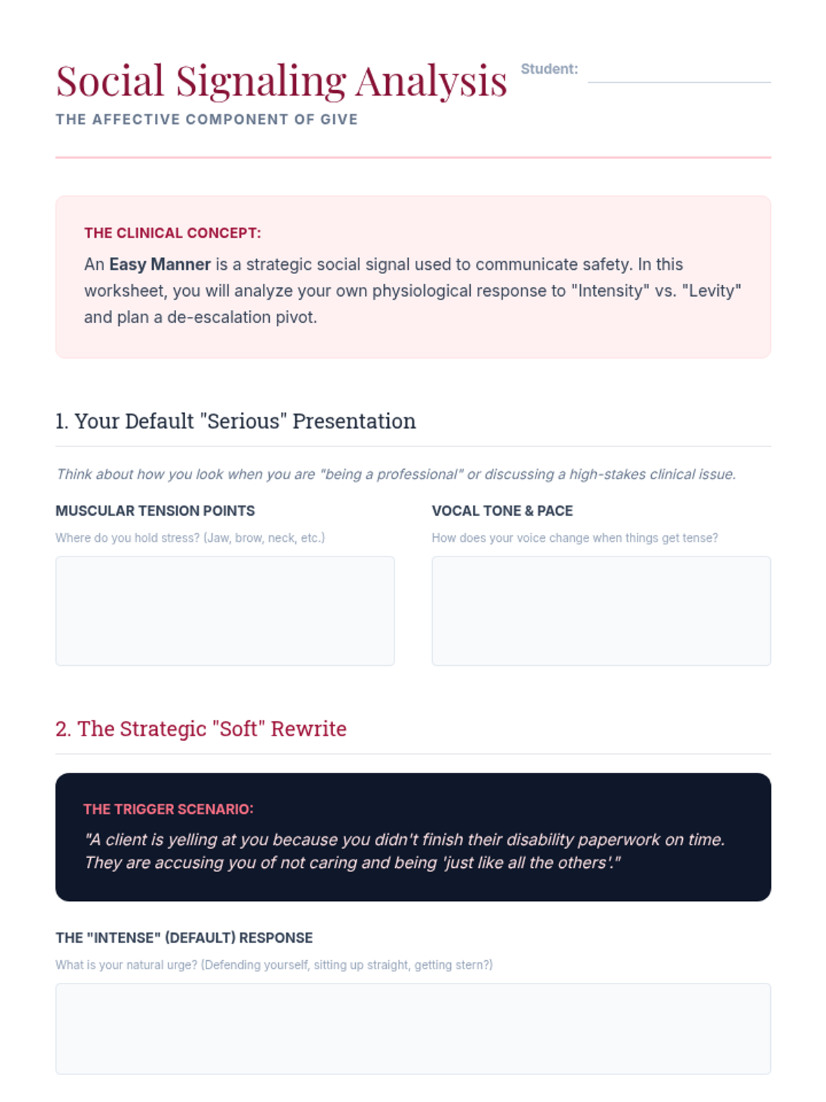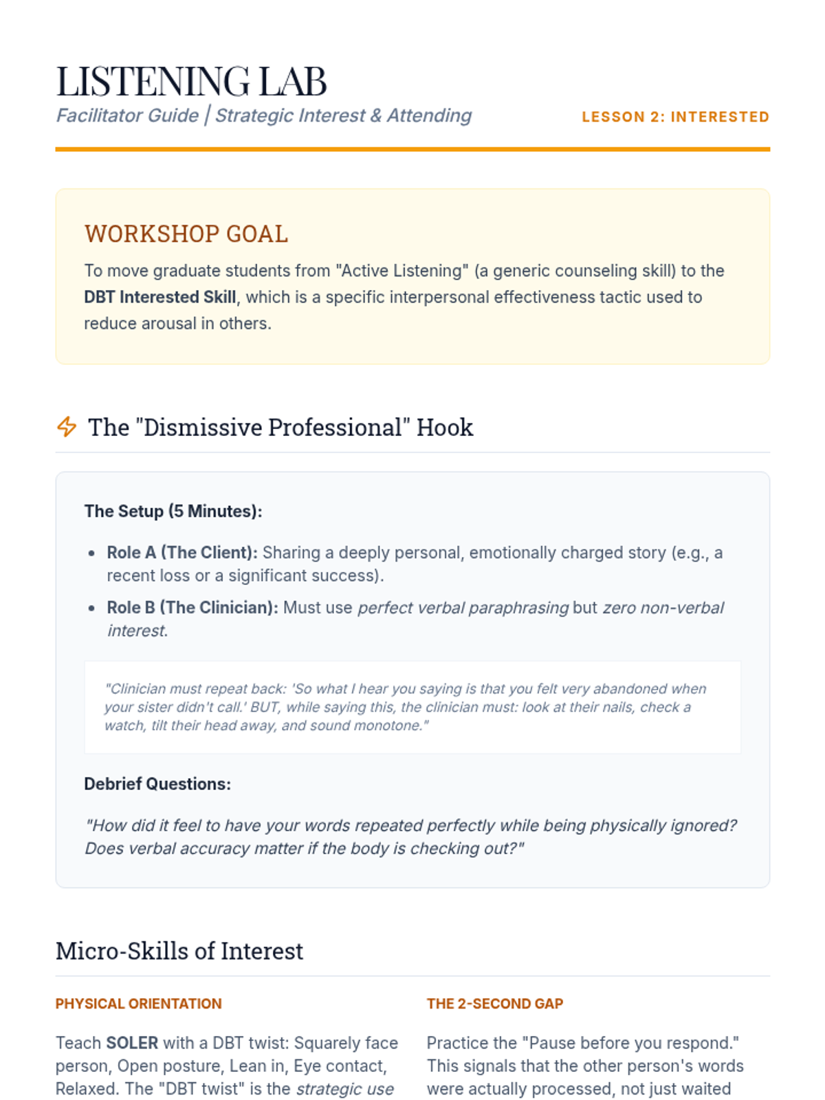 This graduate-level sequence deconstructs the GIVE skill set (Gentle, Interested, Validate, Easy Manner) within DBT, focusing on clinical conceptualization, neurobiological underpinnings, and differential application in complex interpersonal systems. Students progress from theoretical analysis to sophisticated treatment planning and case conceptualization.