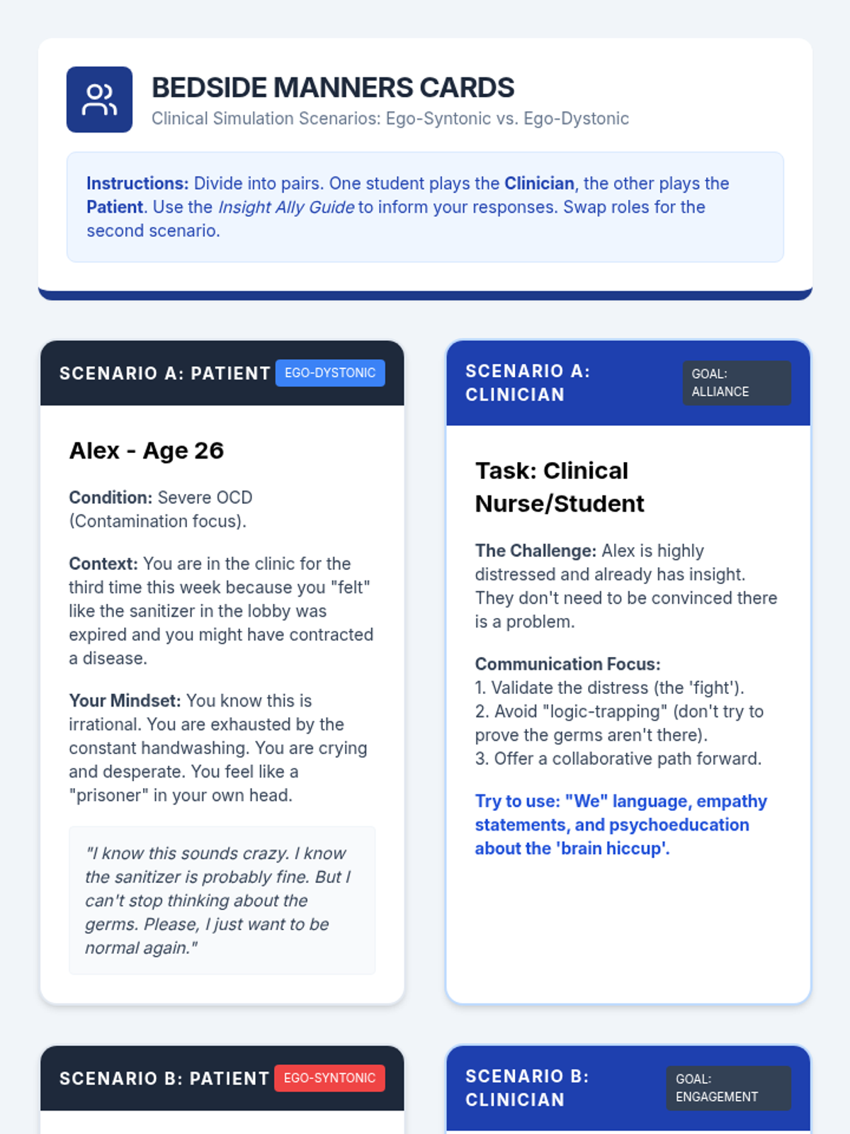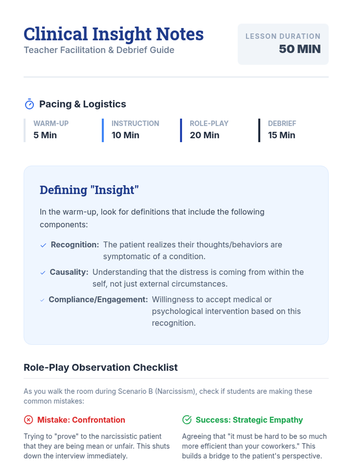 A series of clinical communication lessons for nursing and pre-med students focusing on psychological insights and patient-centered care.