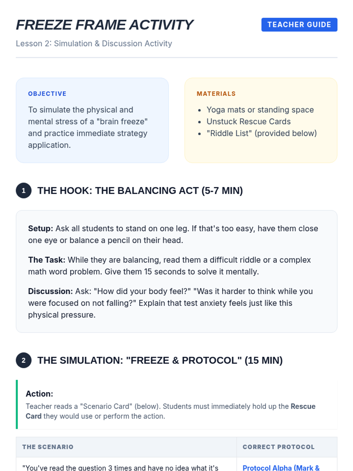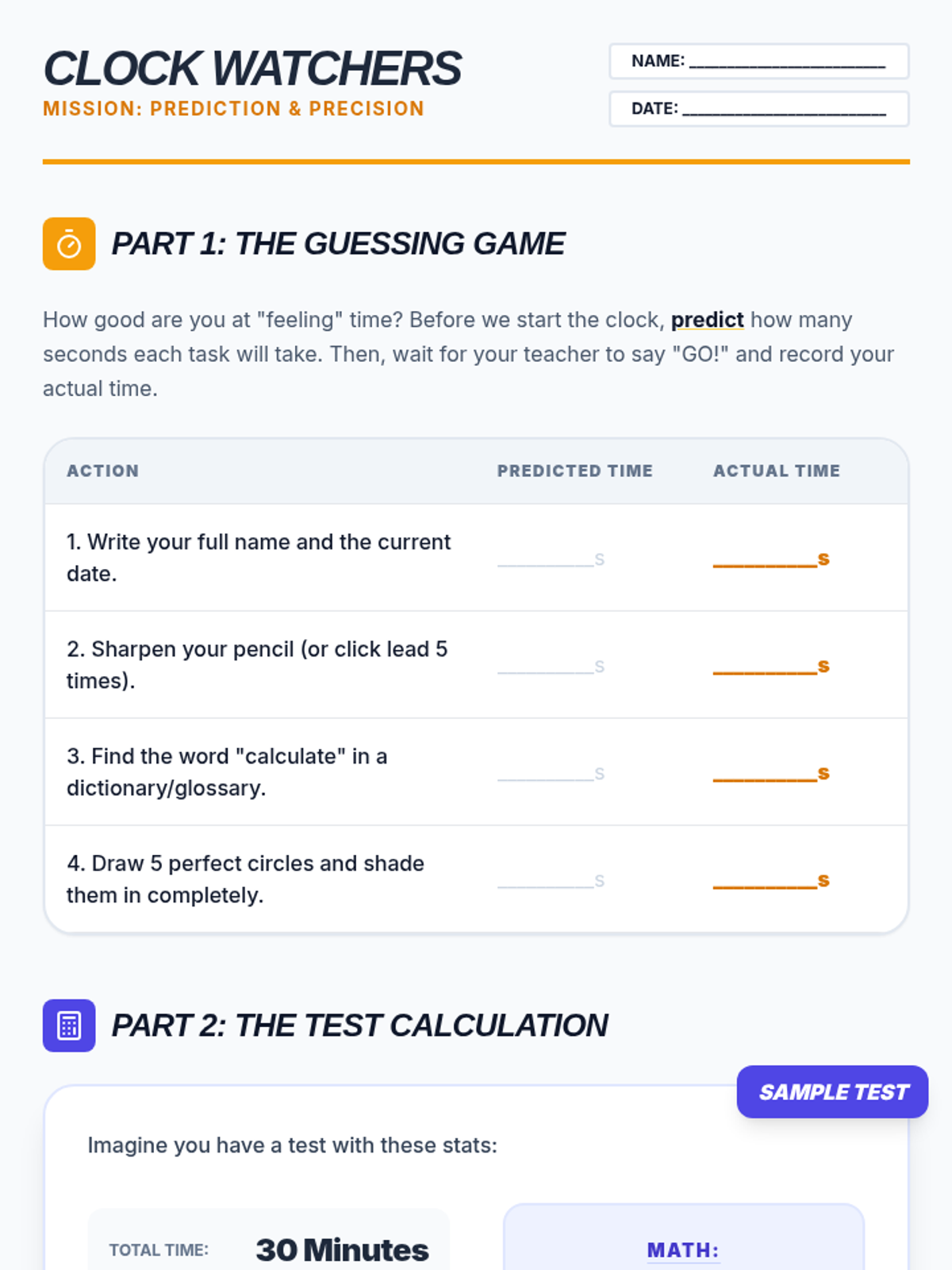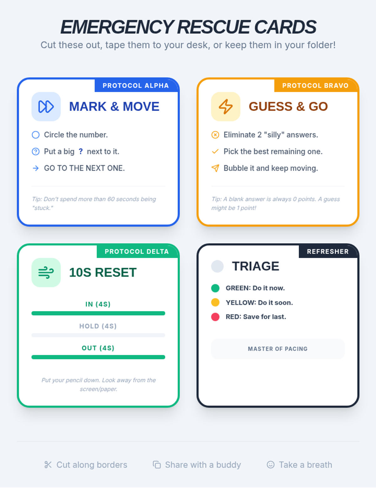 A comprehensive sequence for 6th-grade ESL students focusing on time management and pacing strategies for standardized testing. Students learn to triage questions, manage anxiety when stuck, master bubble sheet mechanics, and monitor their progress against the clock.