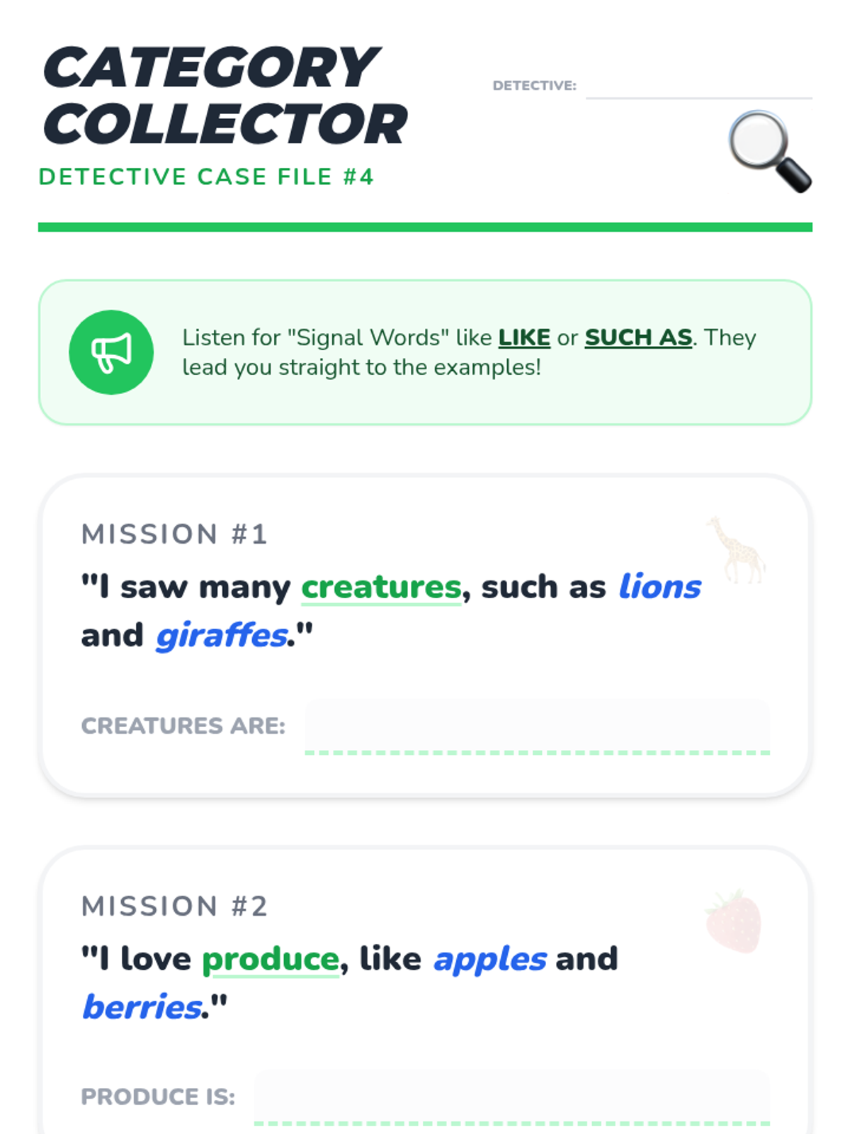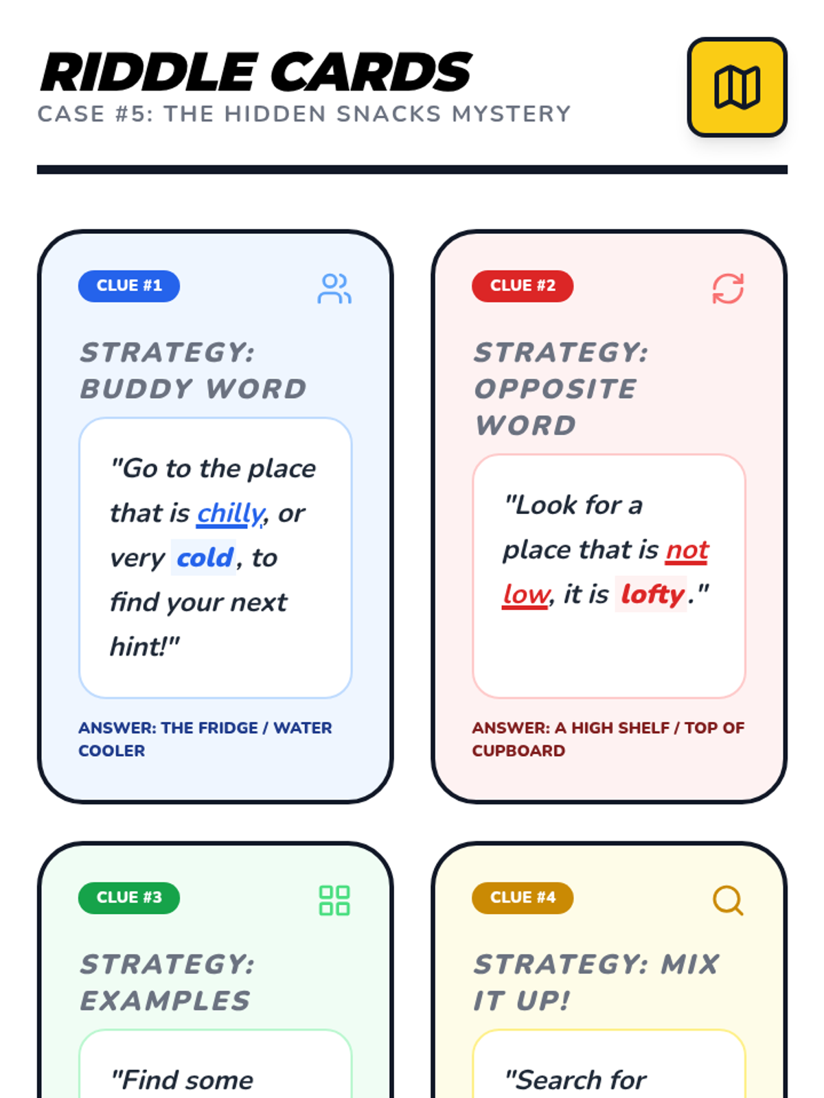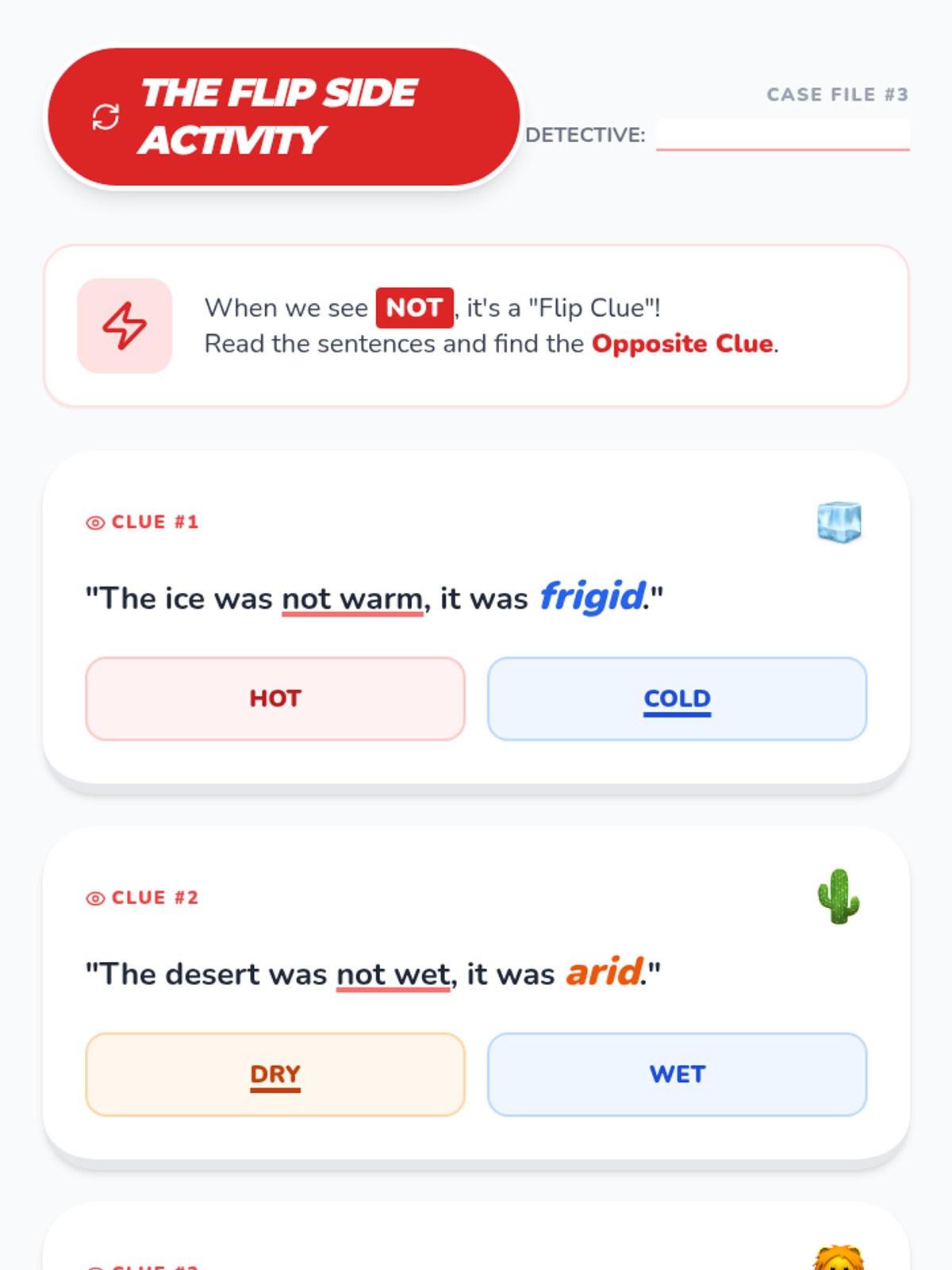 A Kindergarten sequence focused on teaching students how to use synonyms, antonyms, and example clues to decode unfamiliar words through play, movement, and detective-themed activities. Students develop foundational linguistic skills by identifying word relationships and using them as keys to unlock meaning in sentences.