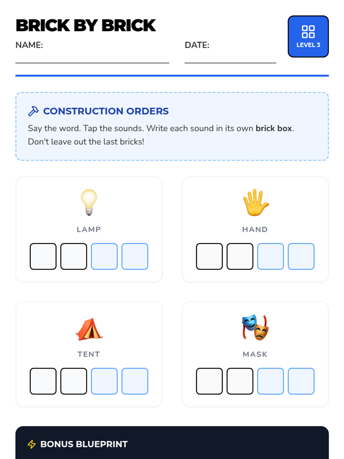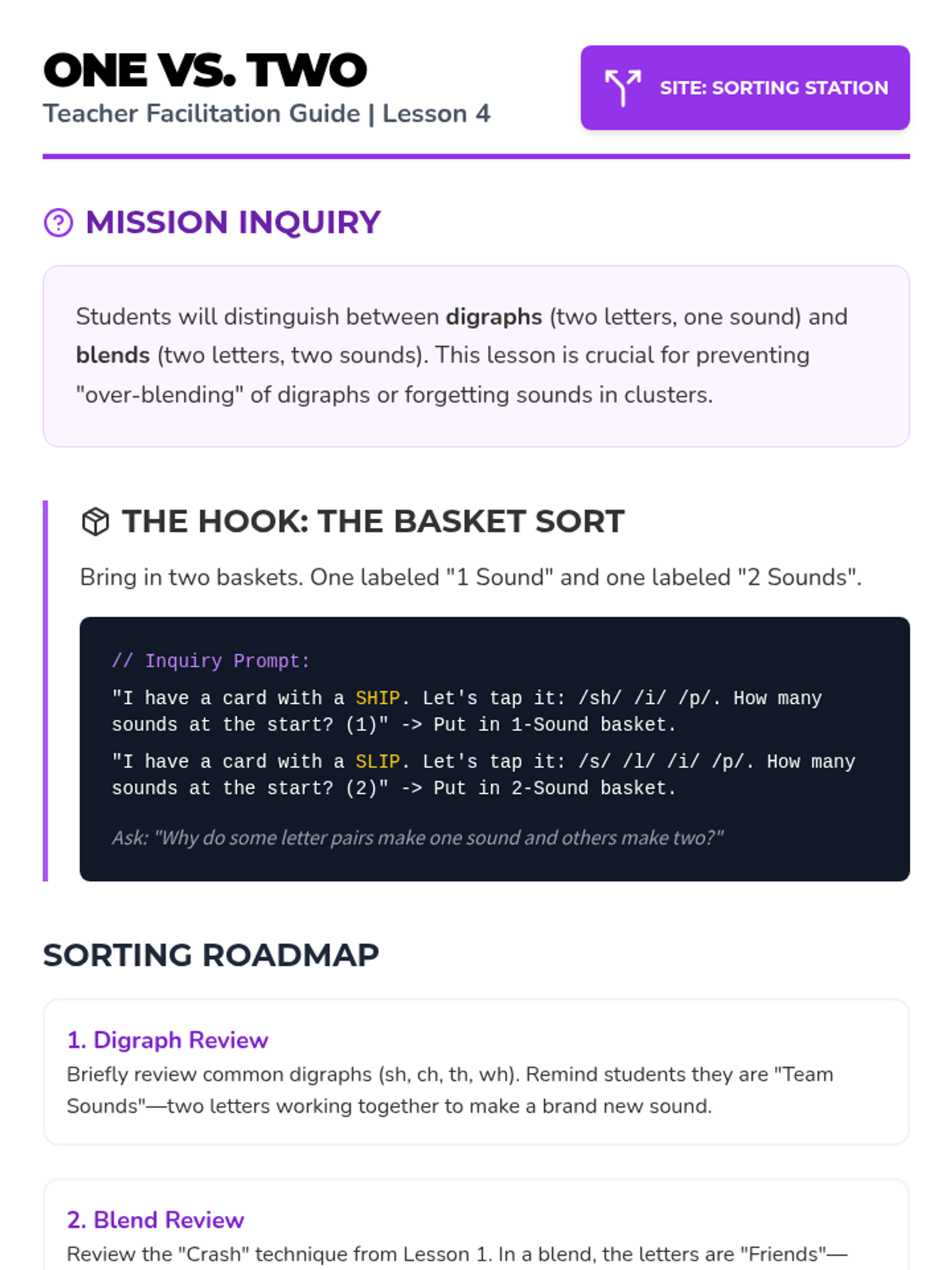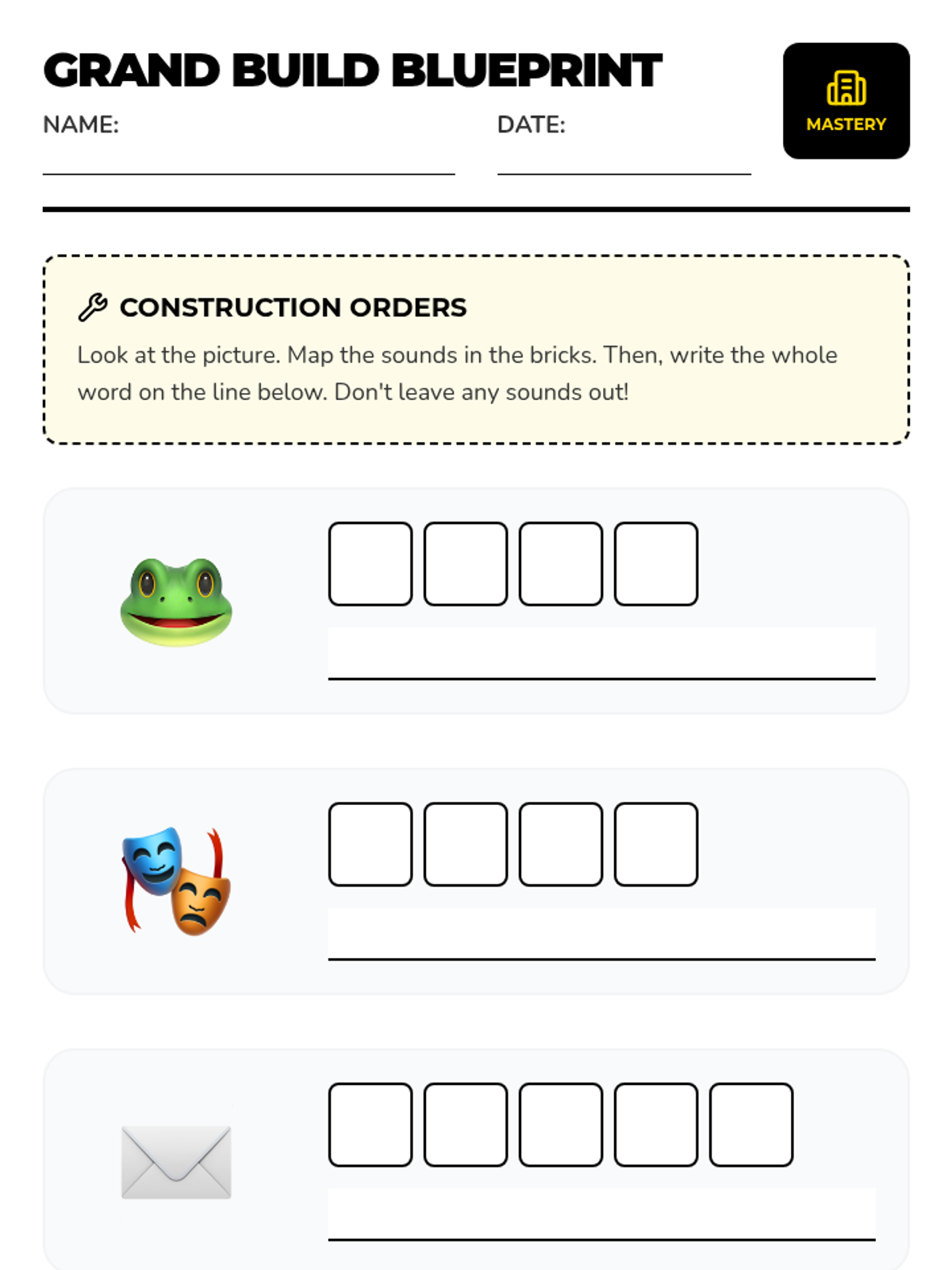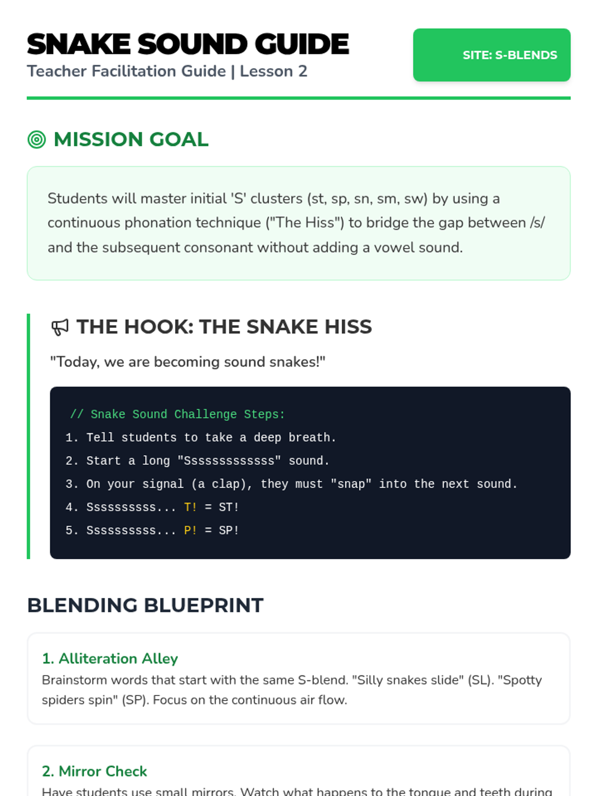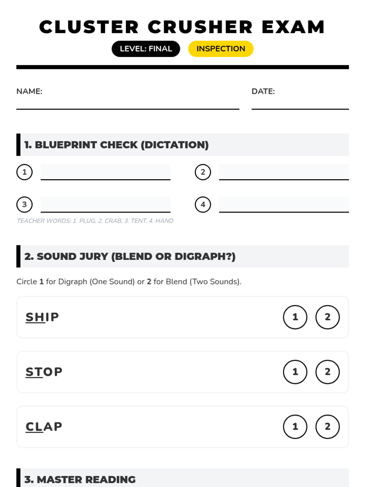 A comprehensive 1st-grade phonics sequence focused on mastering consonant blends. Students explore initial L, R, and S blends, move to final blends, differentiate blends from digraphs, and culminate in building complex CCVC and CVCC words using a 'Construction Site' theme.