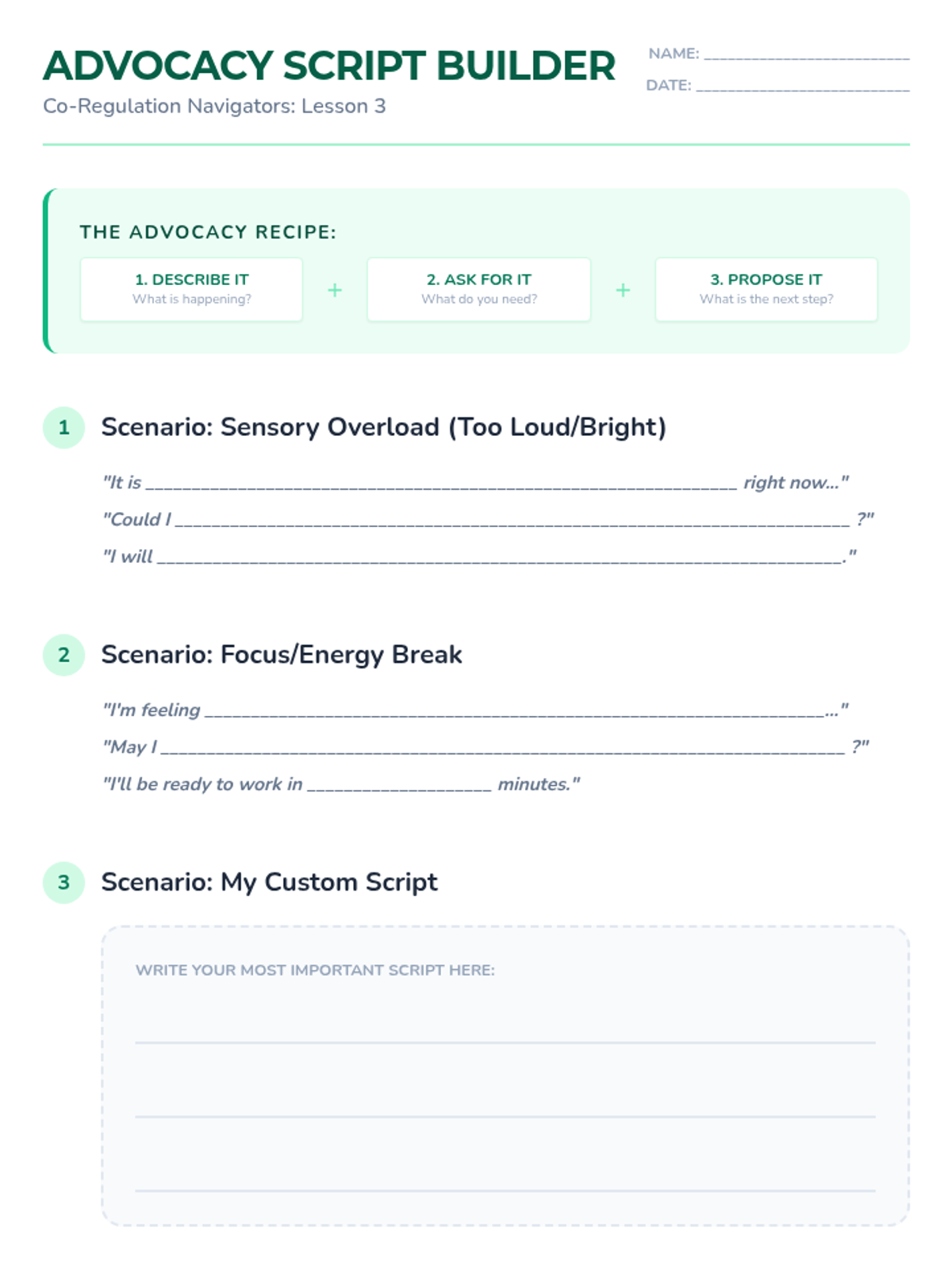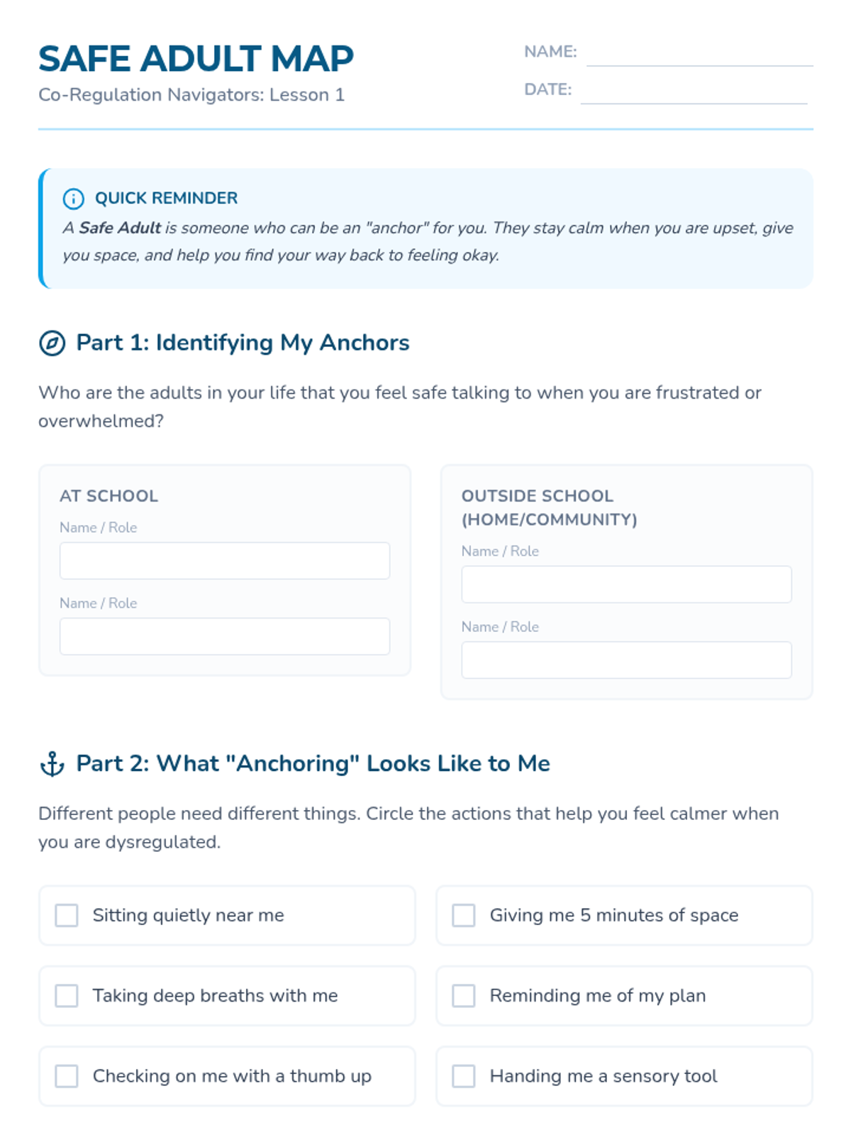 This sequence teaches 5th-grade students how to communicate their sensory needs and utilize co-regulation strategies. Students will develop non-verbal signals, practice verbal scripts, and create a formal co-regulation plan to bridge the gap between internal dysregulation and external support.