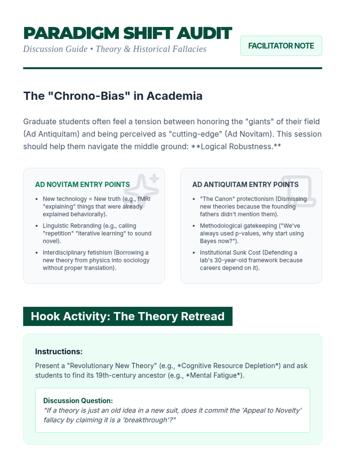 This sequence explores the intersection of cognitive psychology and formal logic within the context of graduate-level academic research. Students will investigate how innate heuristics and biases lead to common logical fallacies in literature reviews, methodology, and theory building, culminating in a personal reflexivity audit.