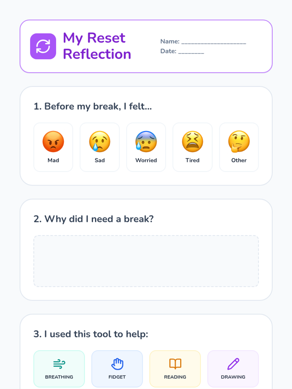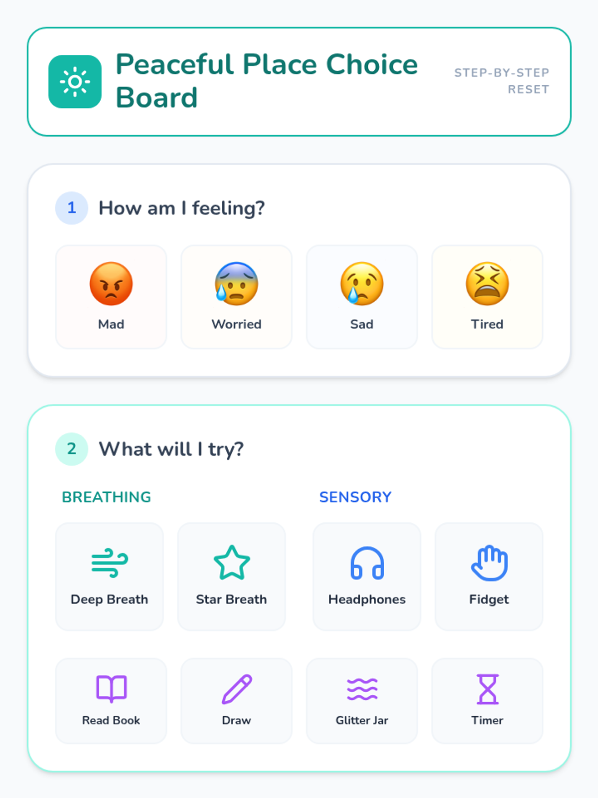A foundational emotional intelligence unit designed for 4-year-olds to help them identify basic emotions and learn concrete self-regulation strategies. The resources use simple visuals and clear prompts to build self-awareness and provide tools for managing big feelings.