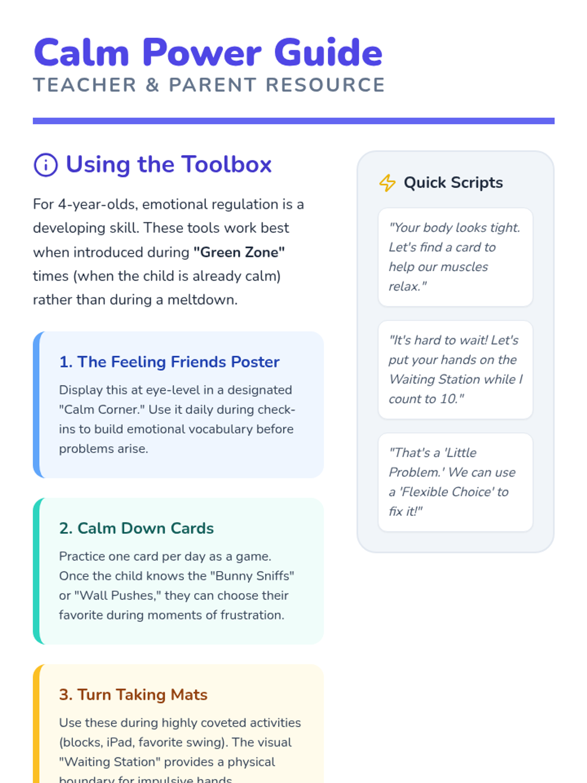 A comprehensive collection of resources designed for preschool-aged children to develop emotional regulation, turn-taking skills, and flexible thinking through visual supports and guided activities.