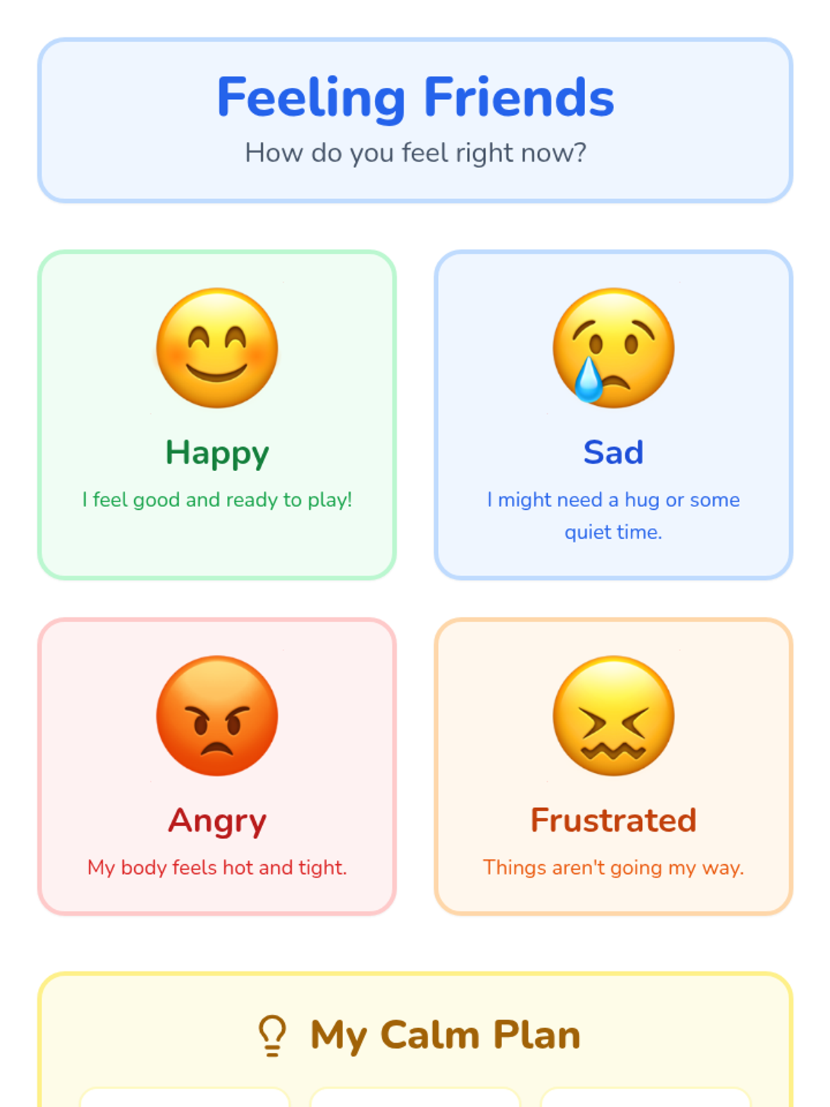 A foundational social-emotional learning unit designed for Pre-K special education students to identify, understand, and express basic emotions through visual and interactive play.