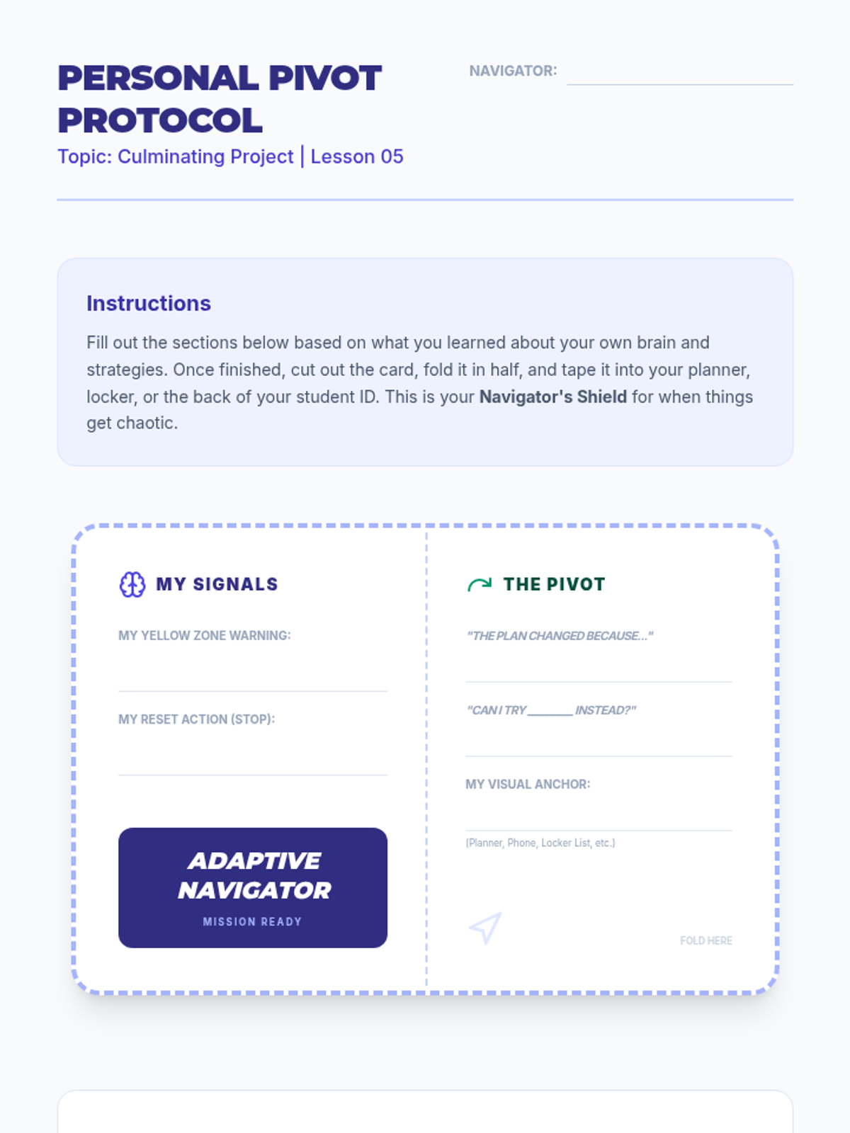 A comprehensive unit designed for 7th and 8th-grade special education students to strengthen executive functions. Through a 'mental fitness' theme, students practice working memory, cognitive flexibility, and impulse control through games and reflective journaling.