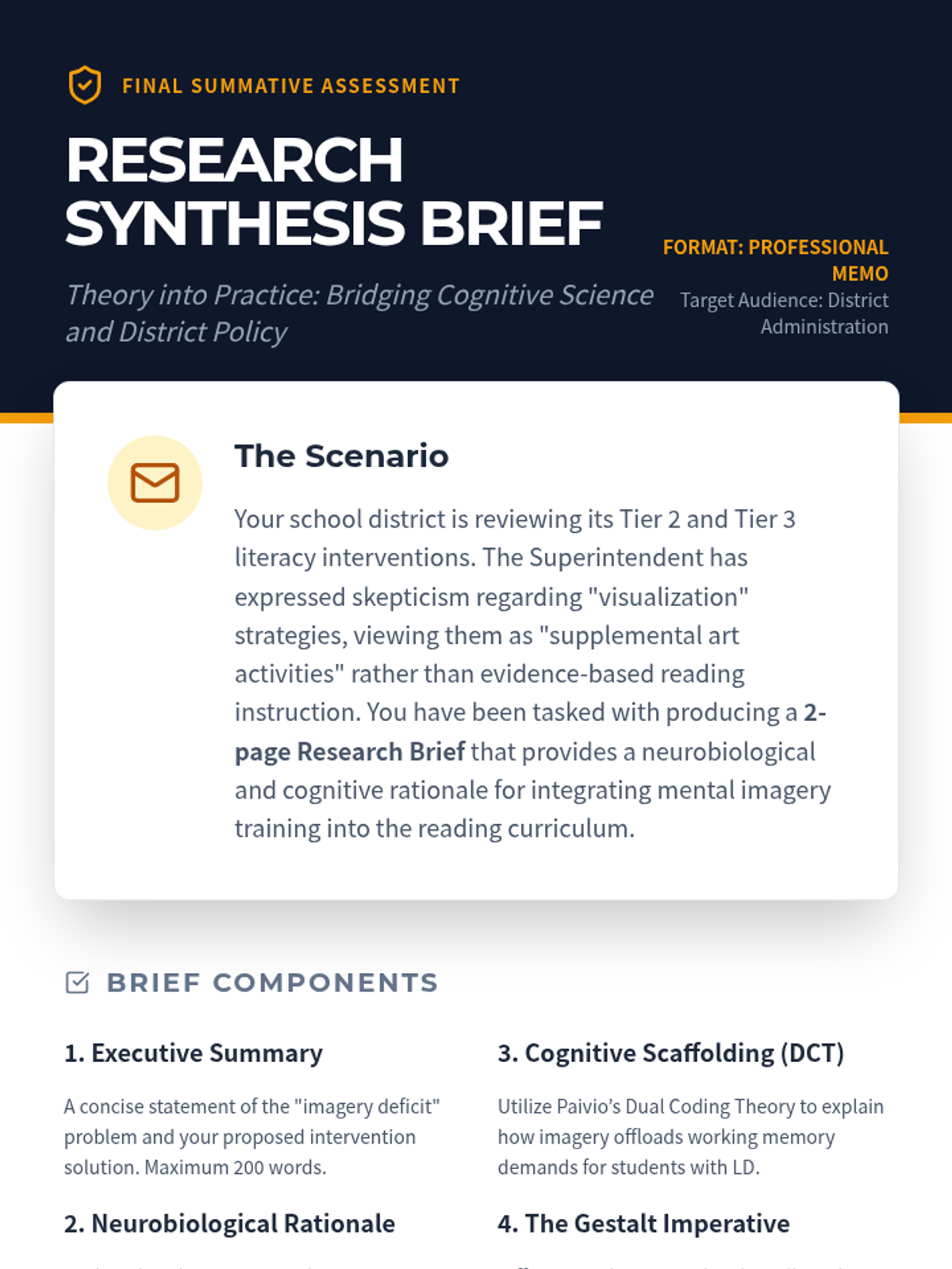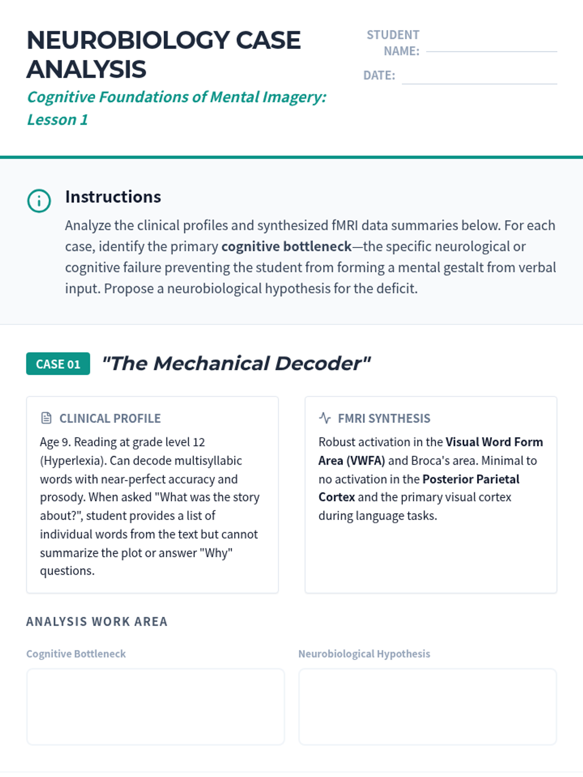 A graduate-level exploration of the cognitive science and neurological underpinnings of visualization as a reading intervention for special education. Students will bridge the gap between abstract neuroscience and practical application through research analysis and theory critique.