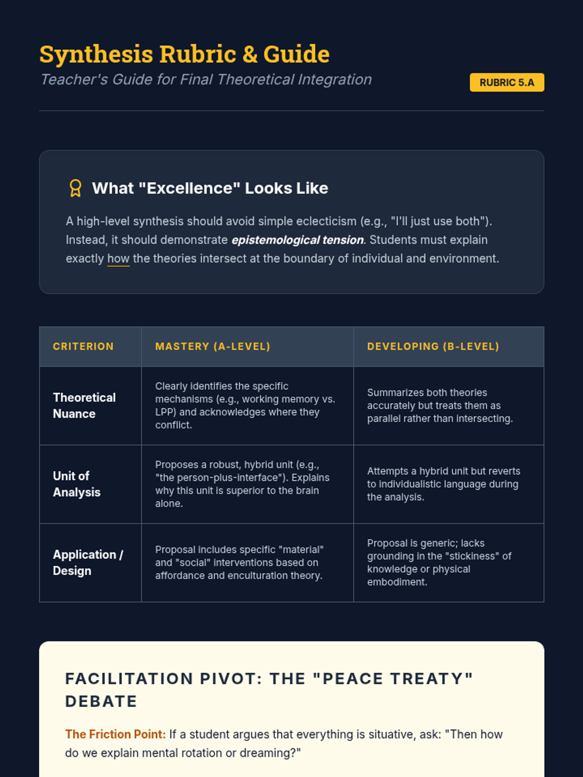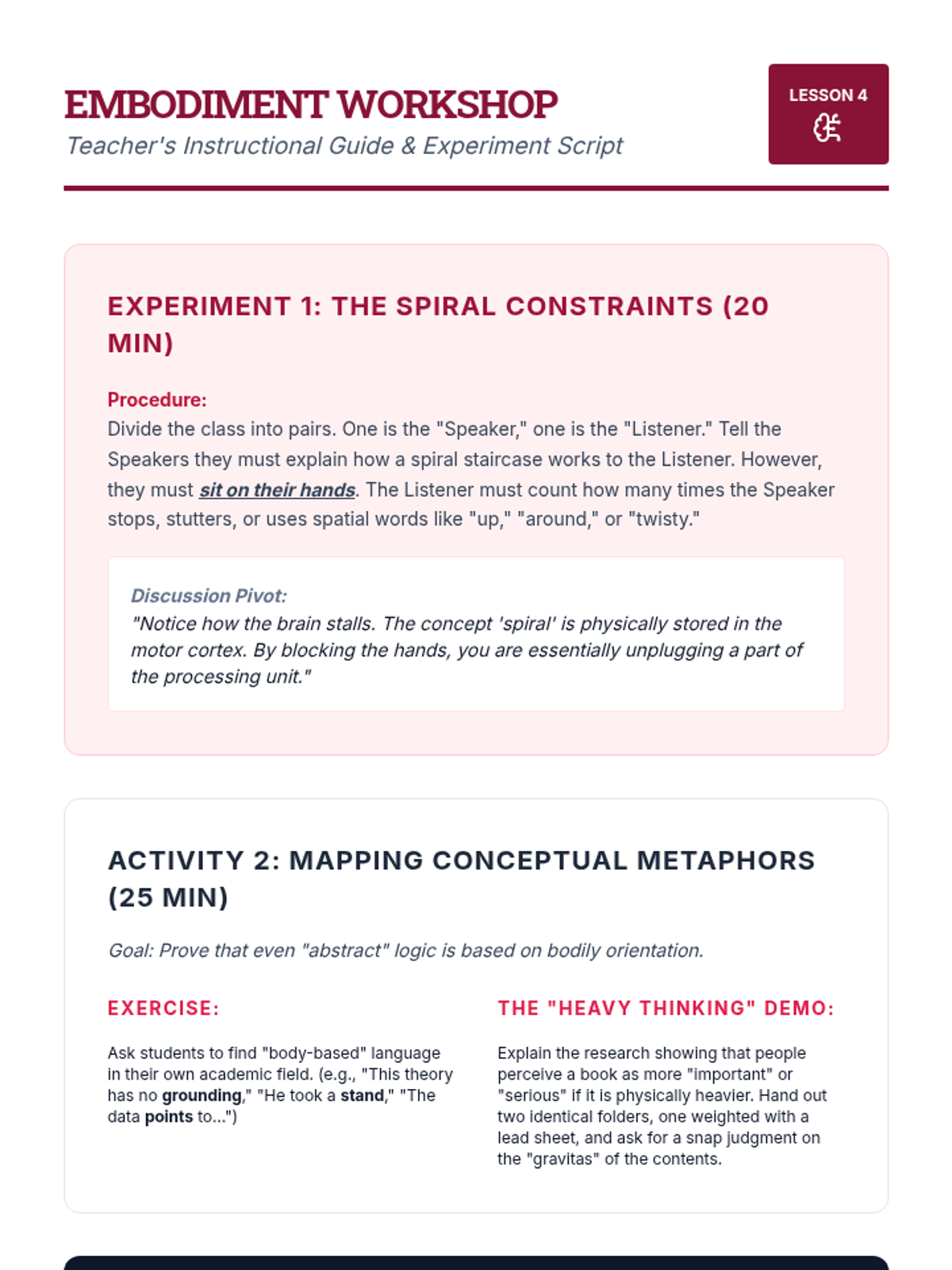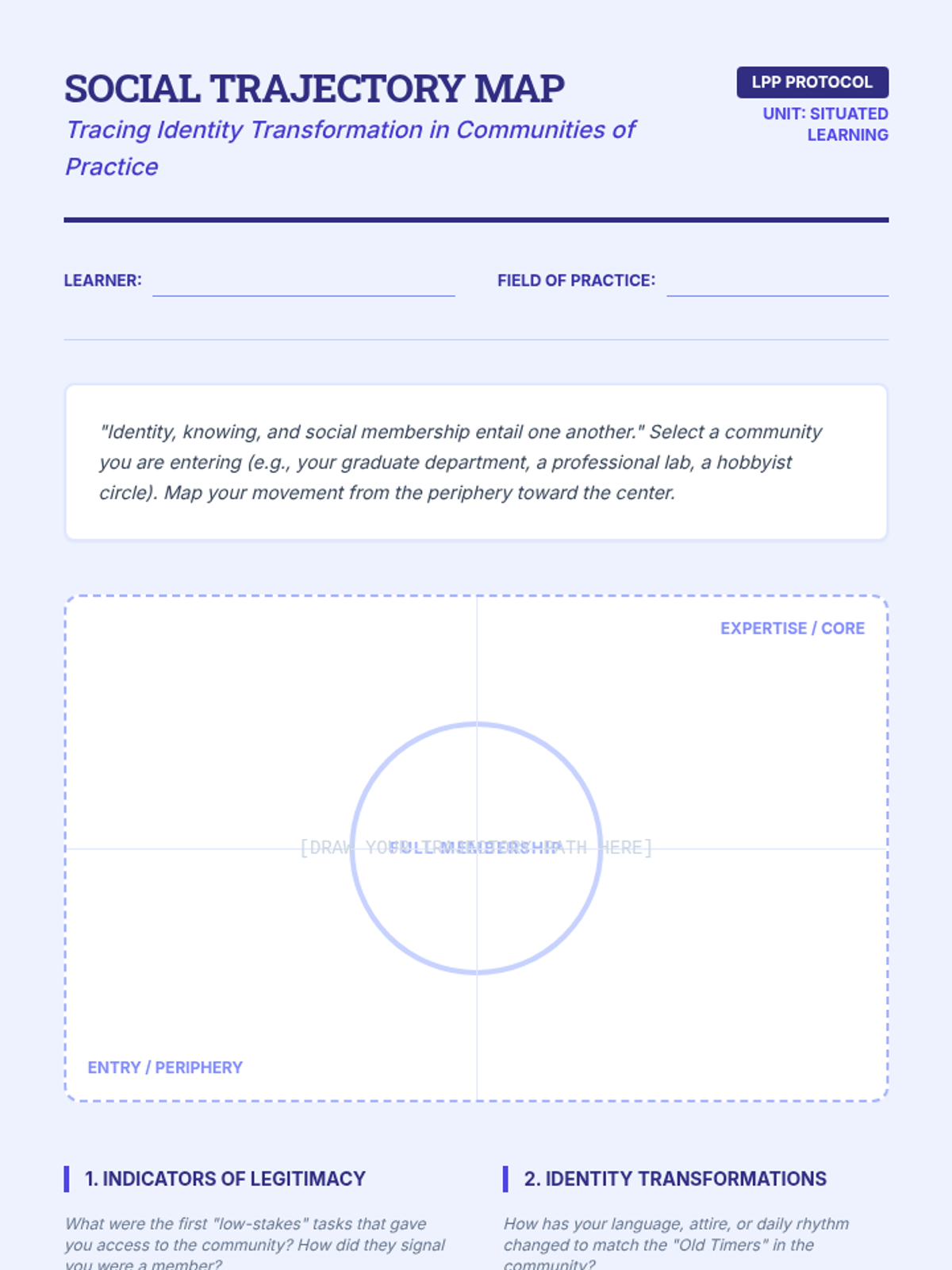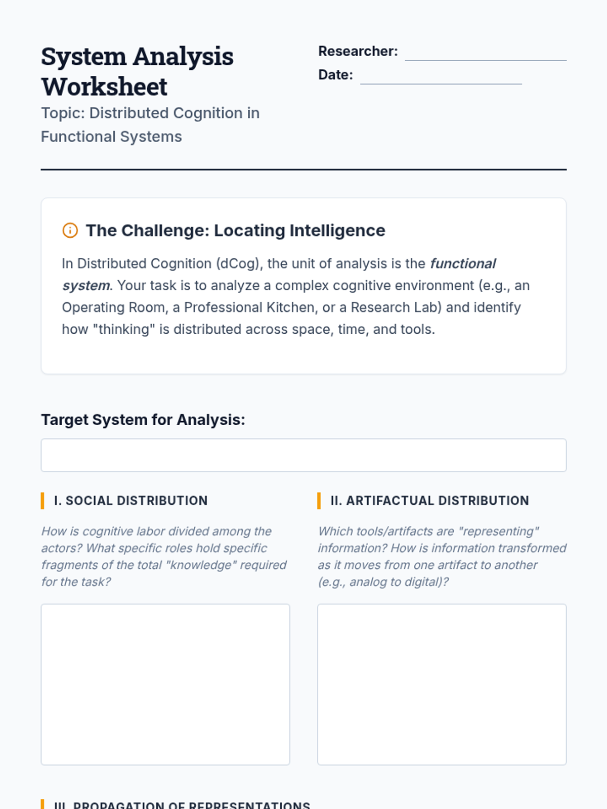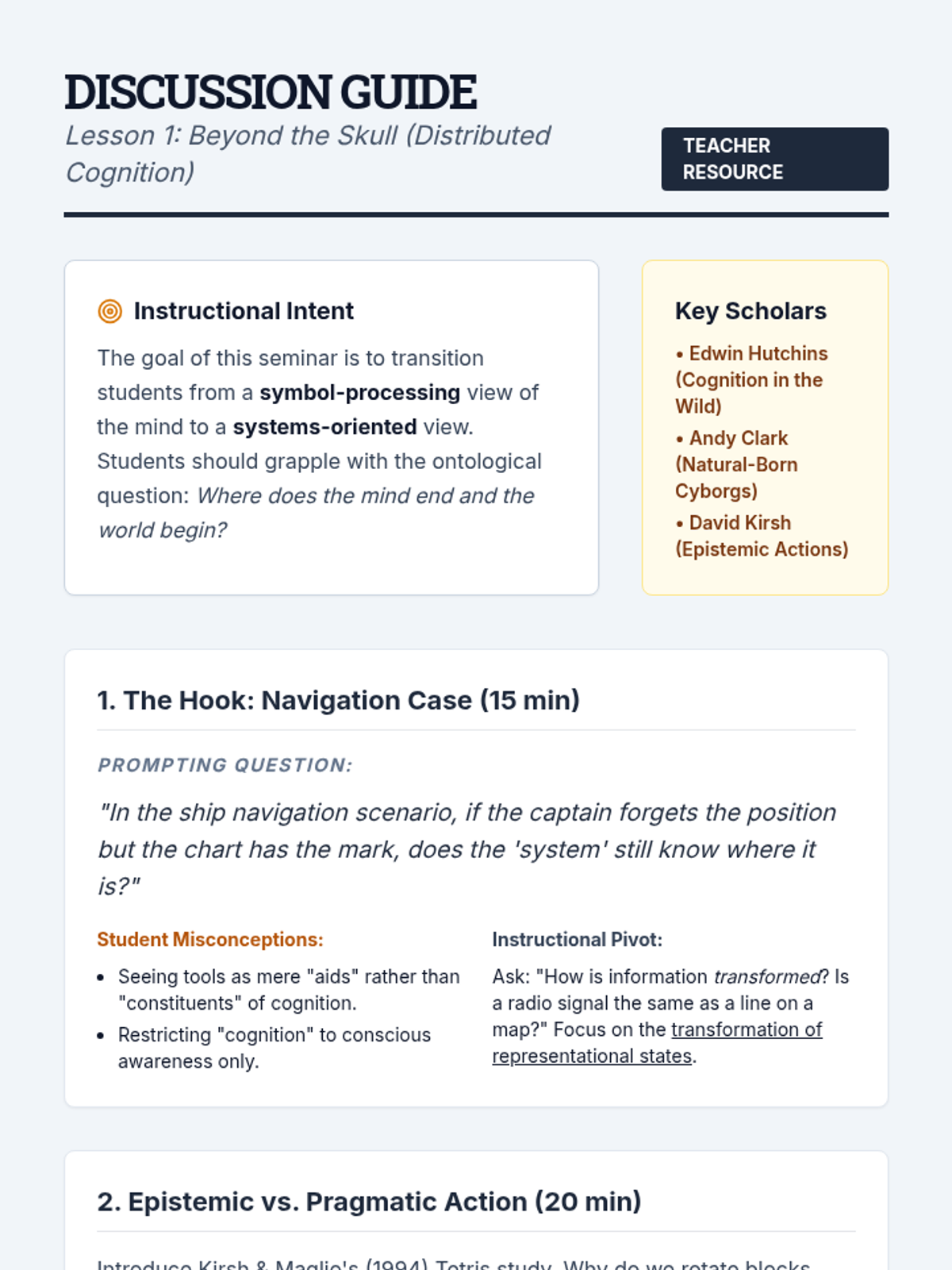 A graduate-level sequence exploring Situated, Distributed, and Embodied Cognition as alternatives to traditional information-processing models. Students will critique established frameworks through case studies, environmental audits, and theoretical synthesis.