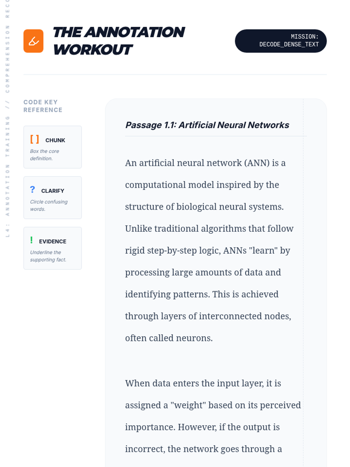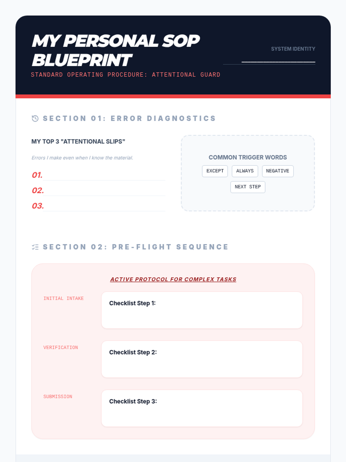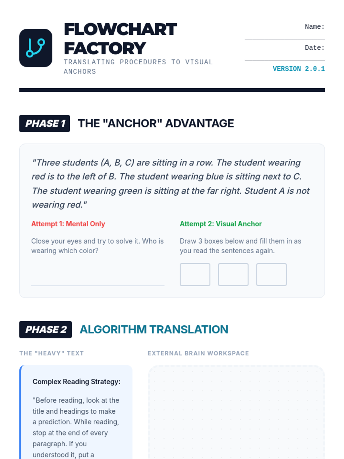 A metacognitive workshop for 12th-grade students to master cognitive load theory and develop personal 'Standard Operating Procedures' for complex academic tasks. The sequence focuses on externalizing working memory demands through visual anchors, active processing, and self-correction protocols.