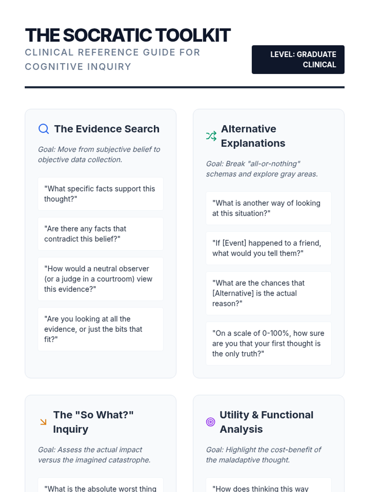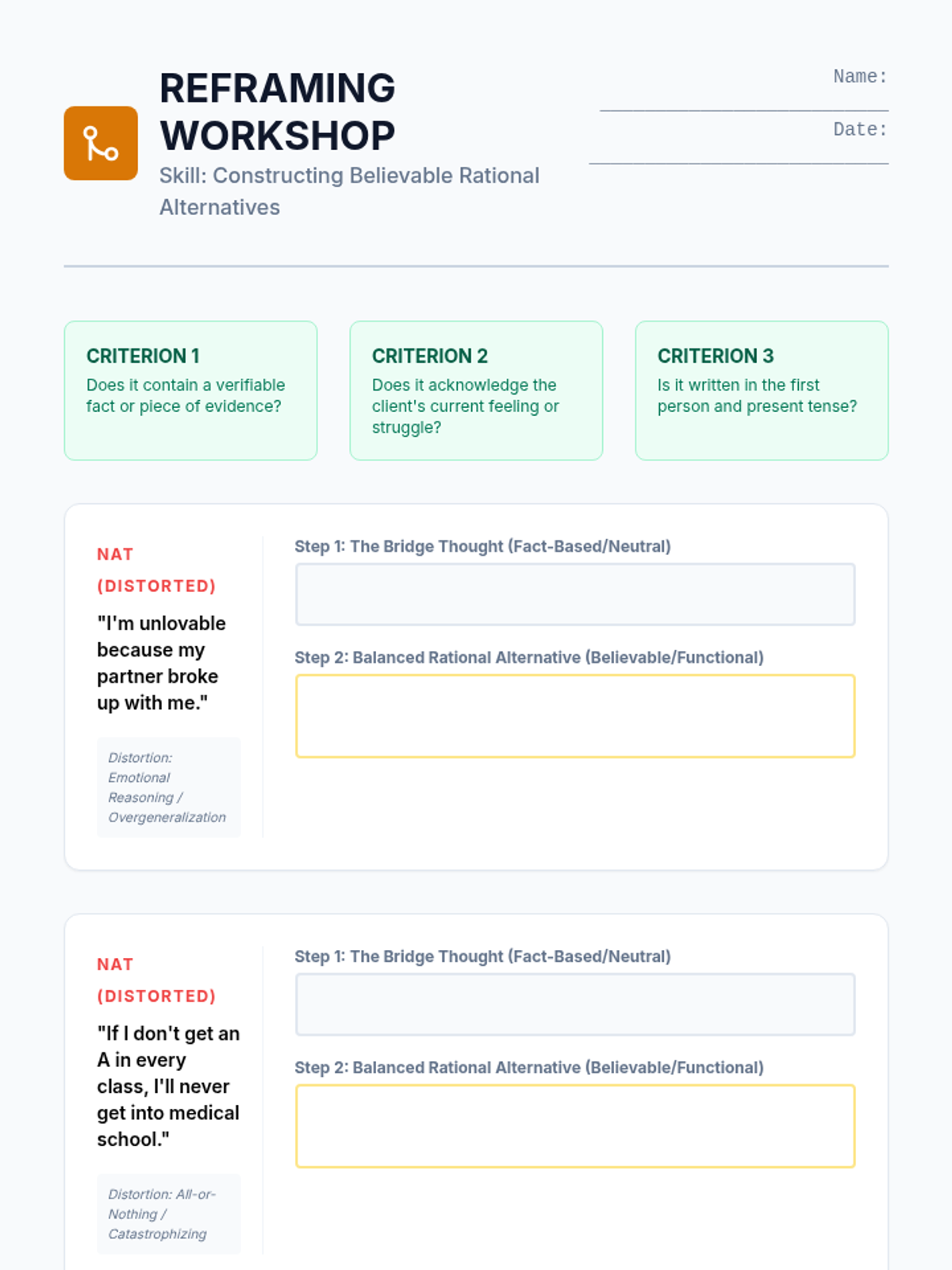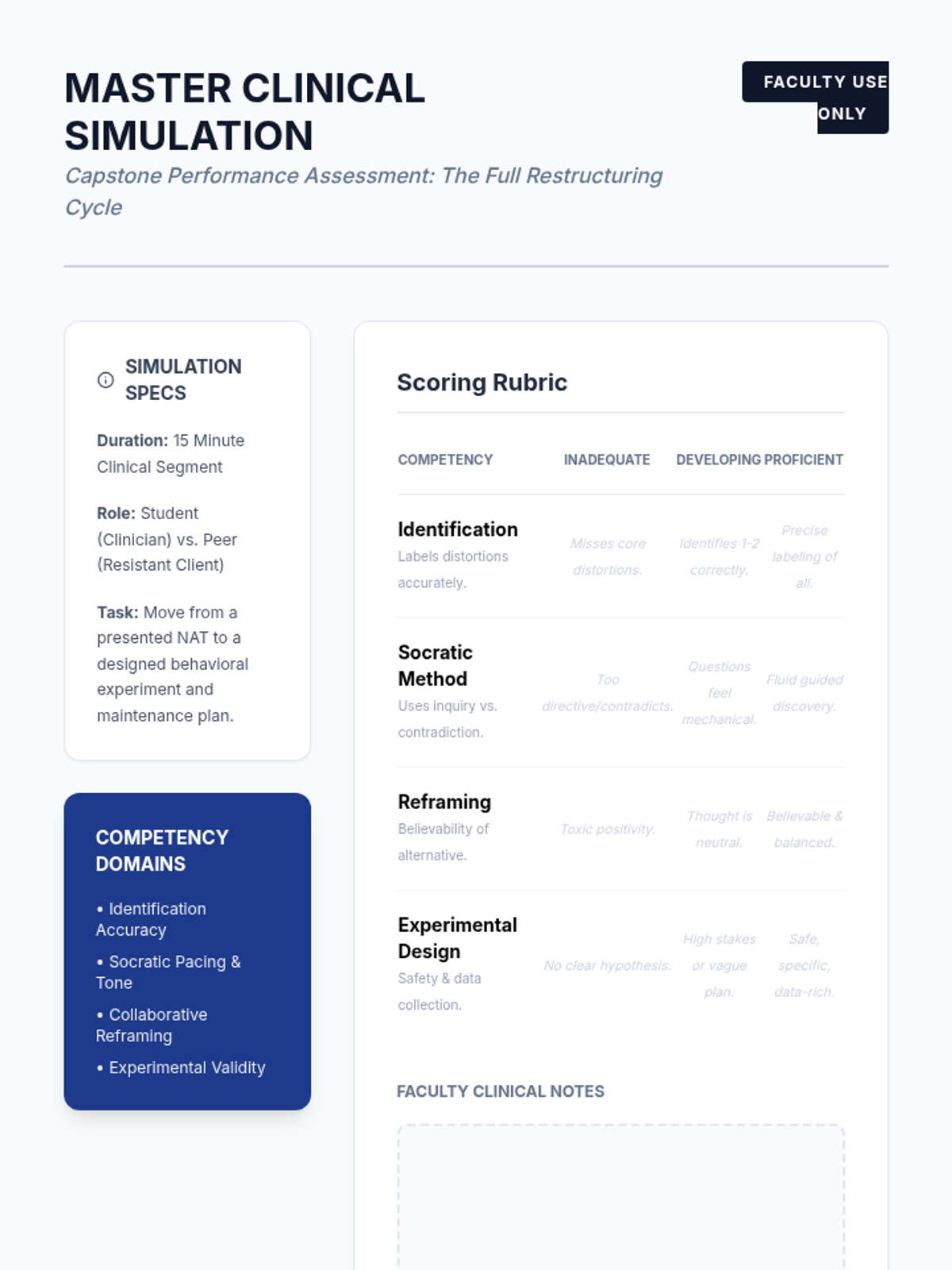 A comprehensive clinical training series for graduate-level counseling students focused on the identification, deconstruction, and restructuring of cognitive distortions through Cognitive Behavioral Therapy (CBT) frameworks.