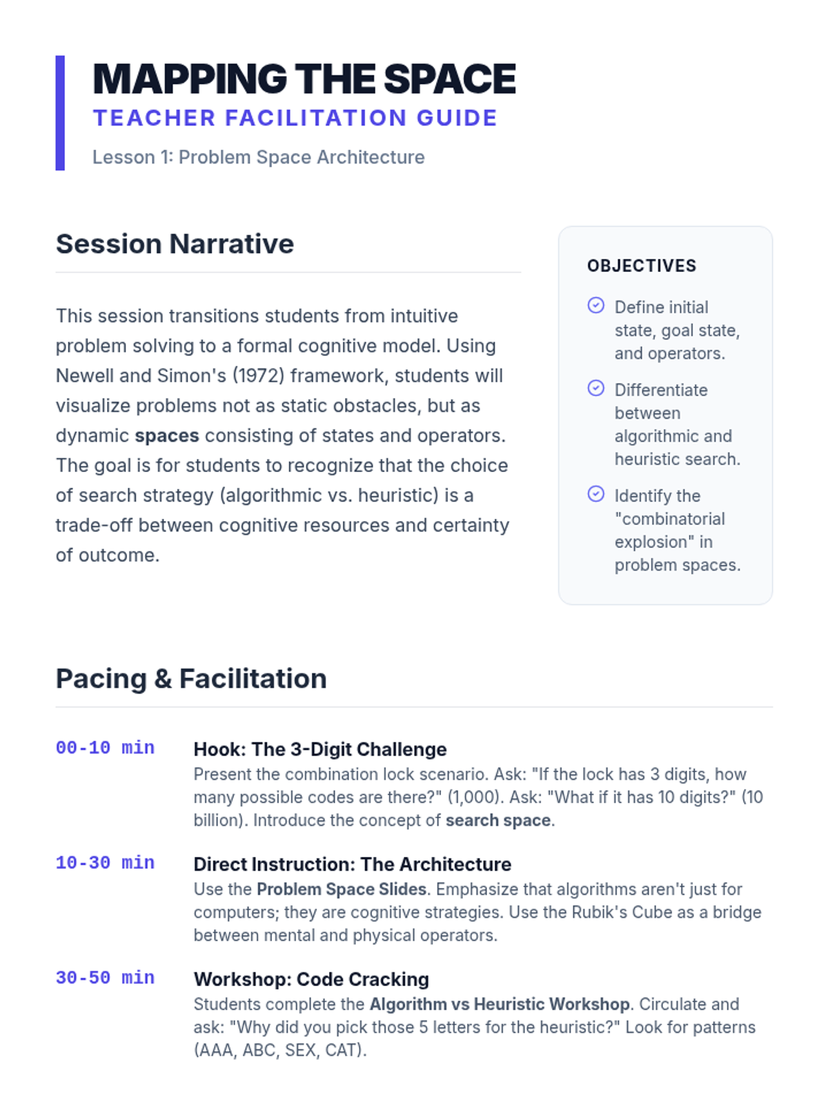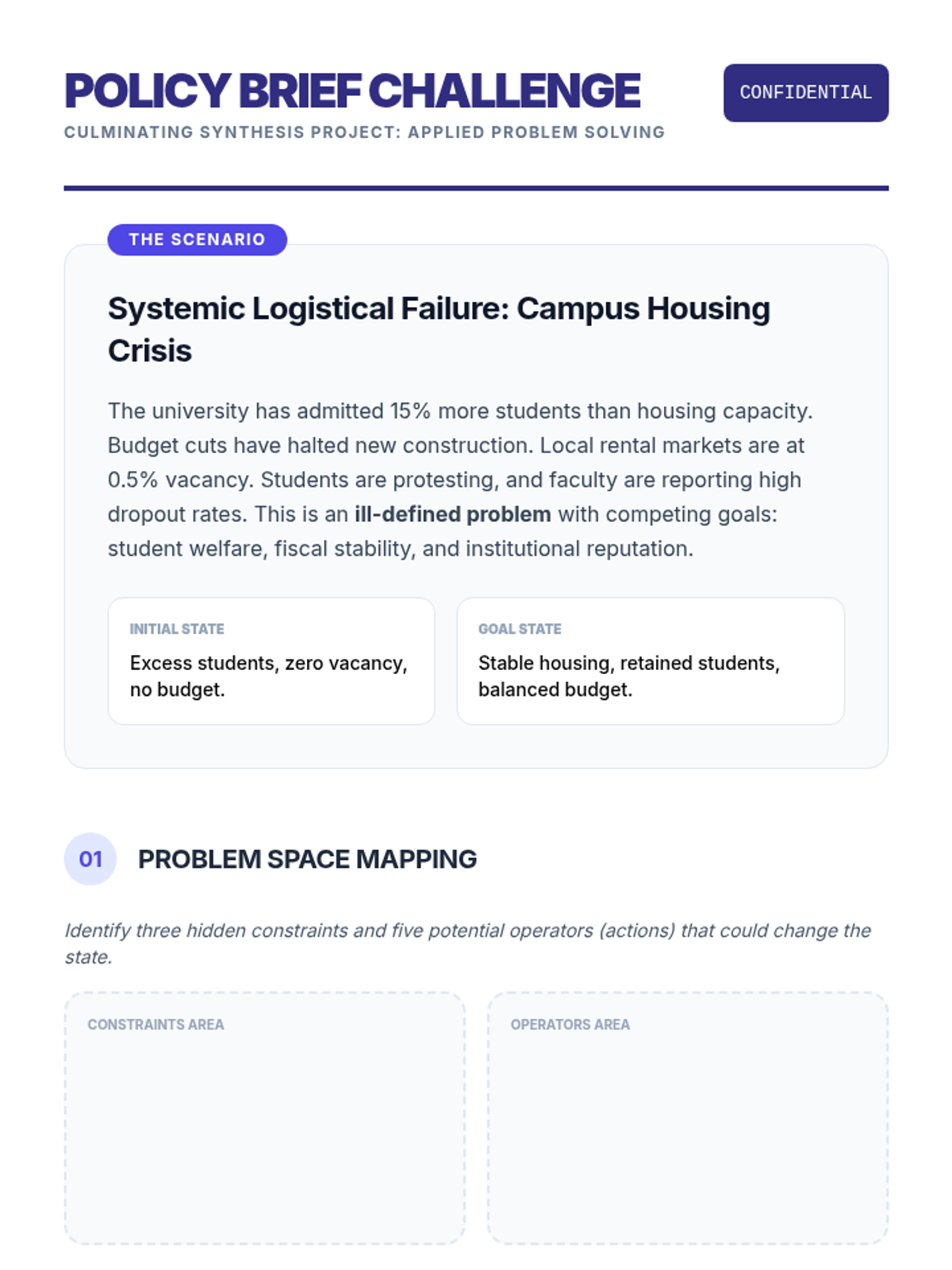 A rigorous undergraduate sequence exploring the cognitive architecture of problem solving, from algorithmic processing and heuristics to insight learning and divergent thinking. Students apply theoretical frameworks to well-defined and ill-defined problems, culminating in a synthesis project on complex systems.