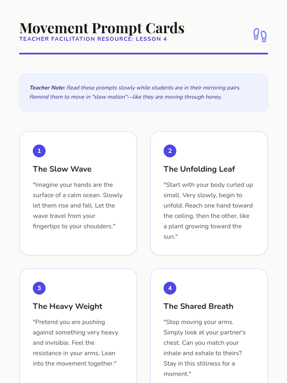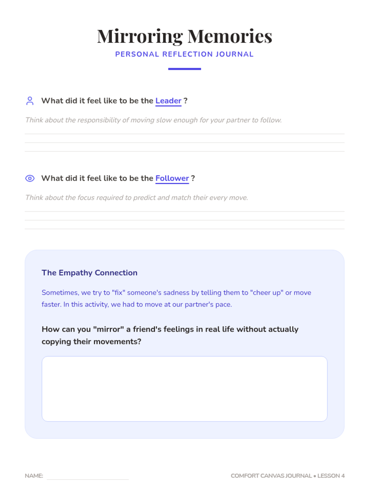 A 5-lesson sequence for 6th graders focused on collective healing and empathy through collaborative art and drama. Students move from individual expressions of empathy to a community-wide commitment to support.