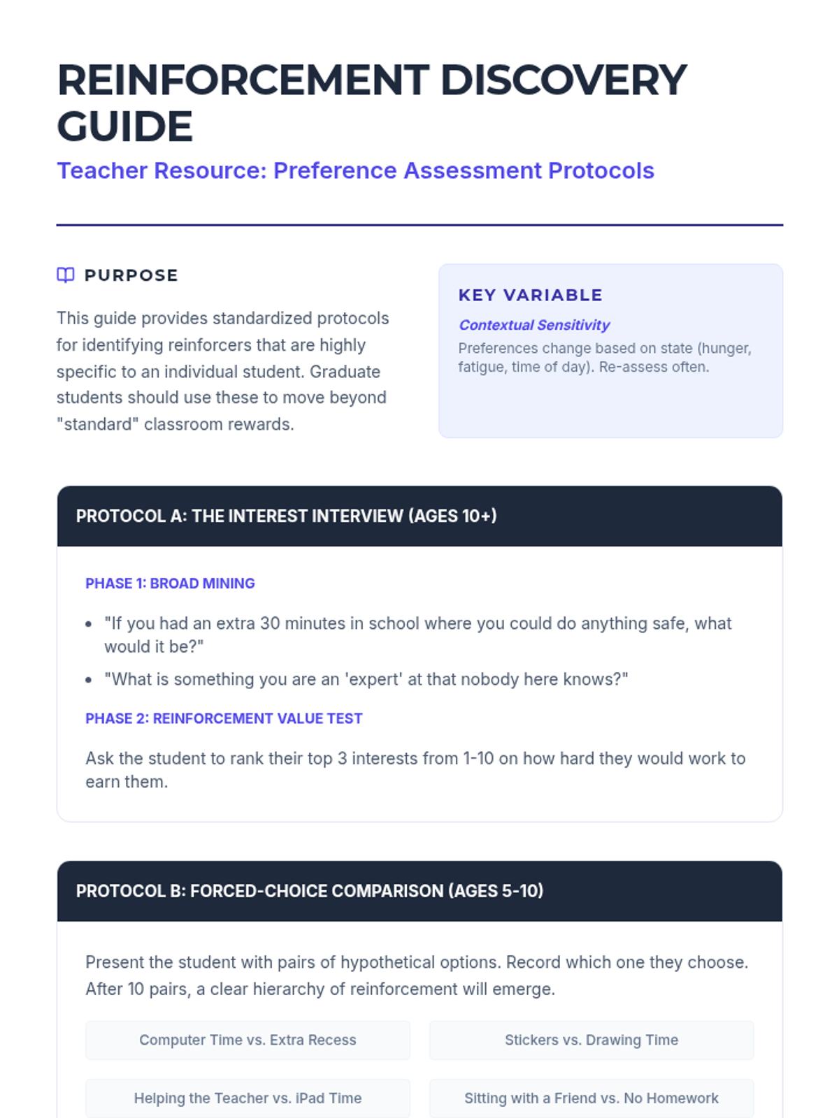 A comprehensive training module for paraprofessionals to support K-8 students in sensory regulation. It focuses on identifying internal states, building sensory menus, and implementing proactive breaks to maintain a 'ready to learn' zone.