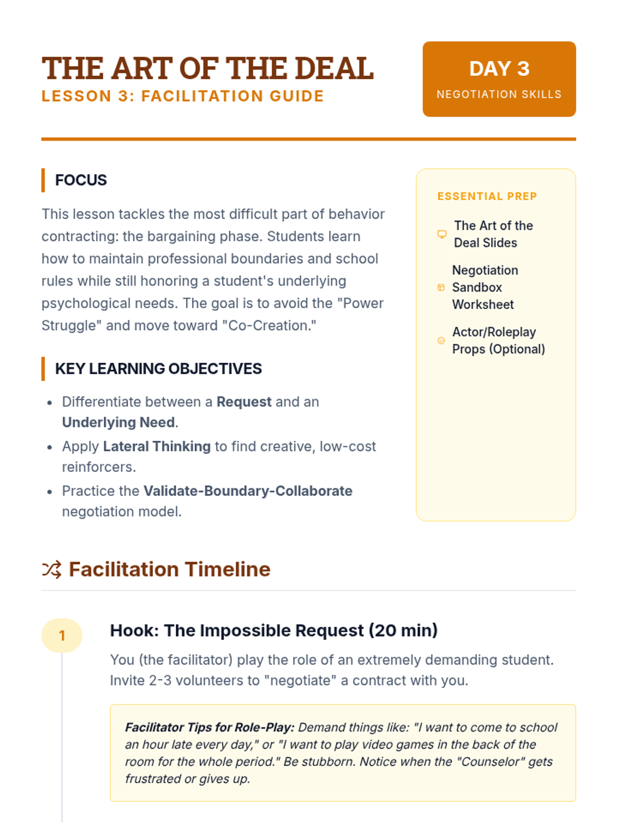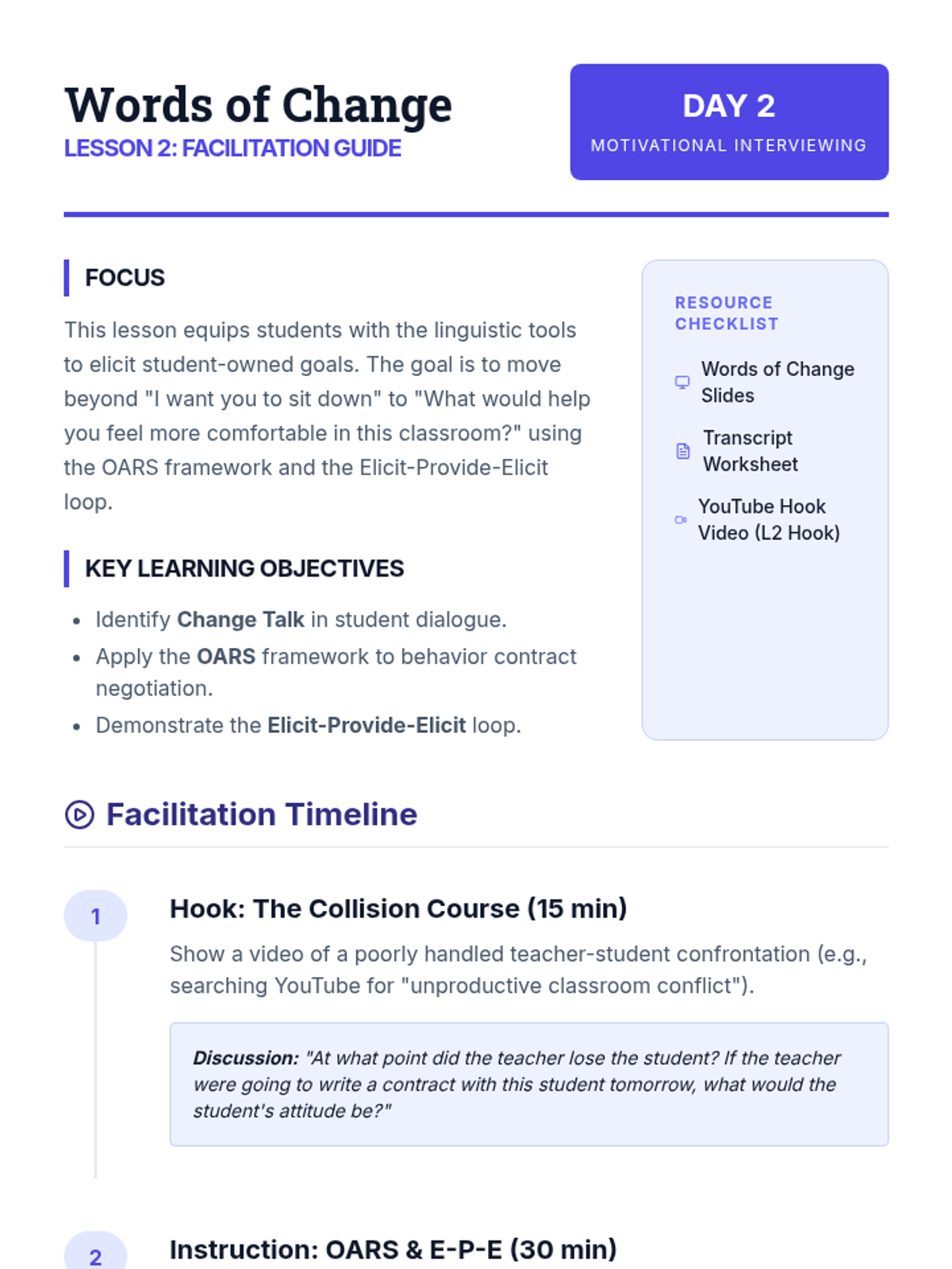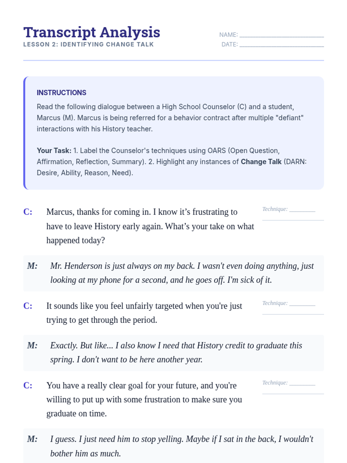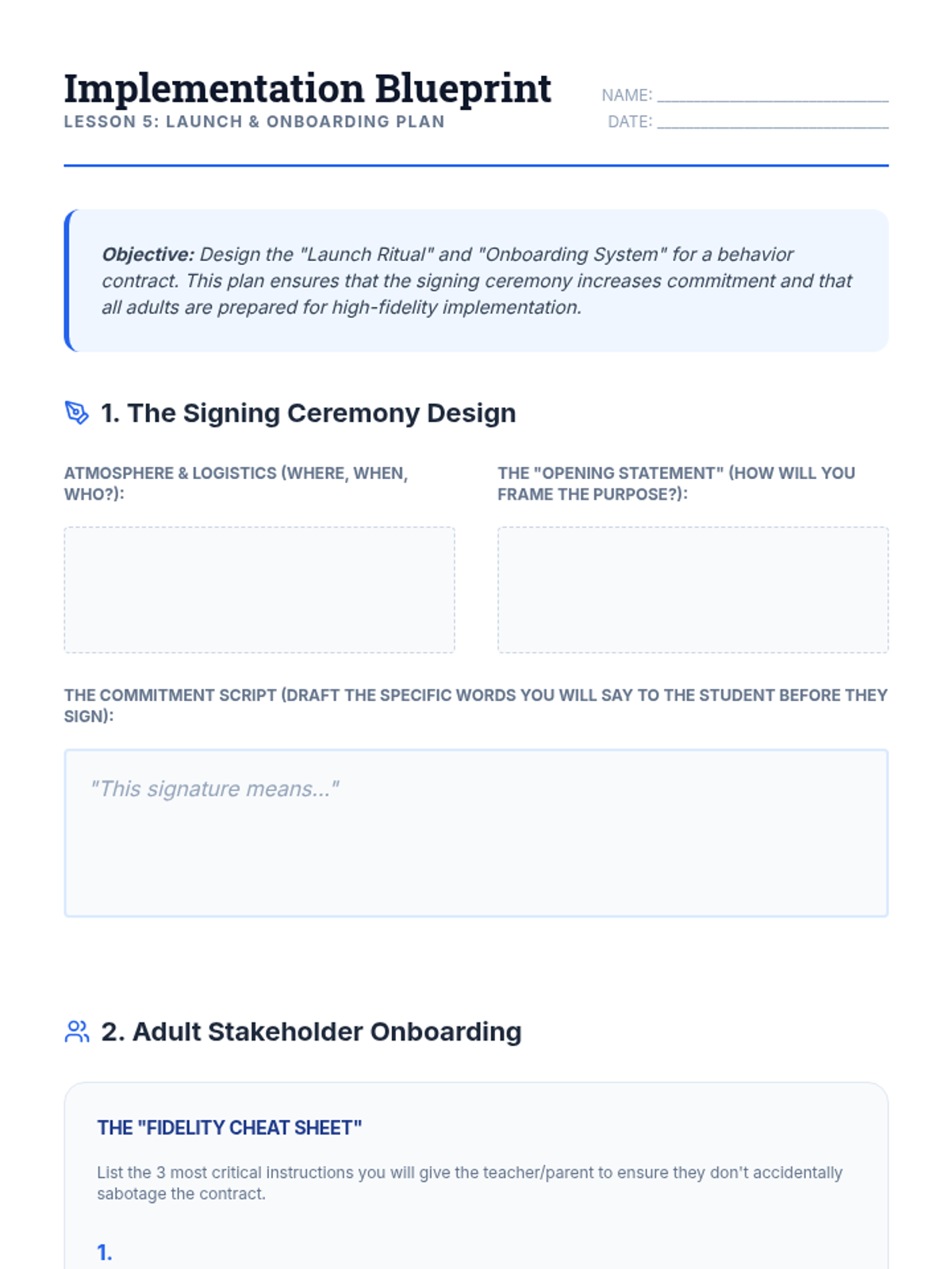 This graduate-level sequence focuses on the interpersonal and therapeutic aspects of behavior contracting. Rather than treating the contract as a static document, students explore it as a collaborative intervention designed to build student agency, self-regulation, and stakeholder alignment using Motivational Interviewing and negotiation strategies.