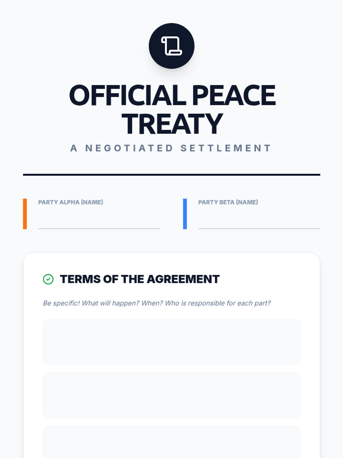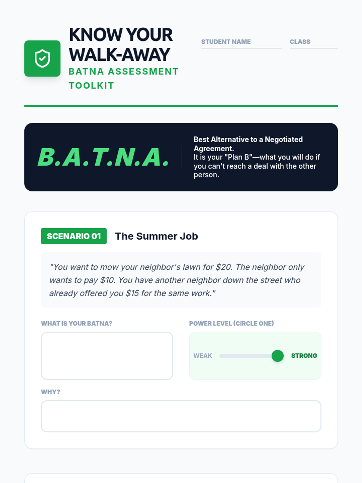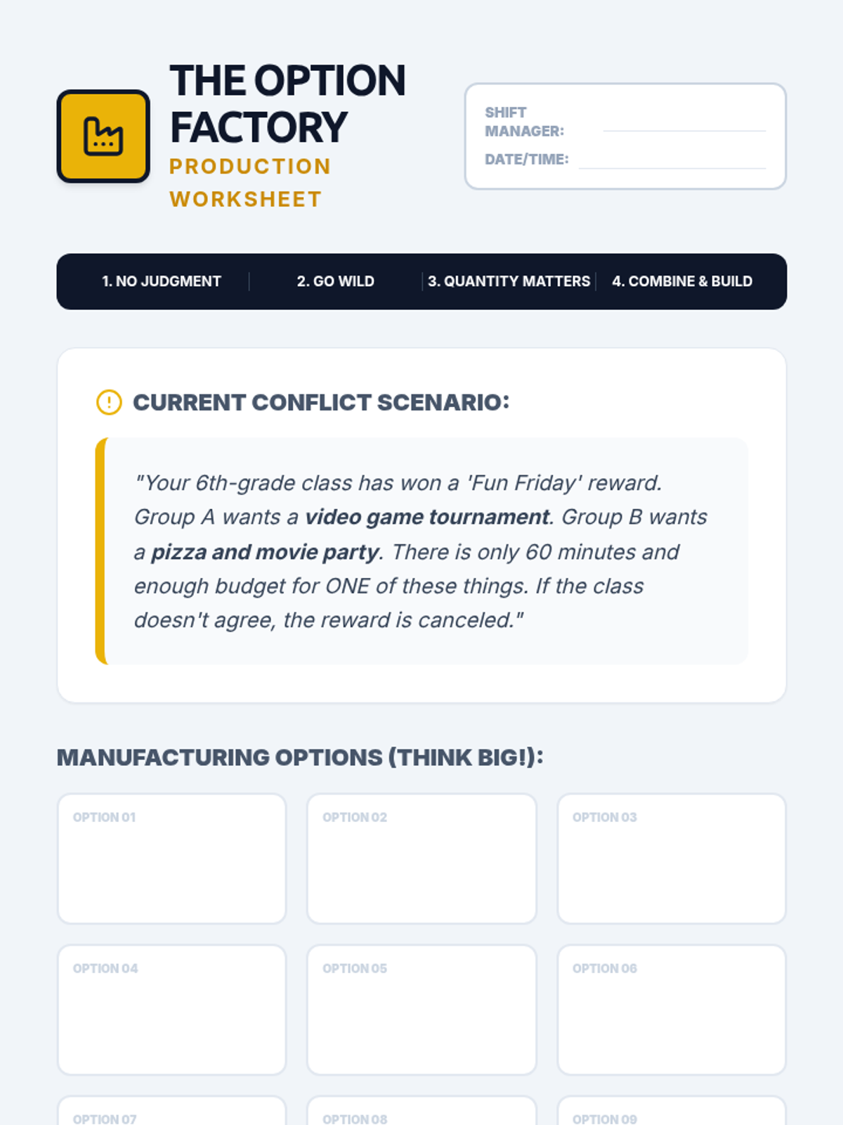 A 5-lesson sequence for 6th graders focusing on Interests-Based Negotiation. Students move from rigid positions to understanding underlying needs, brainstorming creative solutions, and evaluating fairness, culminating in a complex negotiation simulation.