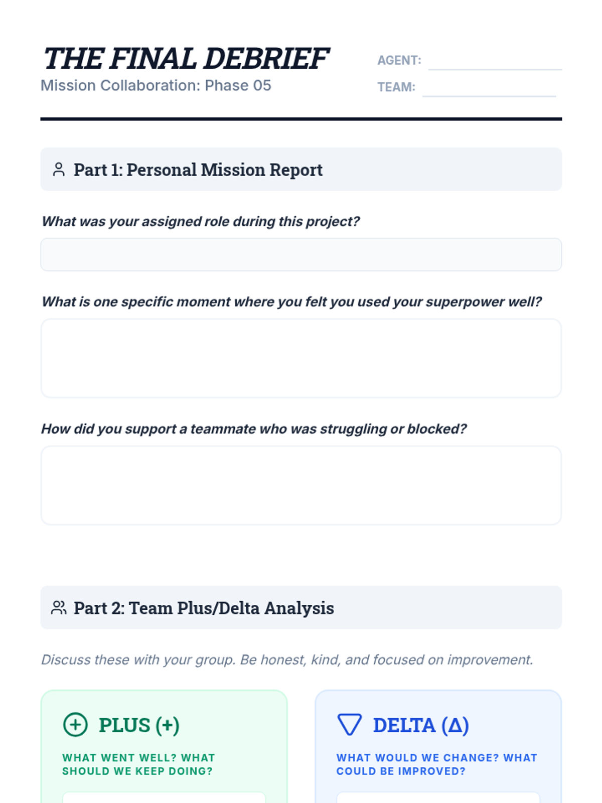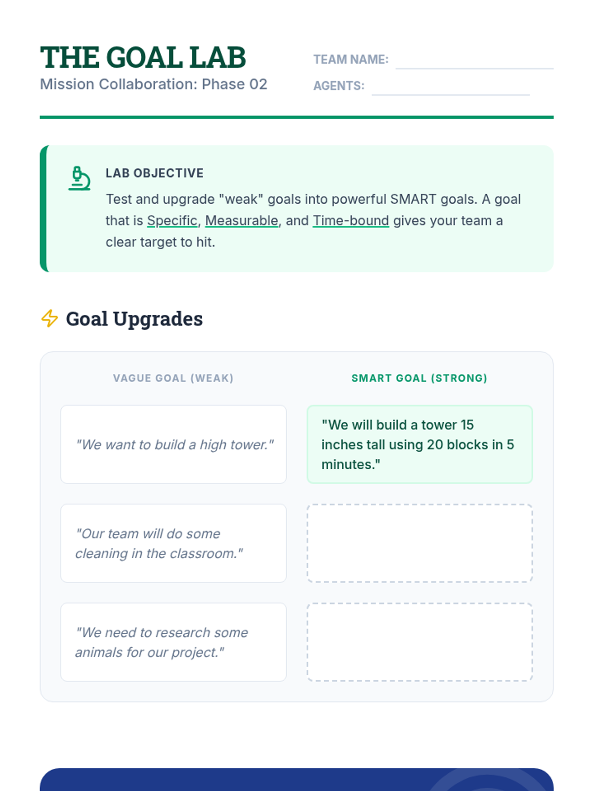 A 5-lesson sequence for 5th graders focusing on the structural elements of teamwork: goal setting, role assignment, and accountability through a project-based approach.