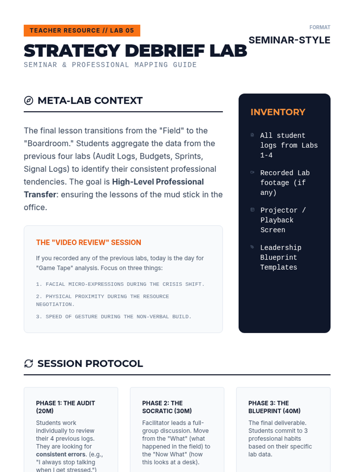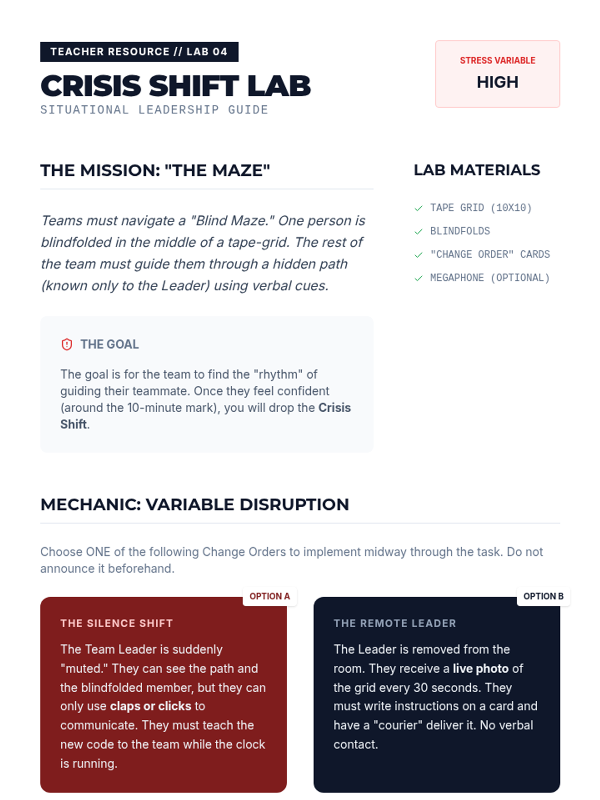 A comprehensive sequence for undergraduate students exploring high-stakes problem-solving through outdoor and adventure activities. Students move from analyzing communication systems to executing adaptive strategies, culminating in professional leadership development plans.