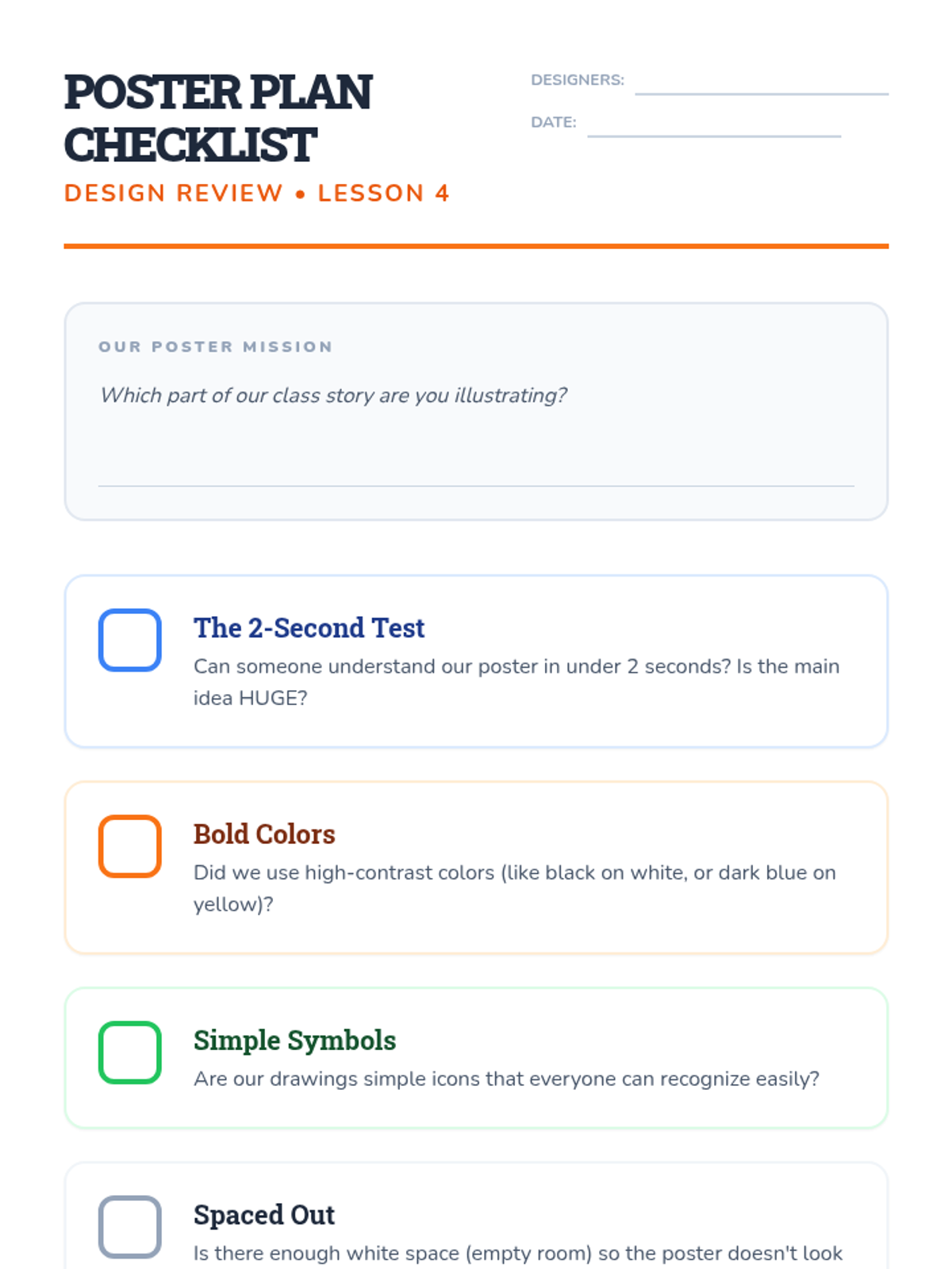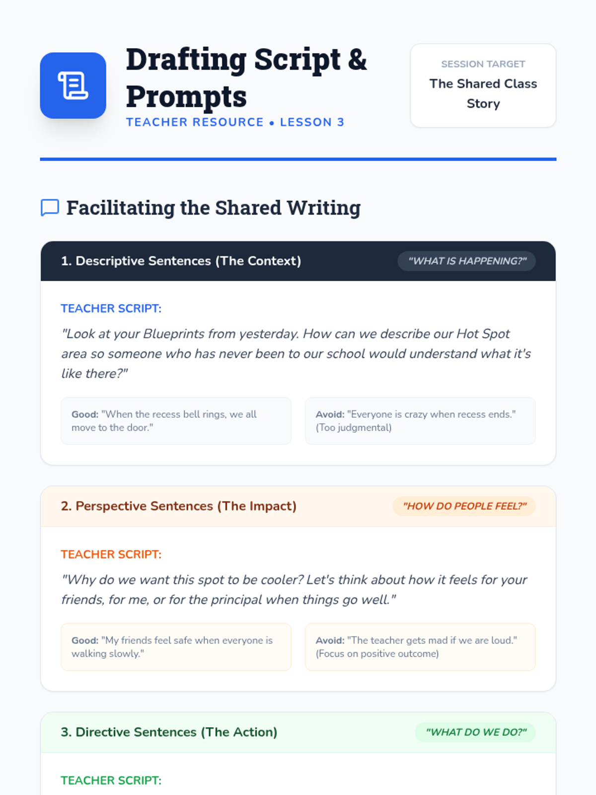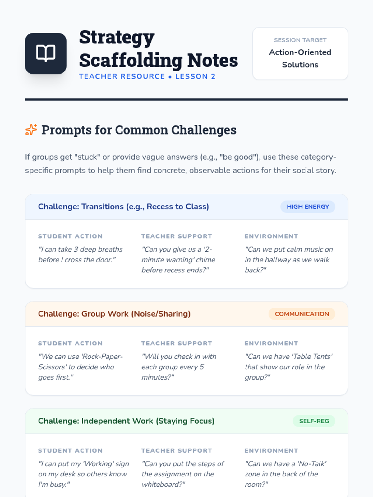 A community-focused sequence where 4th grade students collaboratively identify shared classroom challenges and create collective social stories to foster a supportive environment. Students transition from identifying 'hot spots' of stress to building, implementing, and reflecting on narrative-based behavioral solutions.