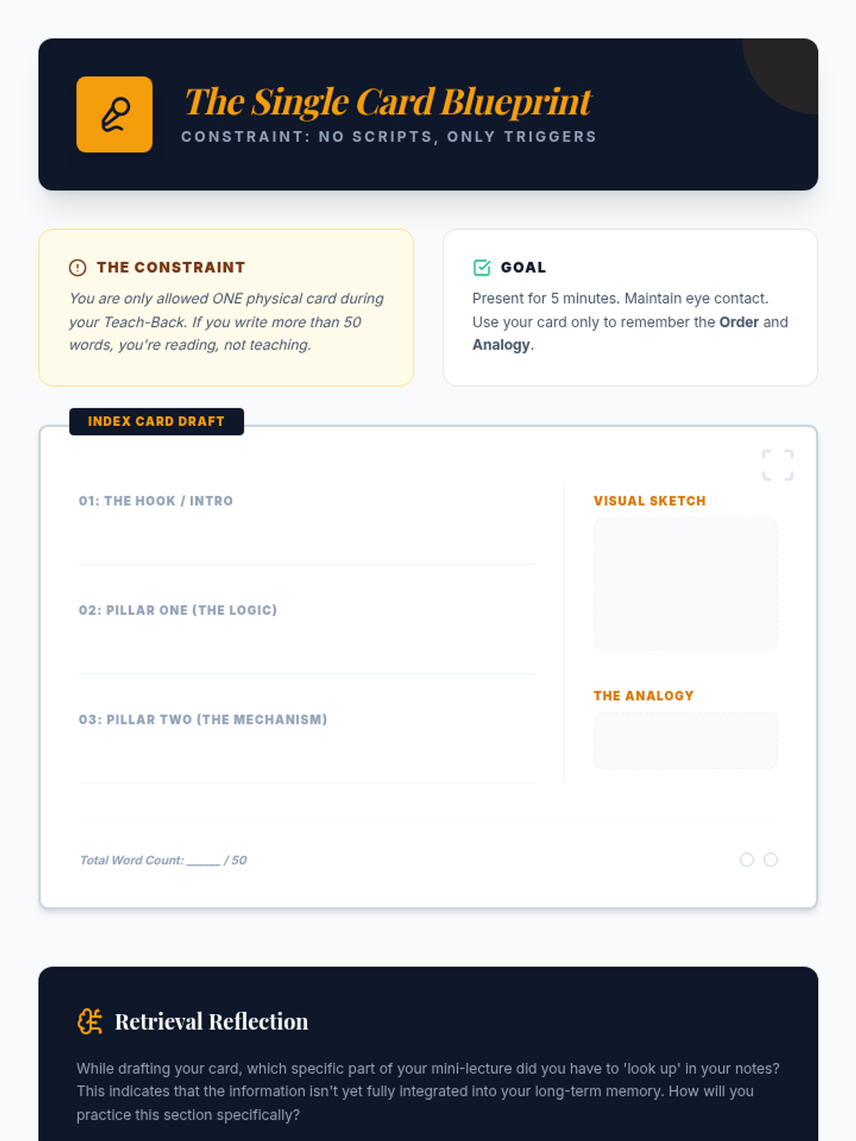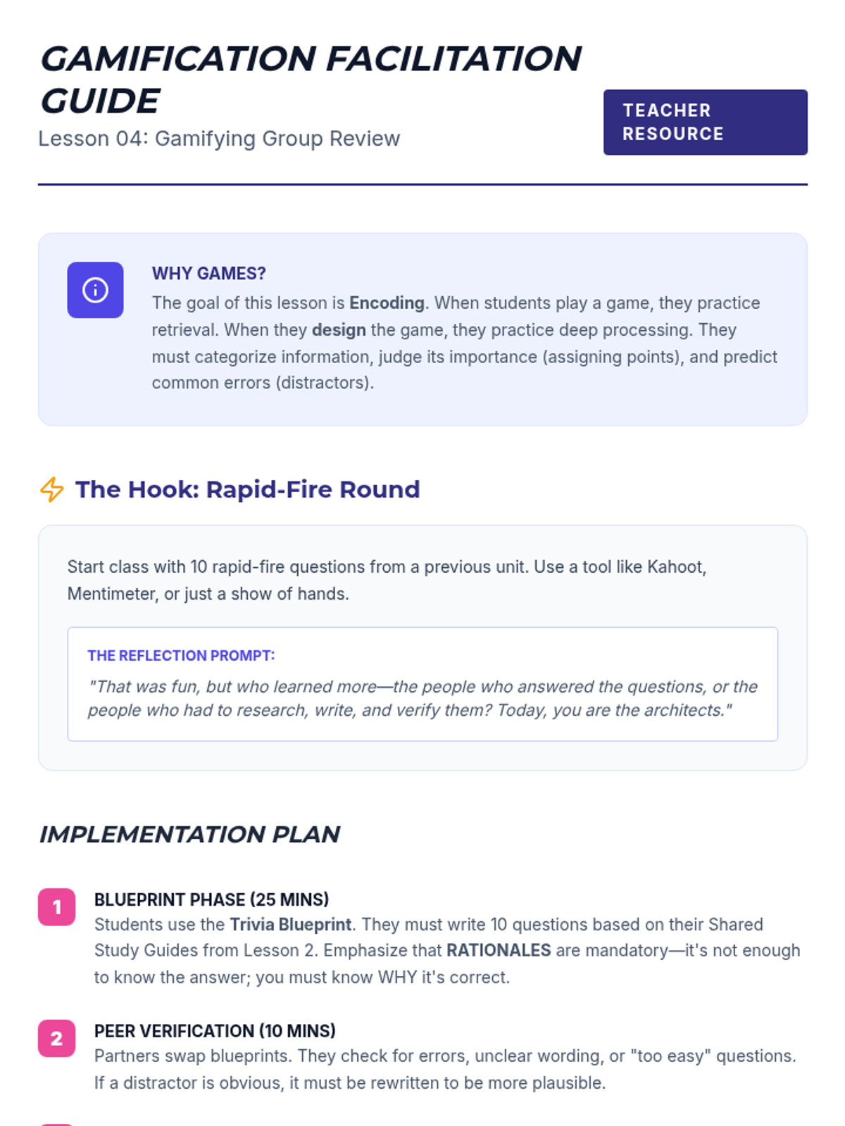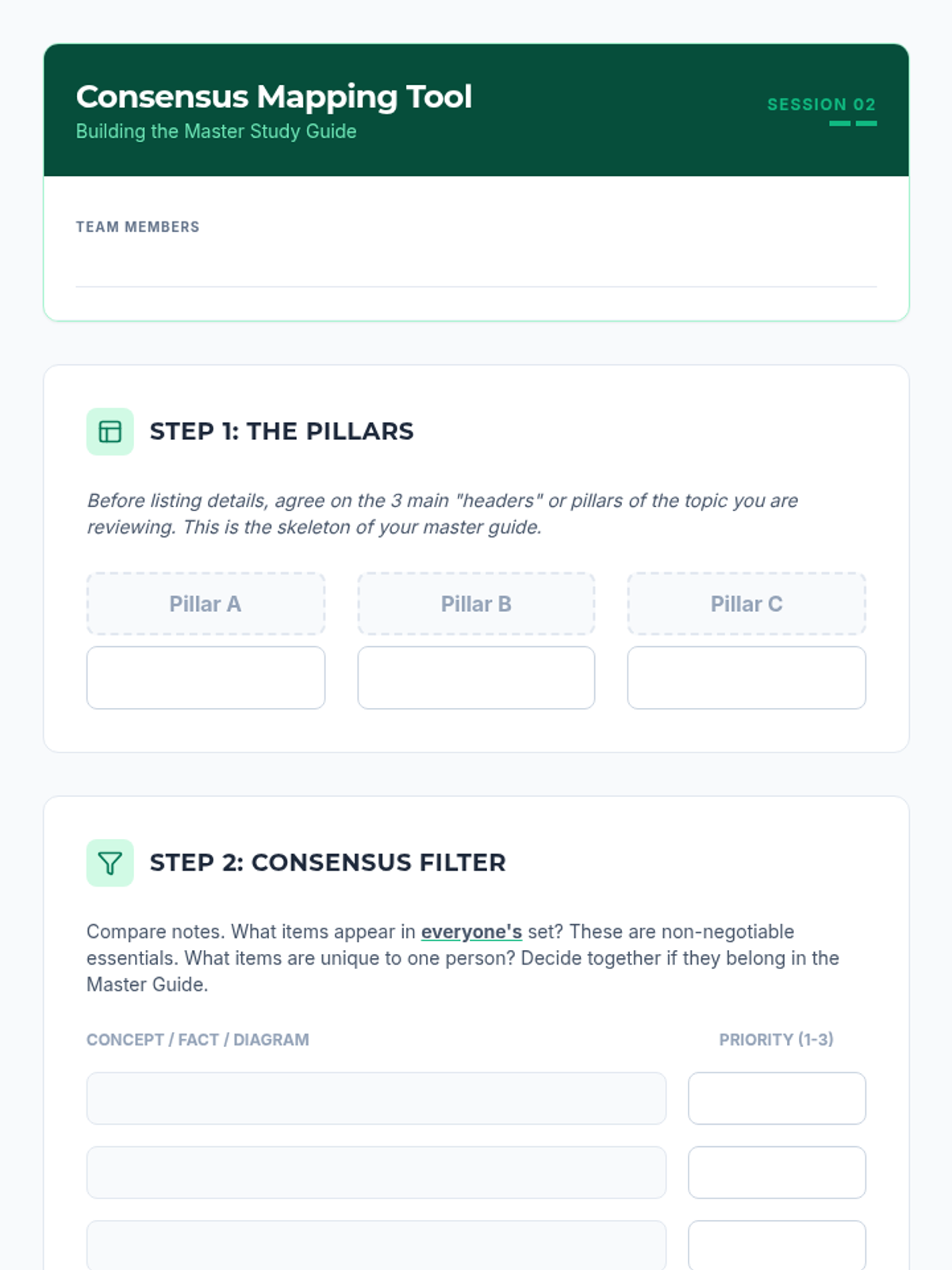 This sequence guides undergraduate students through collaborative strategies to support working memory during note review and organization. Students move from individual note consolidation to creating shared study artifacts and teaching peers, culminating in a capstone 'Teach-Back' session.