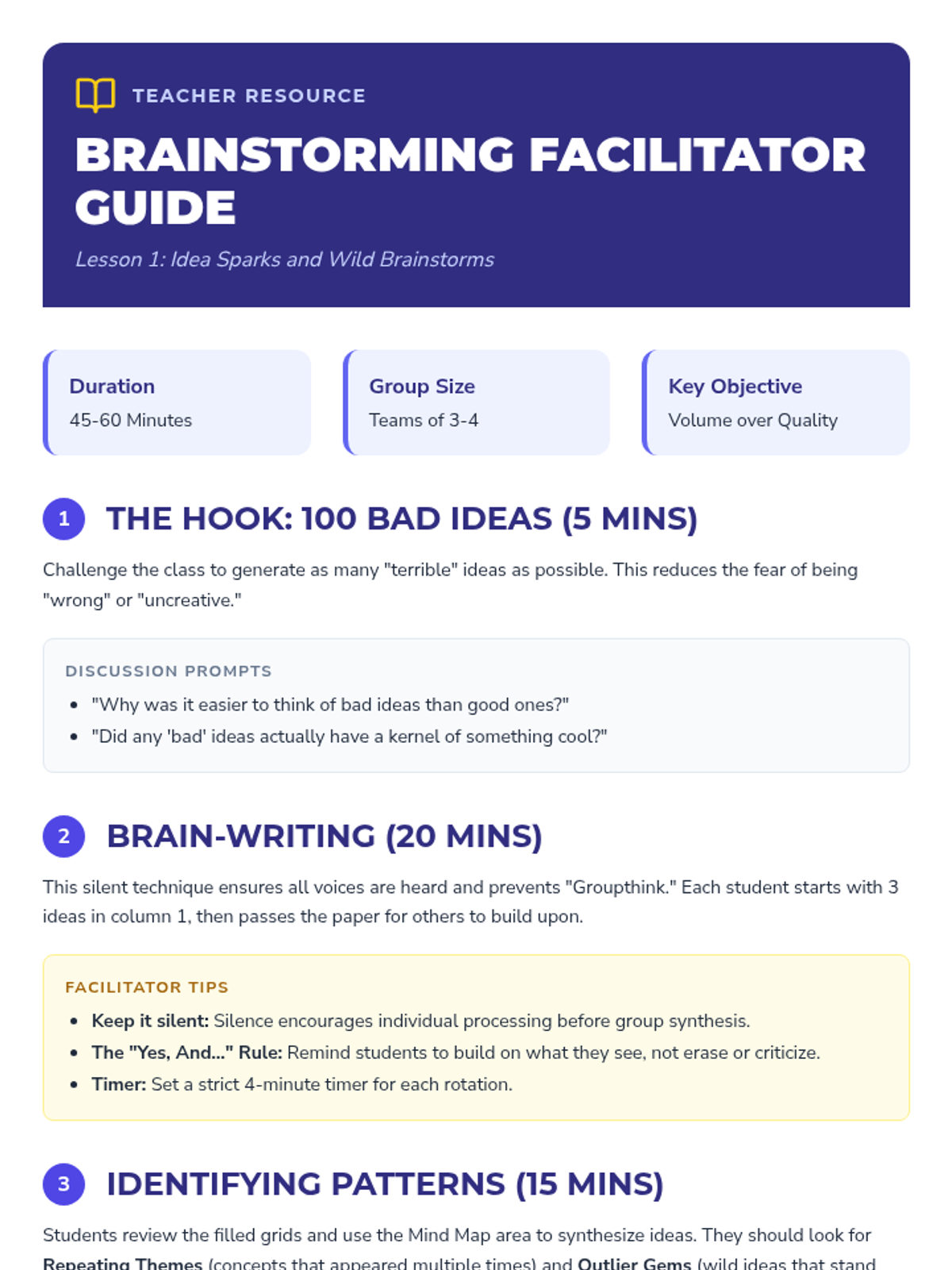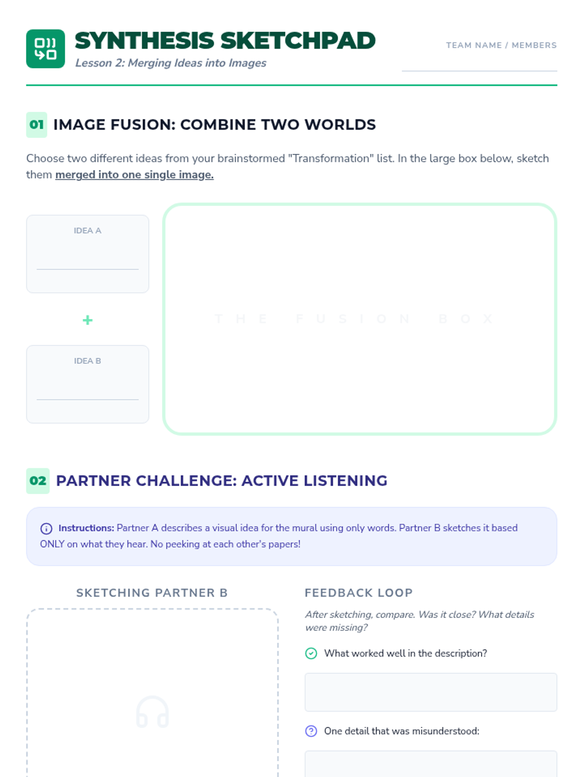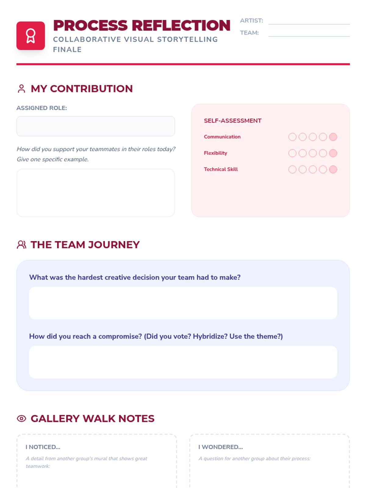 This sequence guides sixth-grade students through the lifecycle of a collaborative visual arts project, from individual brainstorming to collective mural creation. Students learn to synthesize ideas, negotiate creative differences, and assume specialized roles to execute a shared artistic vision.