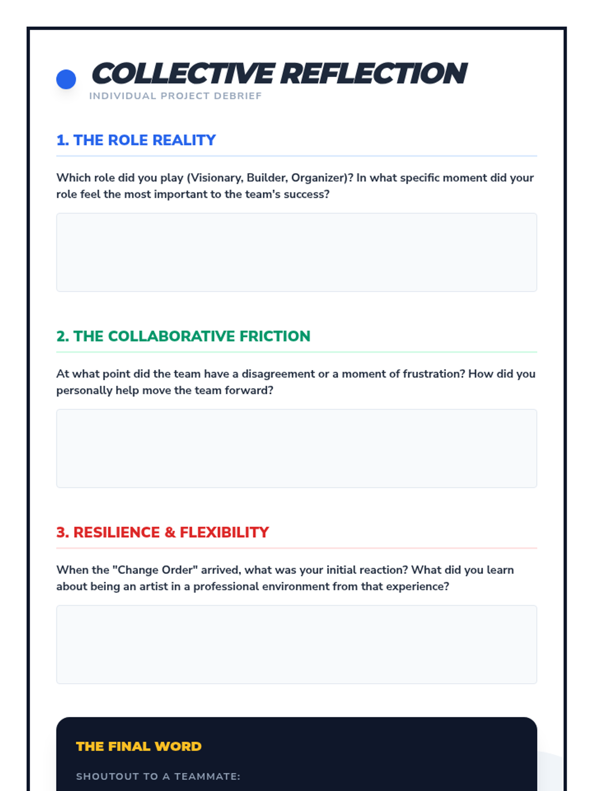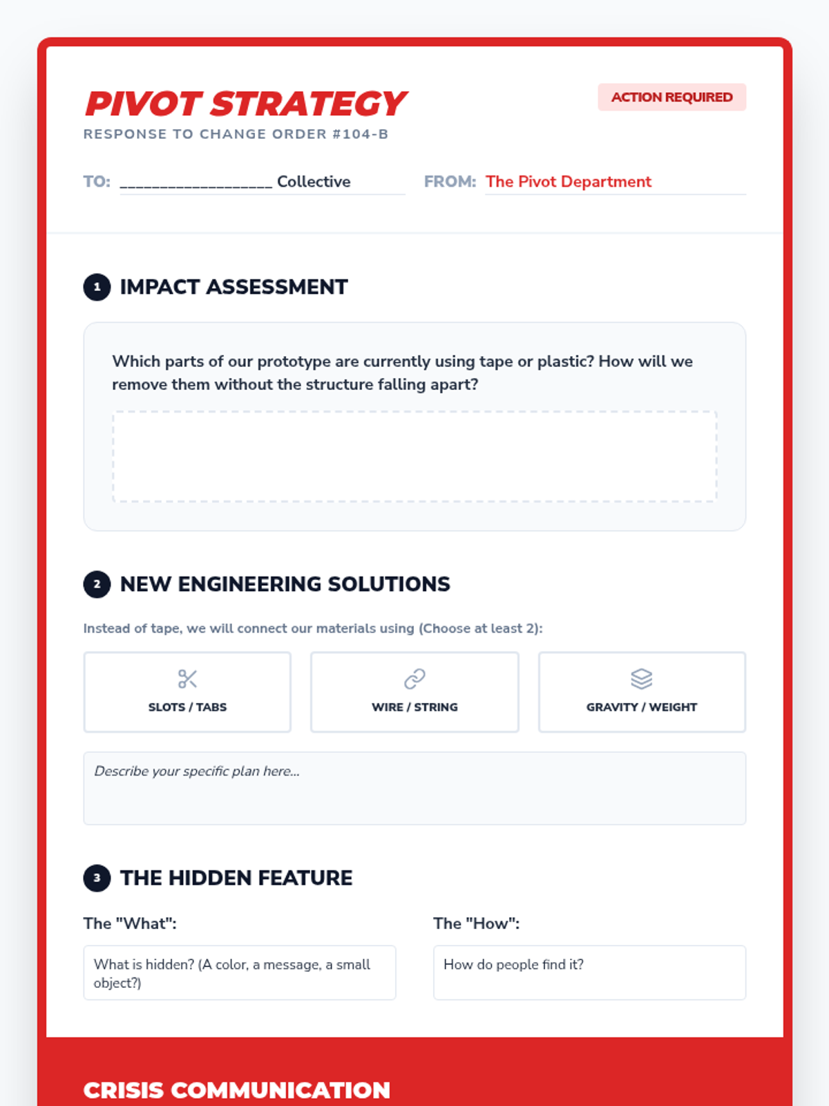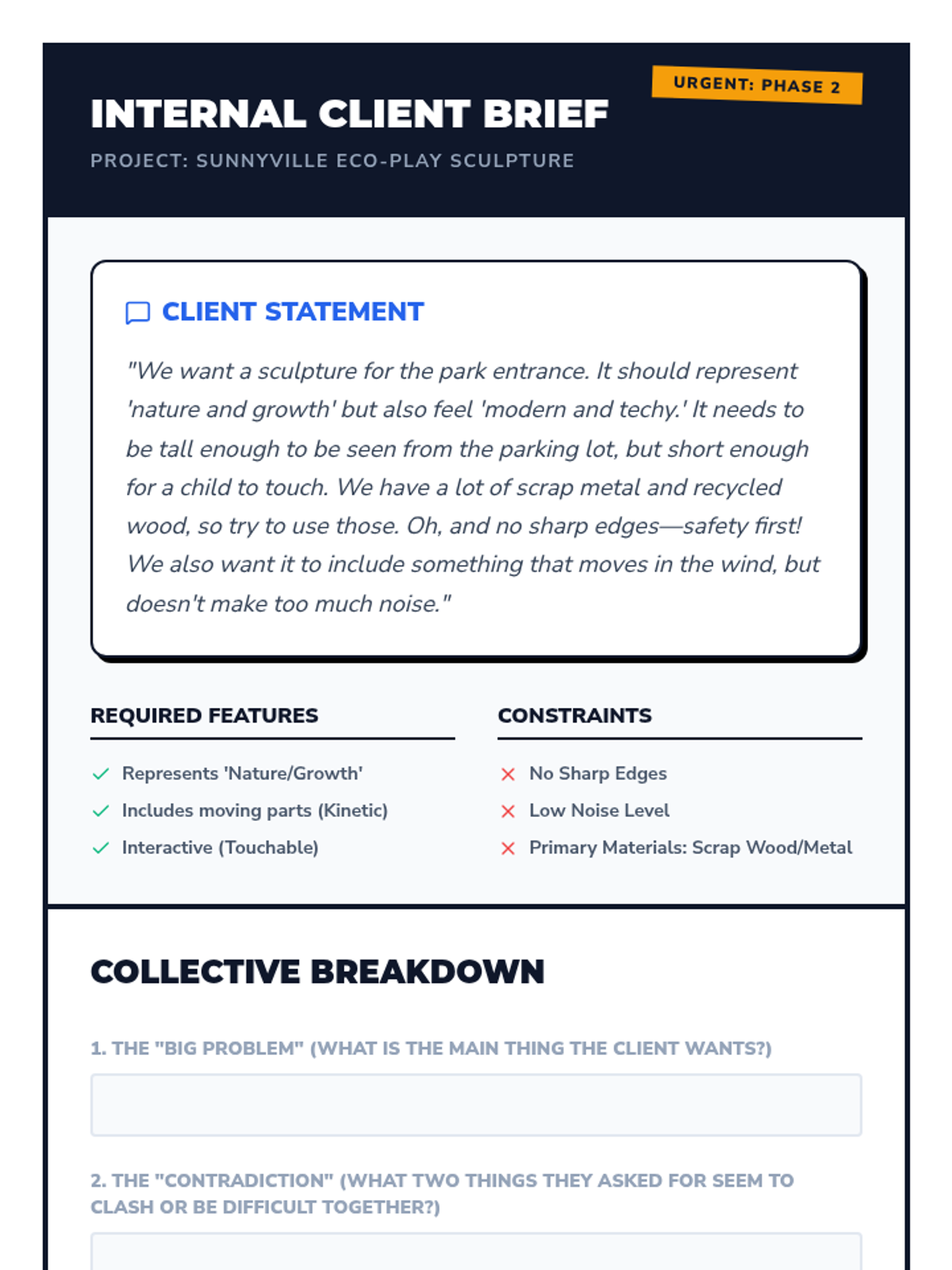 A 5th-grade arts sequence where students form design firms to solve a client-based mixed-media challenge. Students navigate roles, client twists, and collaborative prototyping to learn the value of diverse perspectives in the creative process.