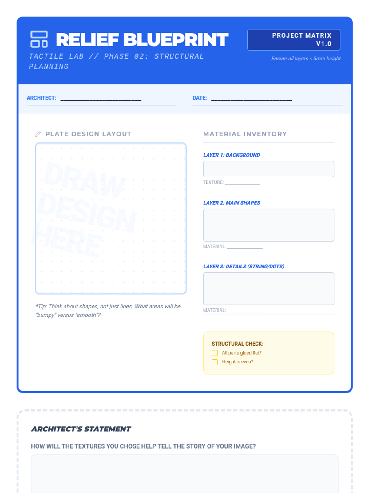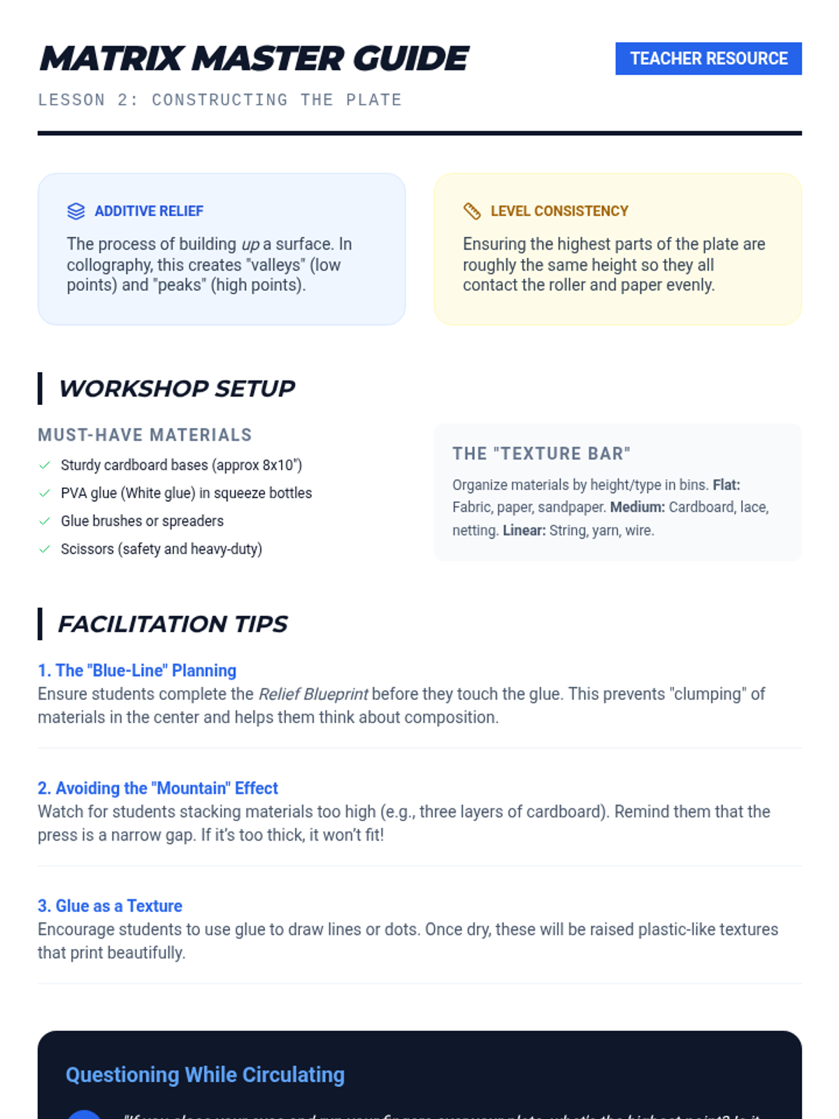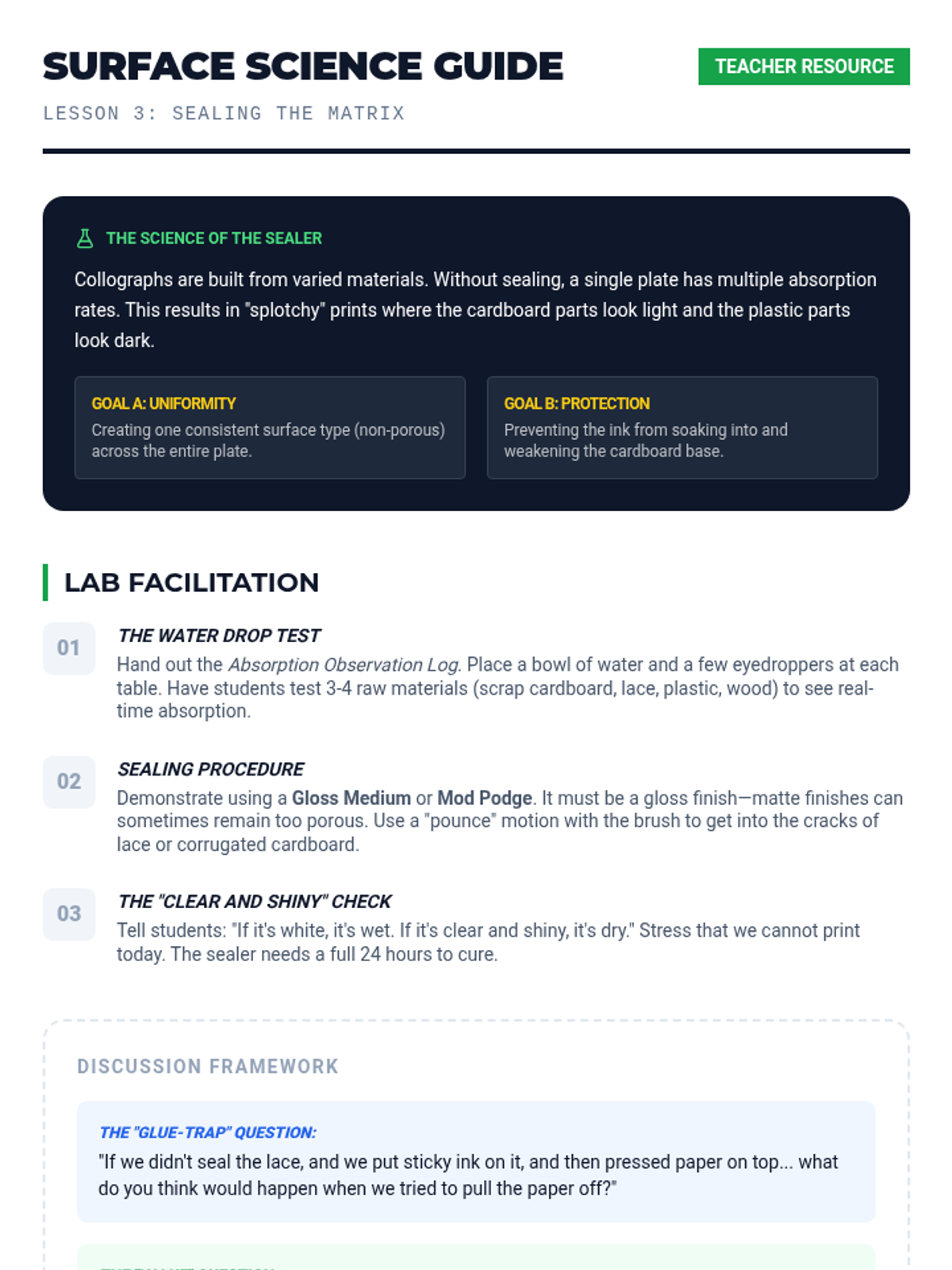 A 4th-grade printmaking unit where students transform found textures into complex printing plates. Through inquiry and experimentation, students explore collography by building, sealing, inking, and pressing tactile 'matrices'.