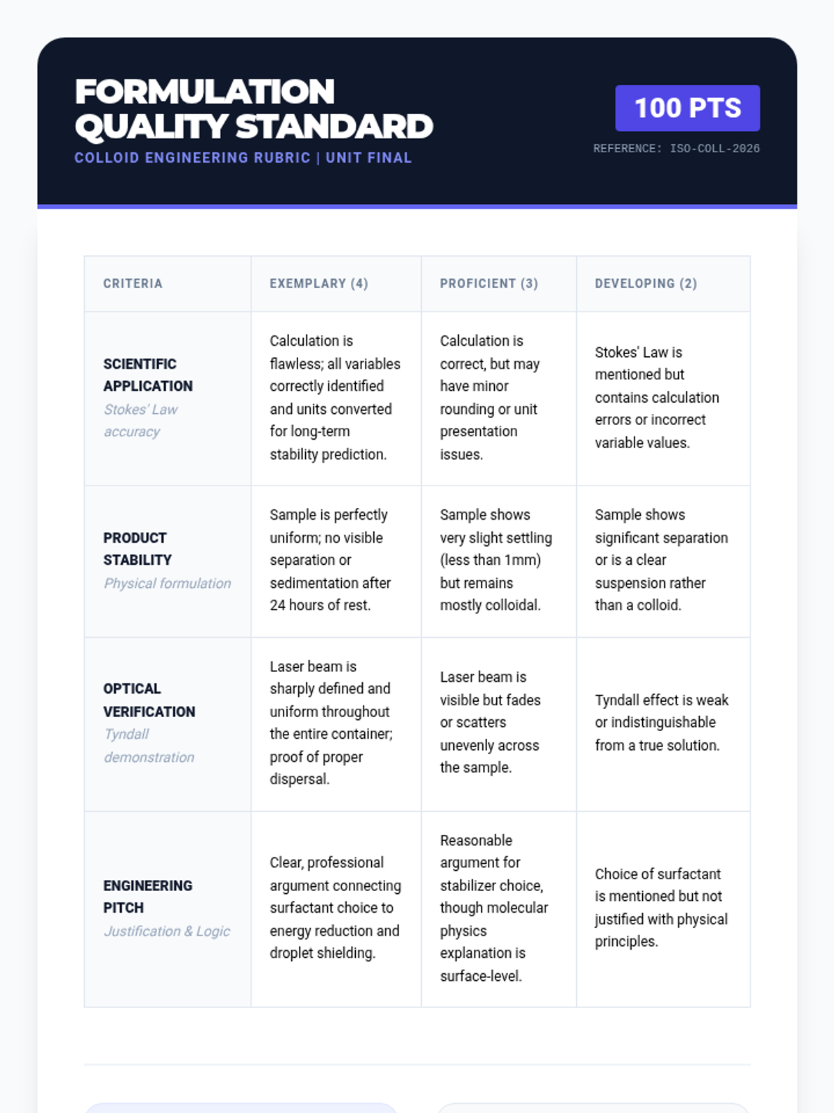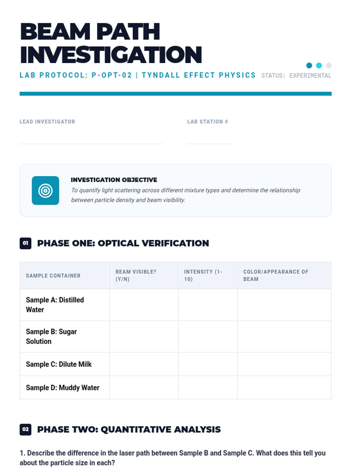 This sequence explores the physics of colloids, suspensions, and heterogeneous systems. Students investigate particle size scales, light scattering (Tyndall effect), fluid dynamics (Stokes' Law), and surface tension to understand how complex mixtures behave and how to engineer stable consumer products.