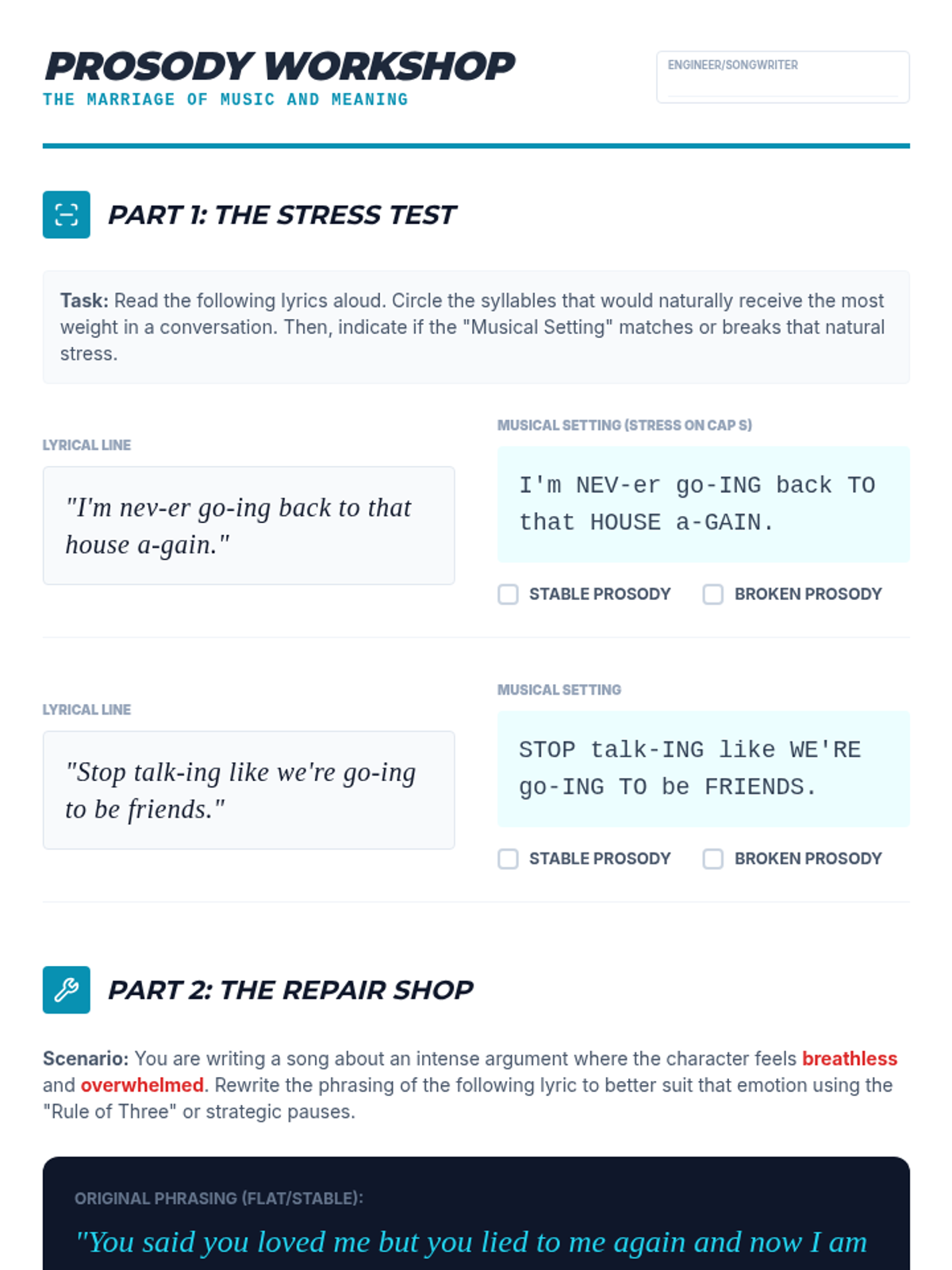 This sequence explores the mechanics of commercial songwriting, focusing on the structural patterns and lyrical techniques used in hit music. Students will move from analyzing song forms and prosody to crafting original hooks and bridges, culminating in a professional-style peer critique.