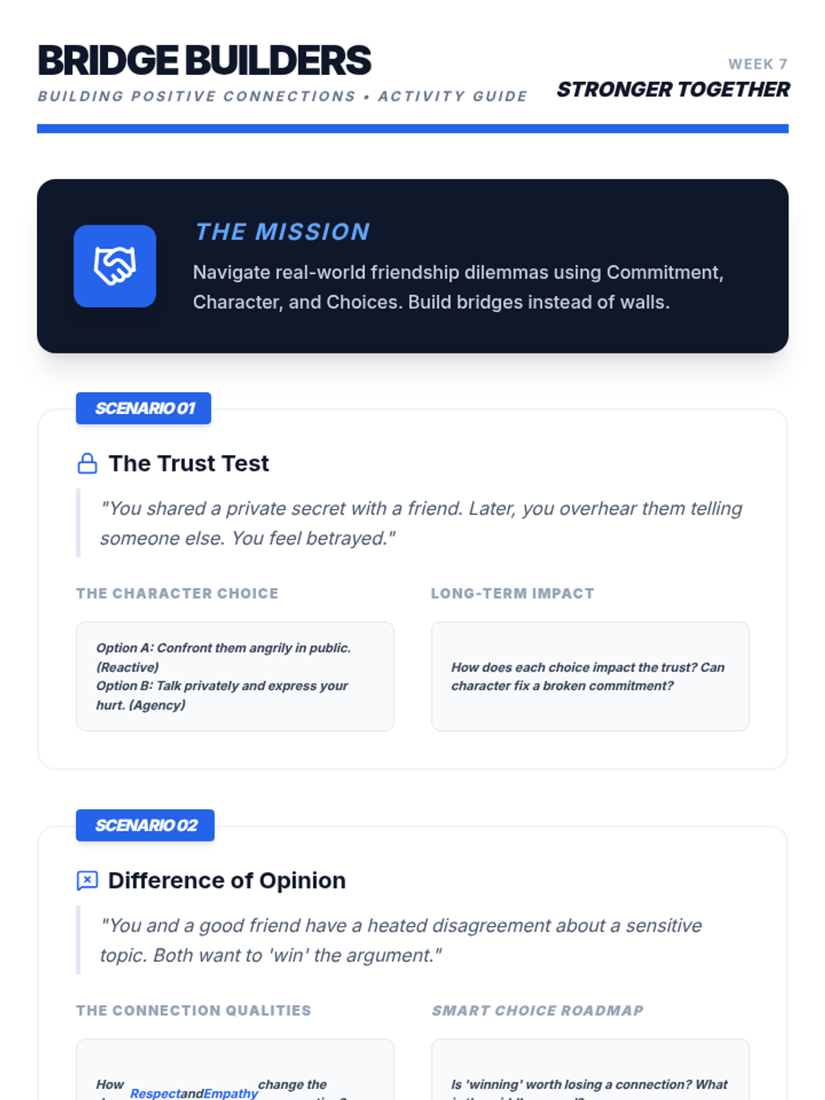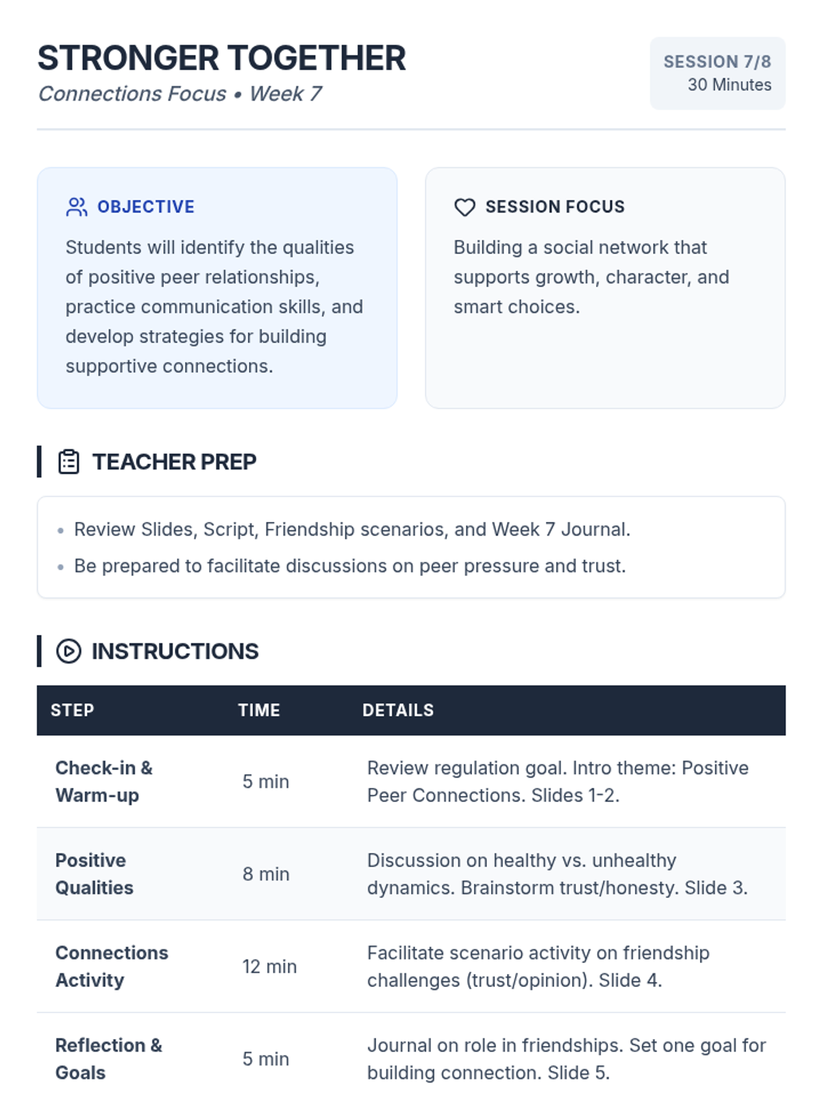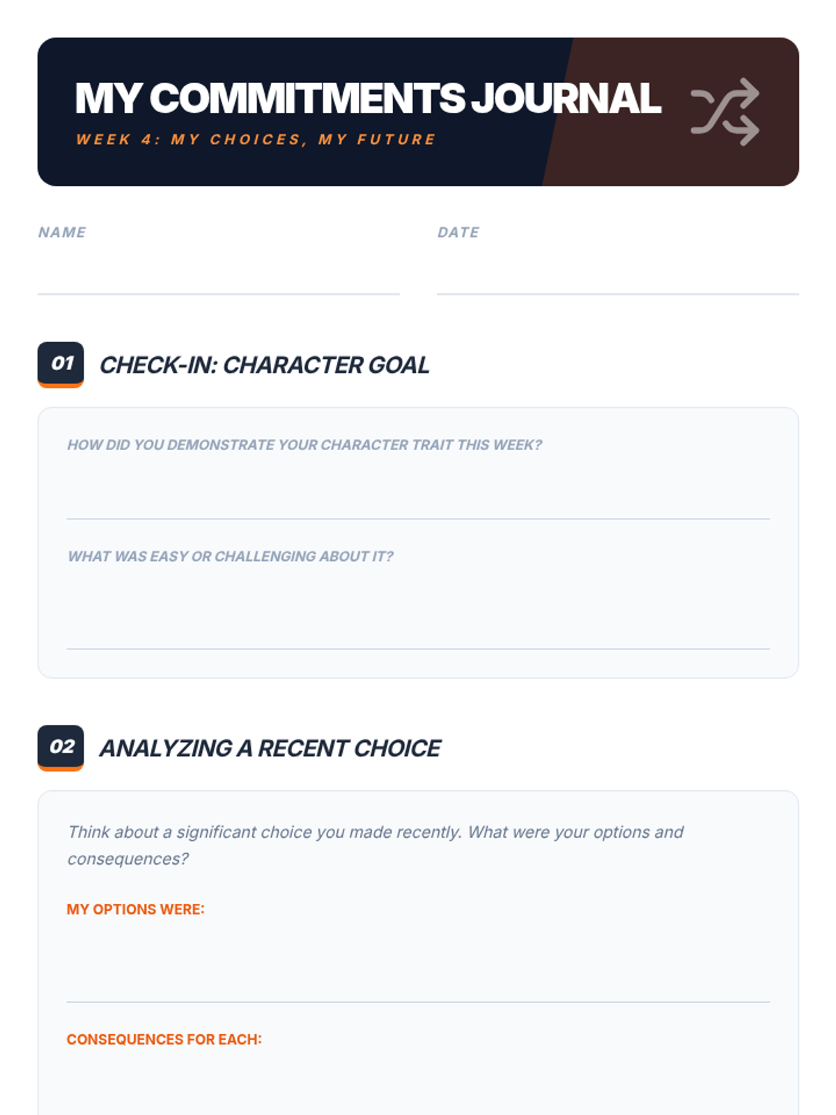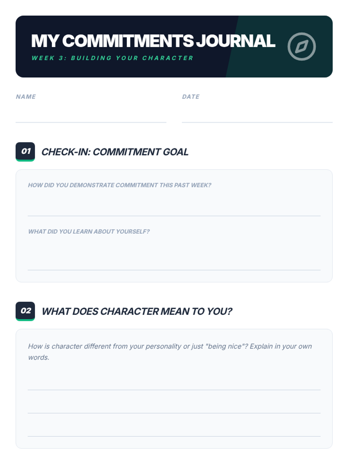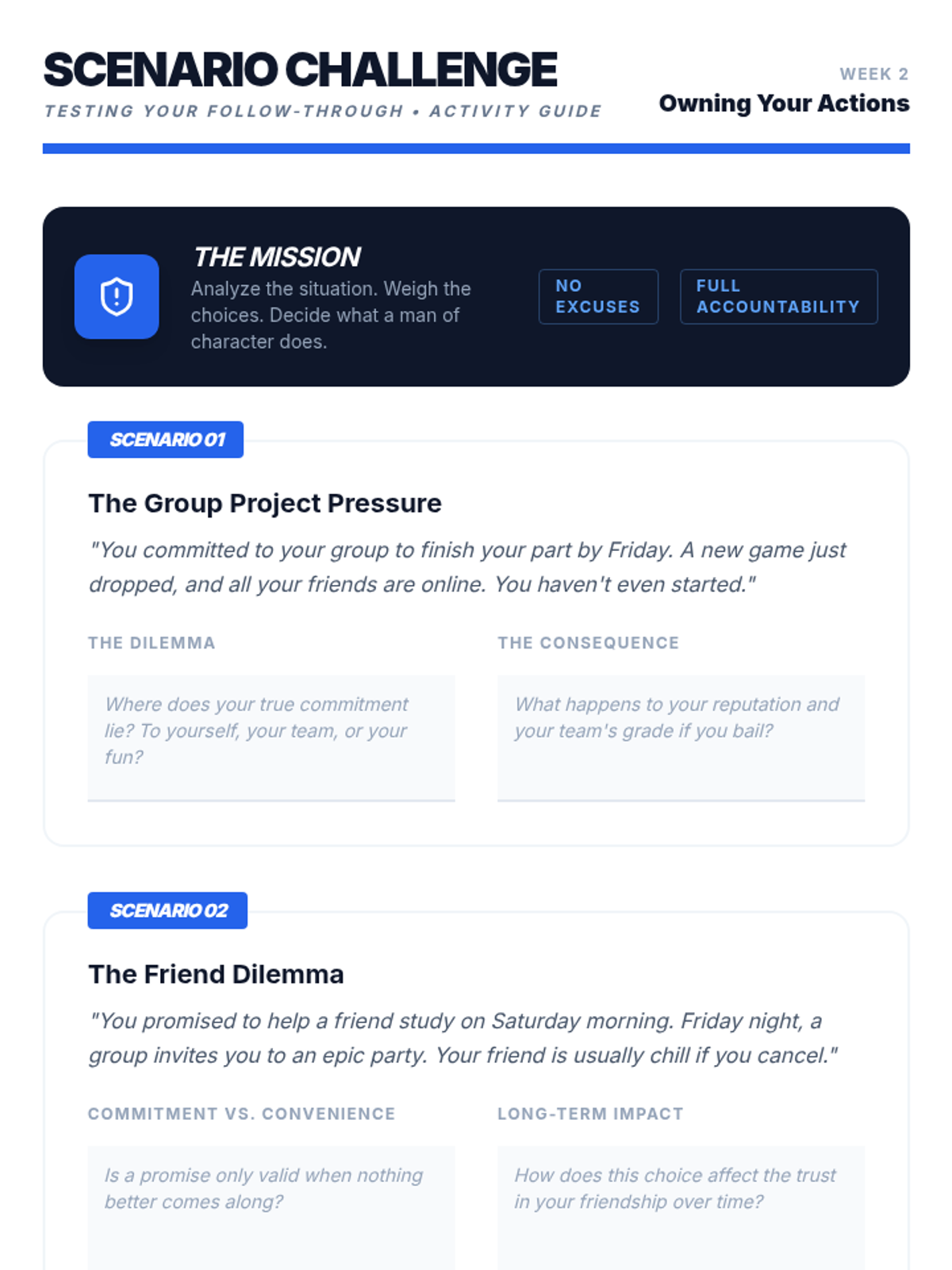 An 8-week intervention program for 9th-grade male students focusing on commitment, character, and choices to improve academic and behavioral outcomes.