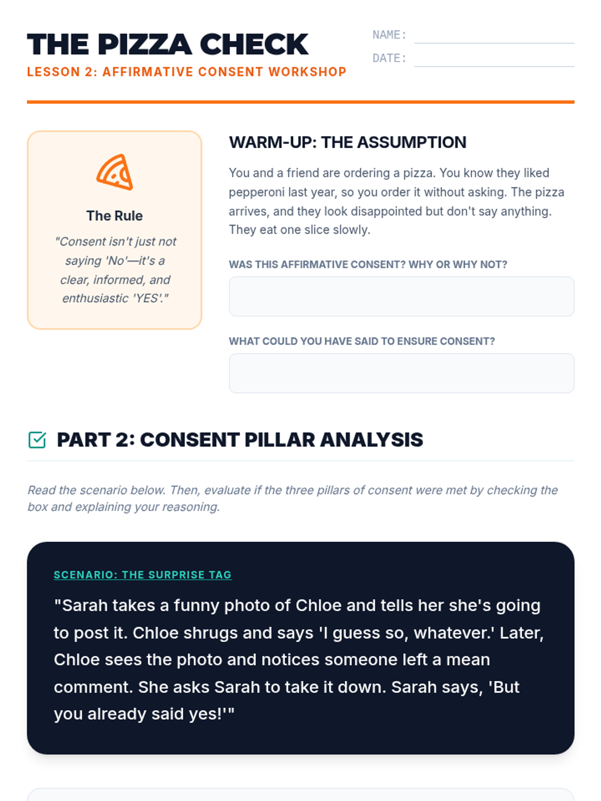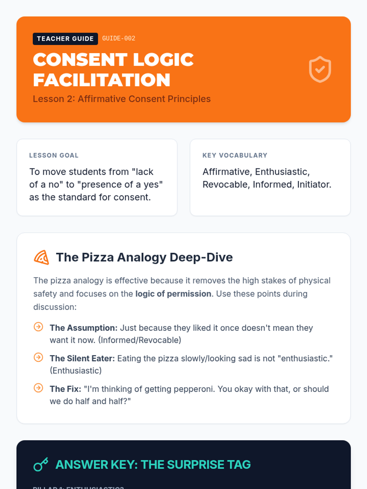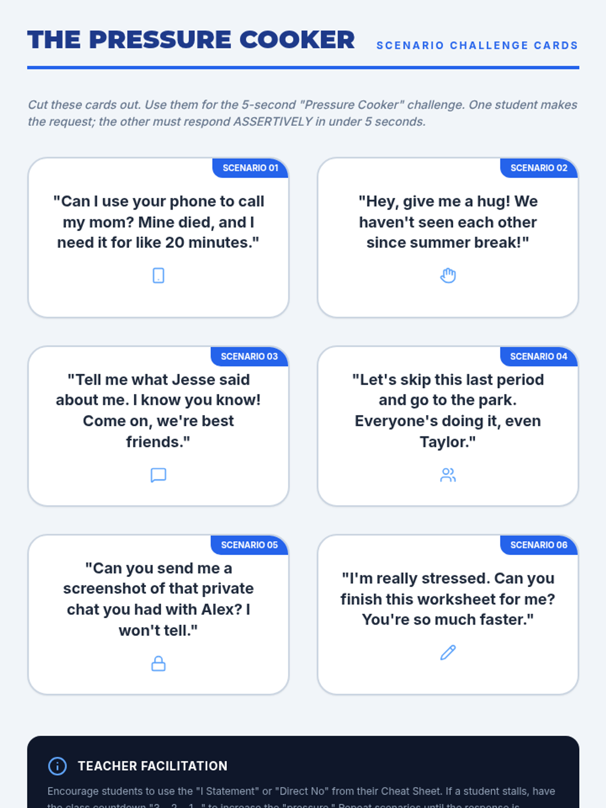 A comprehensive sequence for 8th-grade students exploring the nuances of personal boundaries, affirmative consent, non-verbal communication, and assertive refusal skills across physical, emotional, and digital contexts.