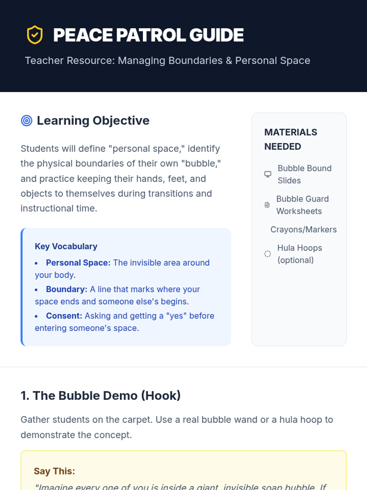 A comprehensive K-5 sequence for developing respectful communication, conflict resolution, and self-regulation skills through multi-day guided missions.