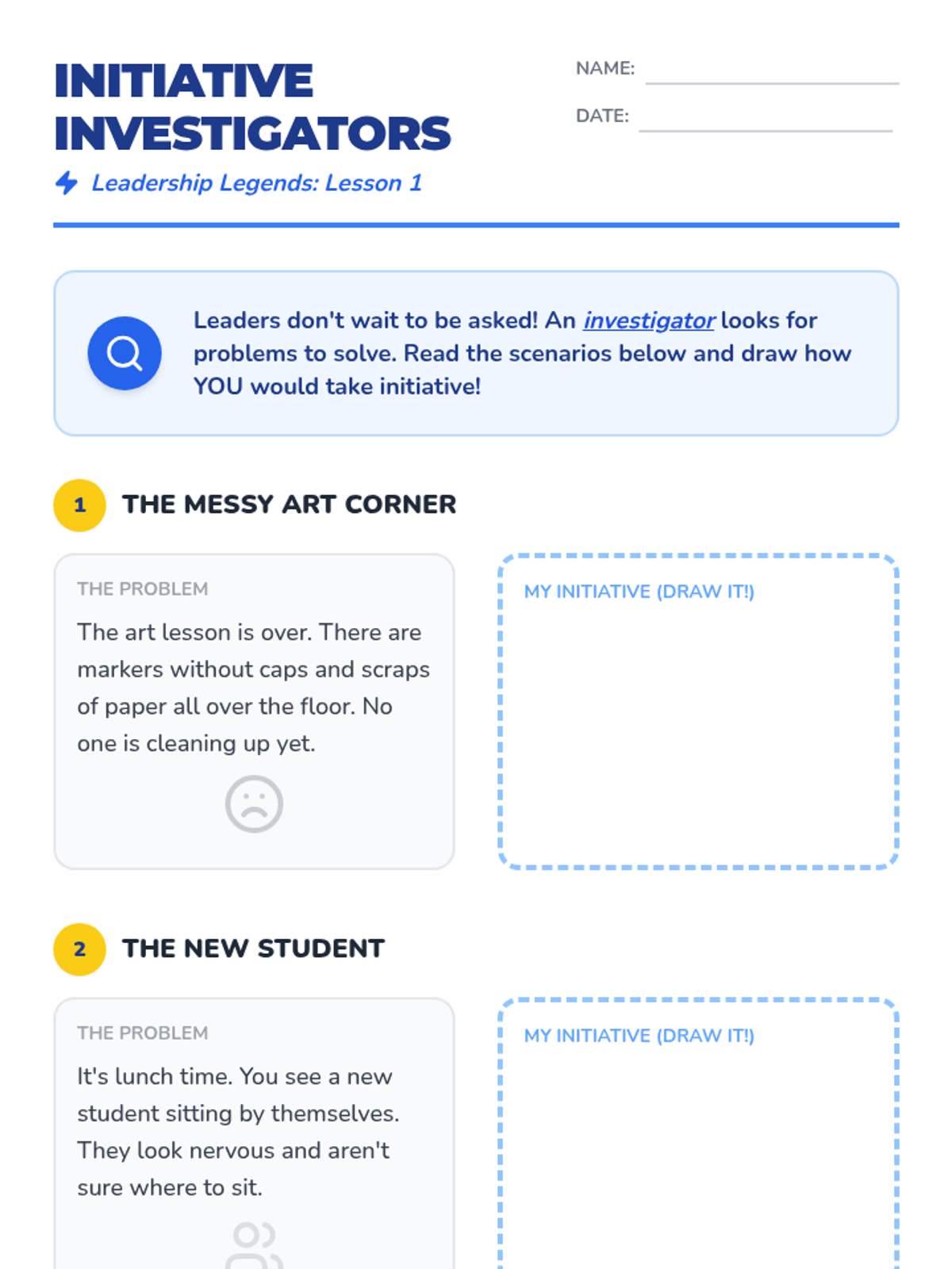 A 5-part SEL unit for 2nd graders focused on developing leadership skills through initiative, kindness, decision-making, and teamwork. Students learn that being a leader means helping others and making wise choices every day.