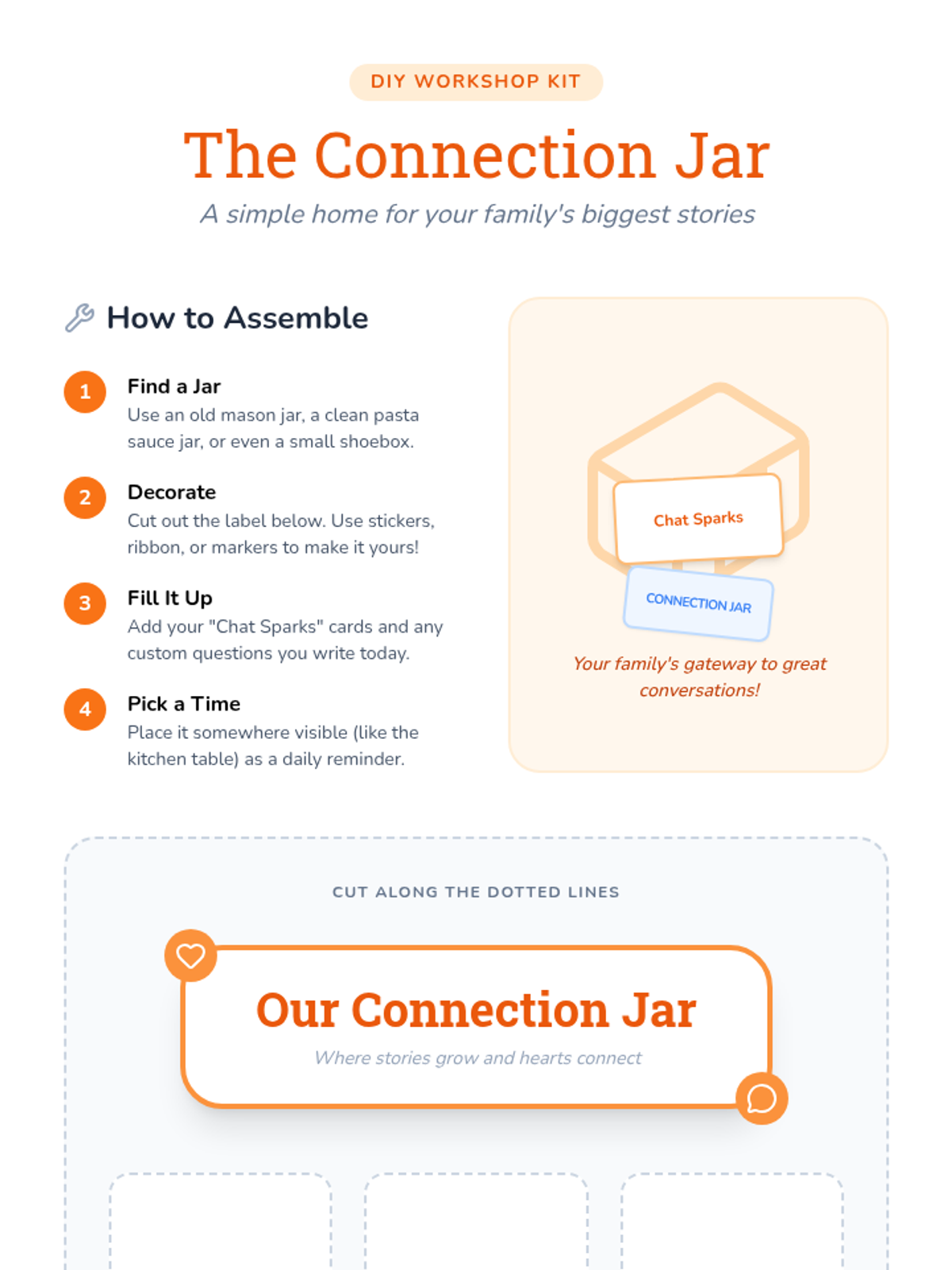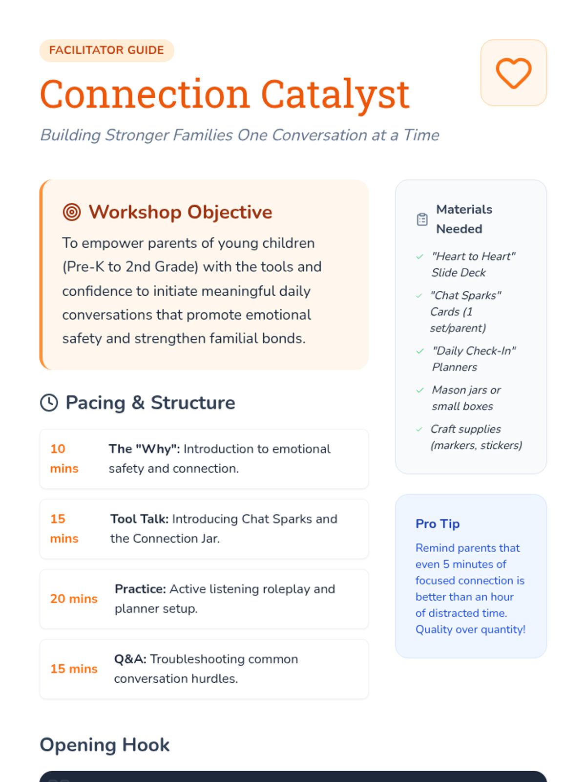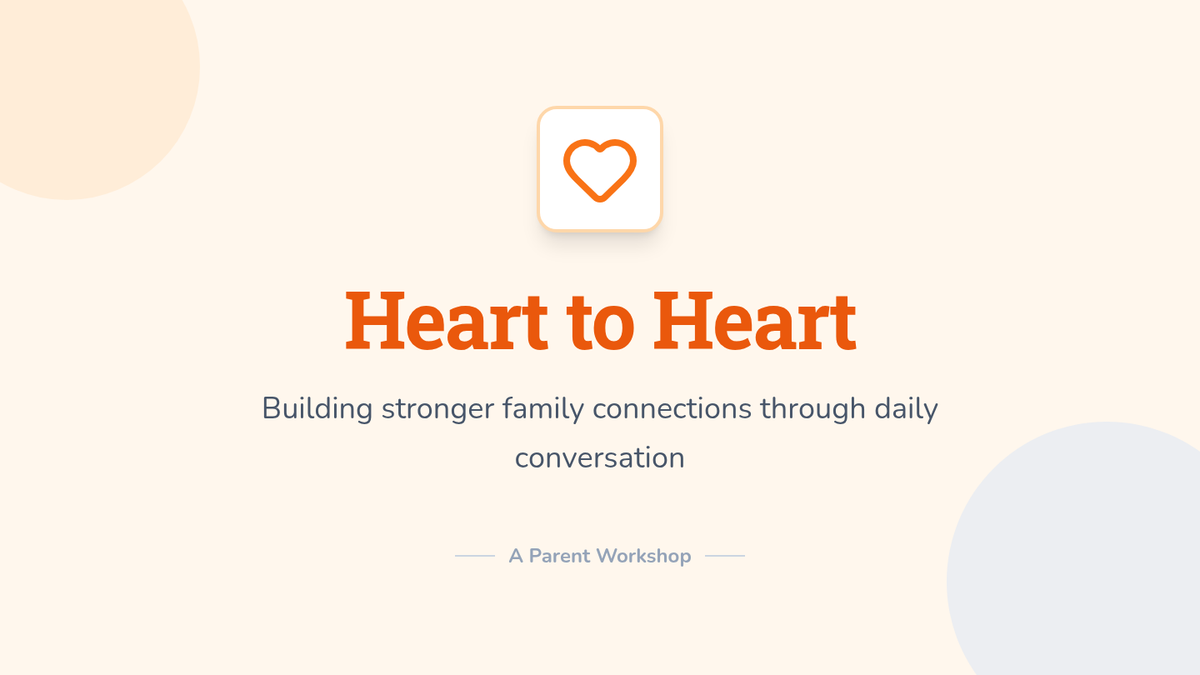 A series of resources designed for parent workshops to foster deeper emotional connections with Pre-K to 2nd-grade children through structured daily conversations and active listening.
