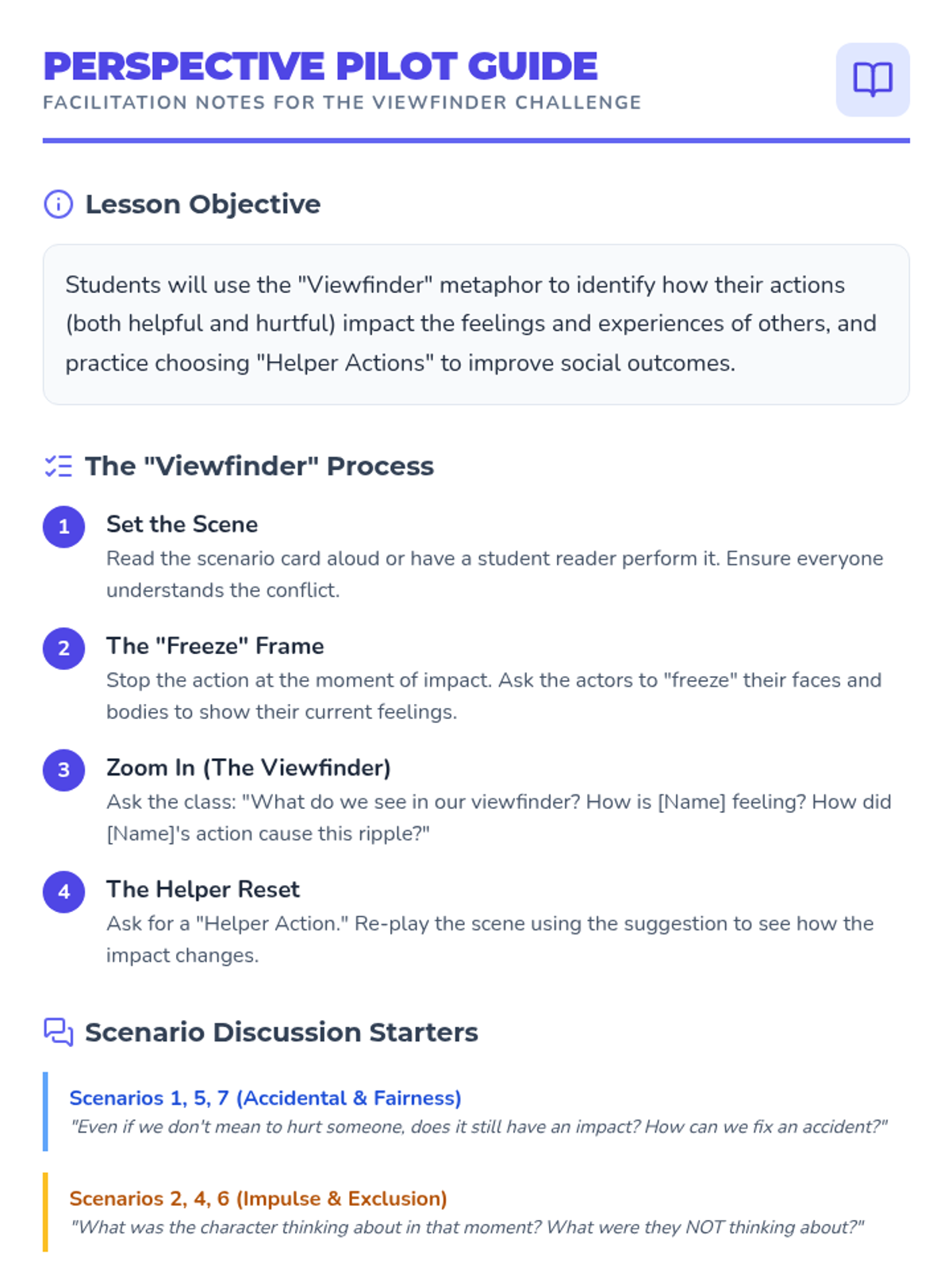A 6-week social-emotional learning journey where 2nd graders master perspective-taking through the 'Viewfinder' lens, focusing on identifying impact, navigating arguments, and practicing empathy.