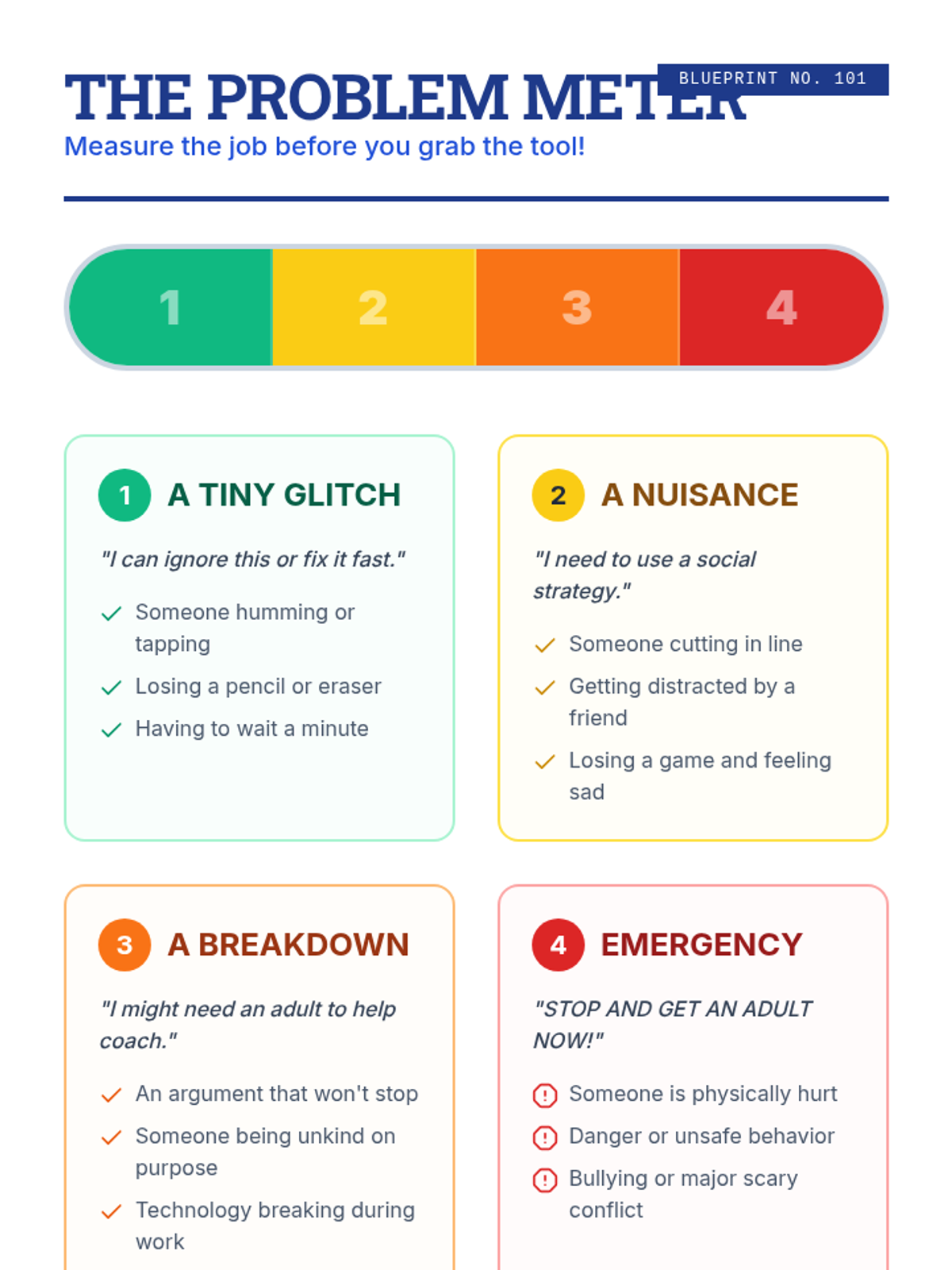 A comprehensive sequence focused on teaching students how to identify social problems, regulate their emotions, and apply specific strategies to handle annoying behaviors, distractions, and peer conflicts.