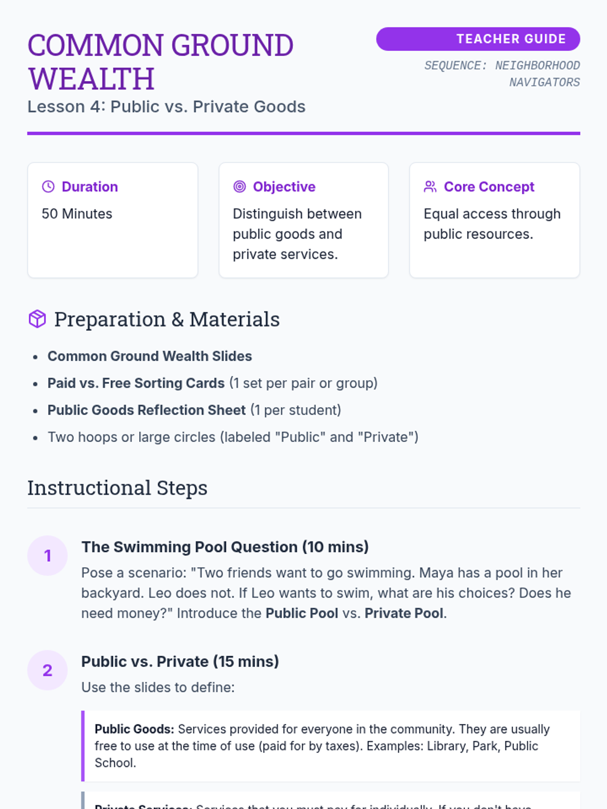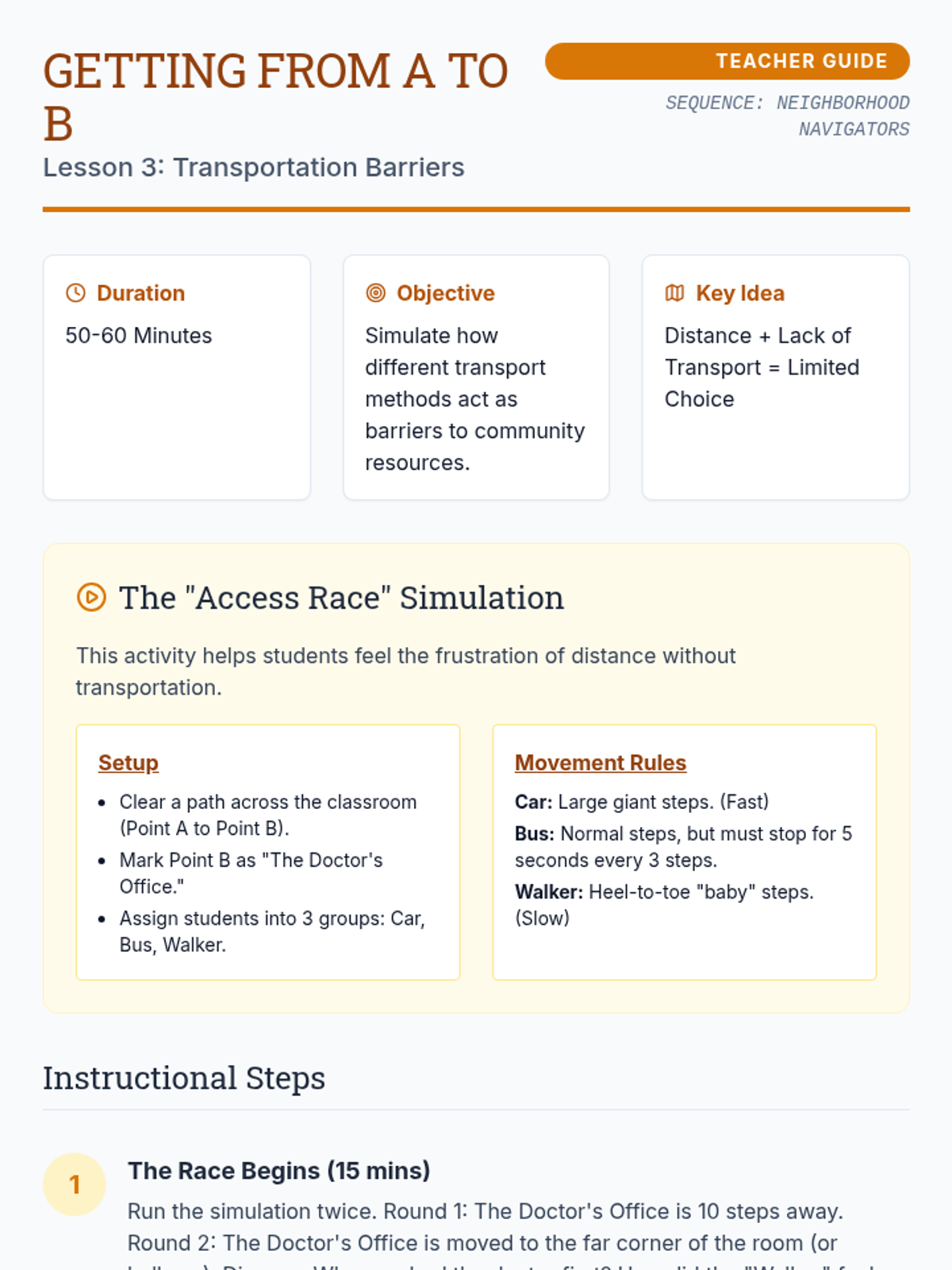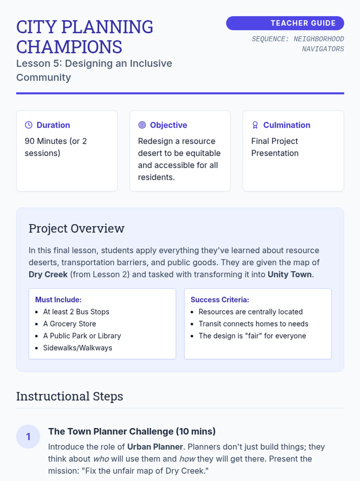 This sequence explores how geographic location and resource distribution impact economic opportunity and quality of life for 3rd-grade students. Through map analysis, simulation, and urban planning projects, students learn about 'resource deserts,' the importance of public goods, and systemic barriers to access.